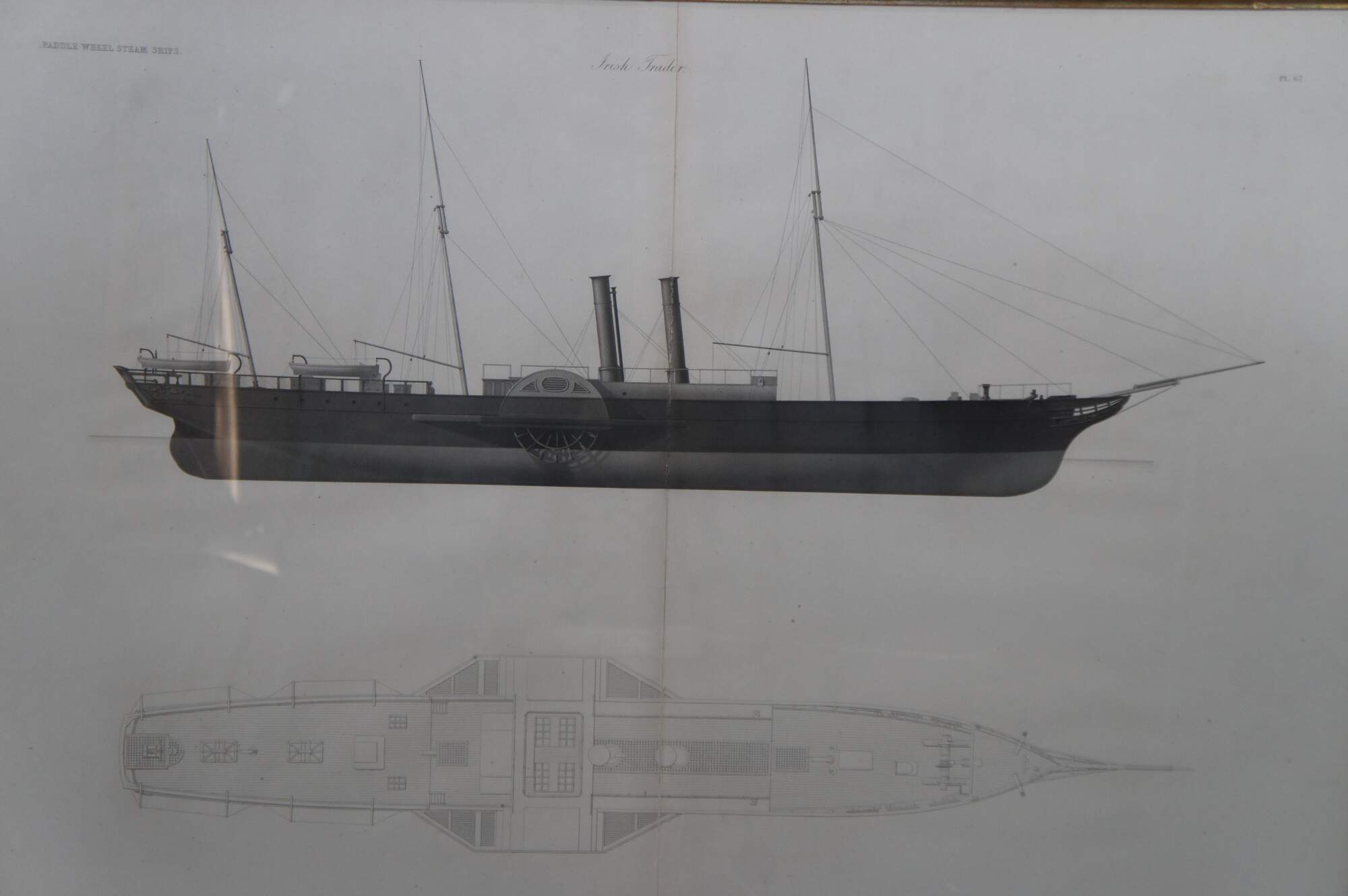 1864 John Scott Russell Paddle Wheel Blueprint Steam Ship Engraving Irish Trader
