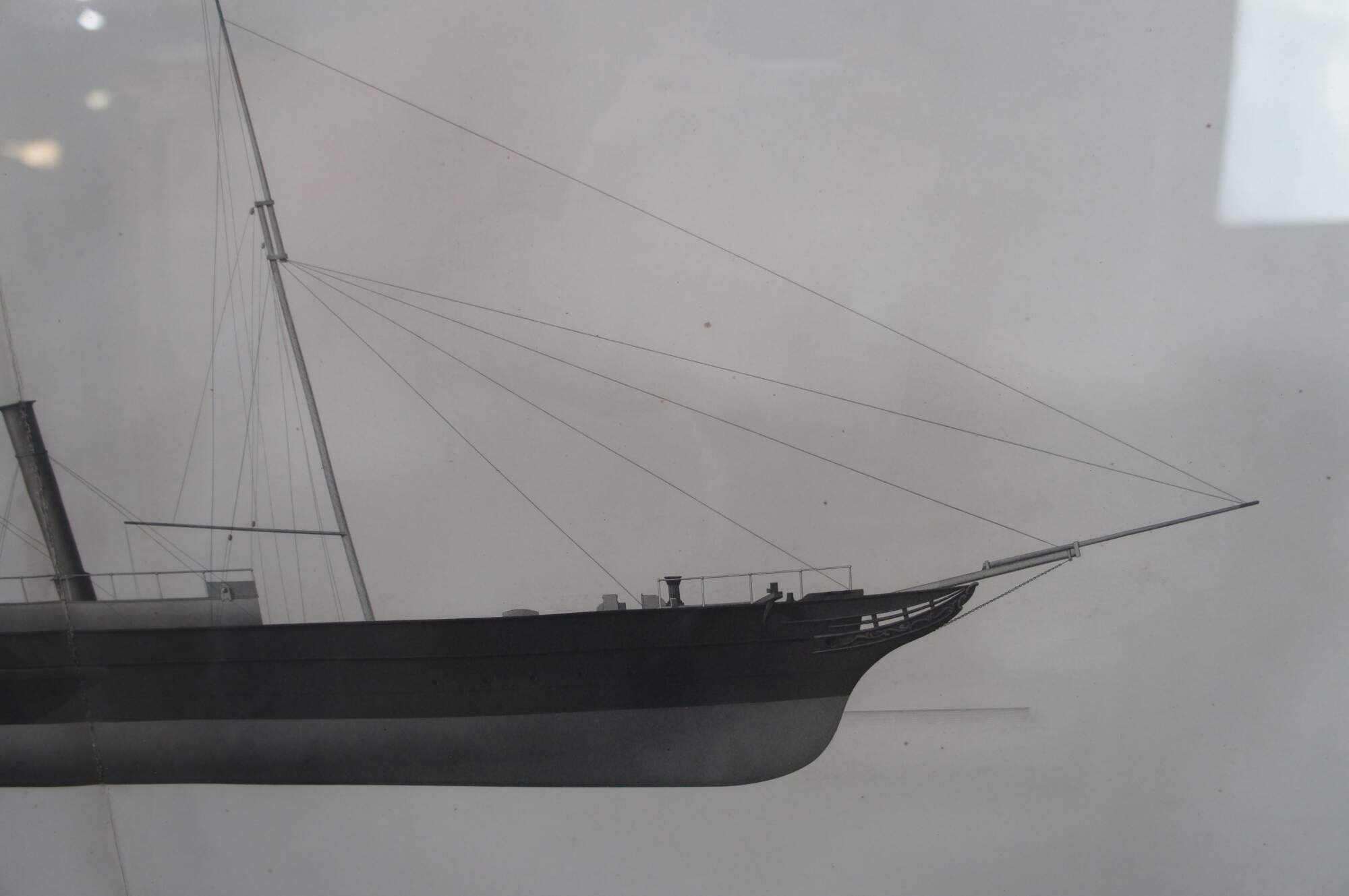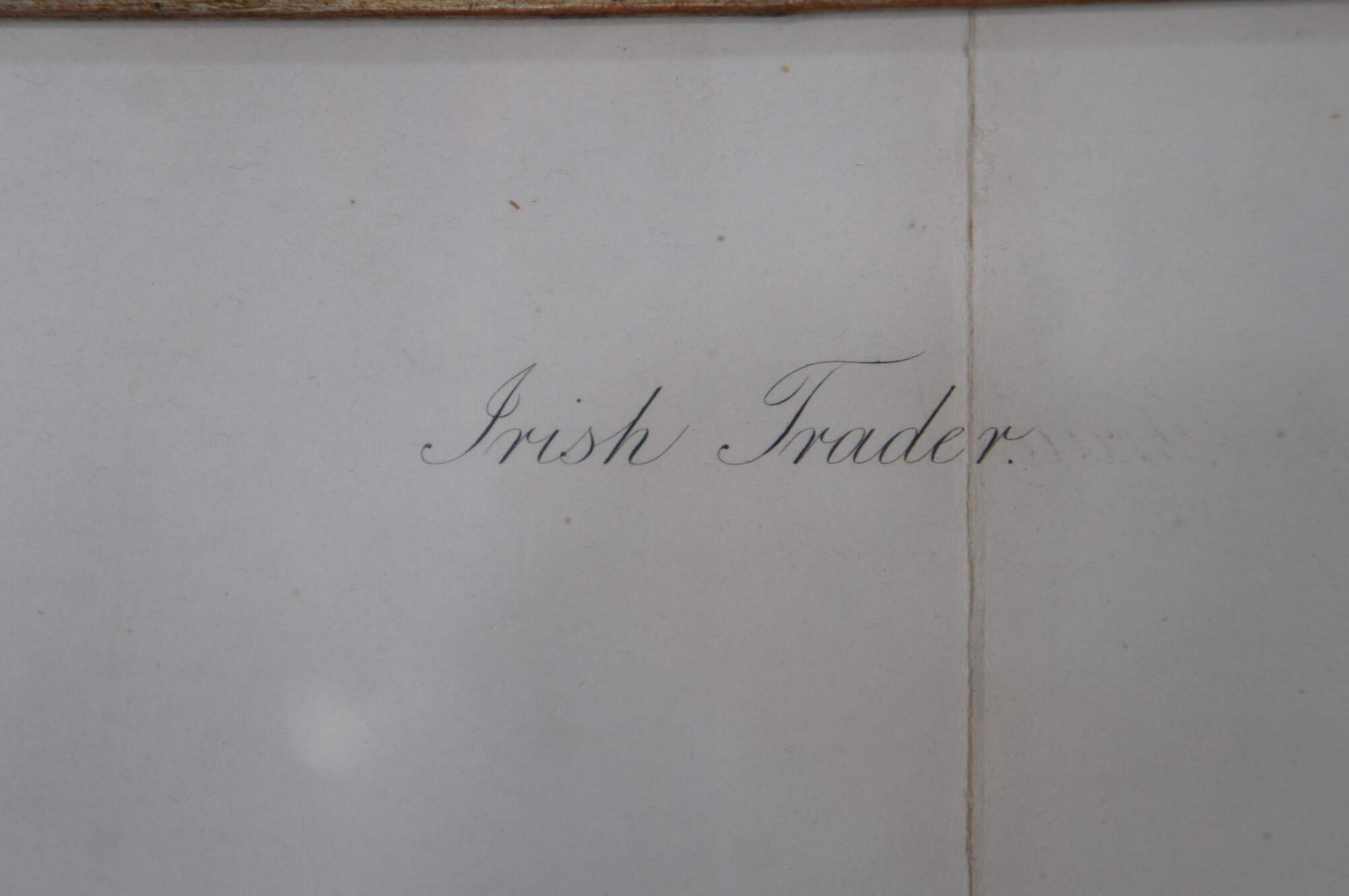 John Scott Russell, Paddle Wheel Steam Ships – Irish Trader. A nautical maritime engraving on paper showcasing the blue print of a Freight Trader. Exquistely framed with alternating burlwood. The Engraving is from 1864, plate 67 from John Scott Russell’s monumental work The Modern System of Naval Architecture, 3 volumes, London.