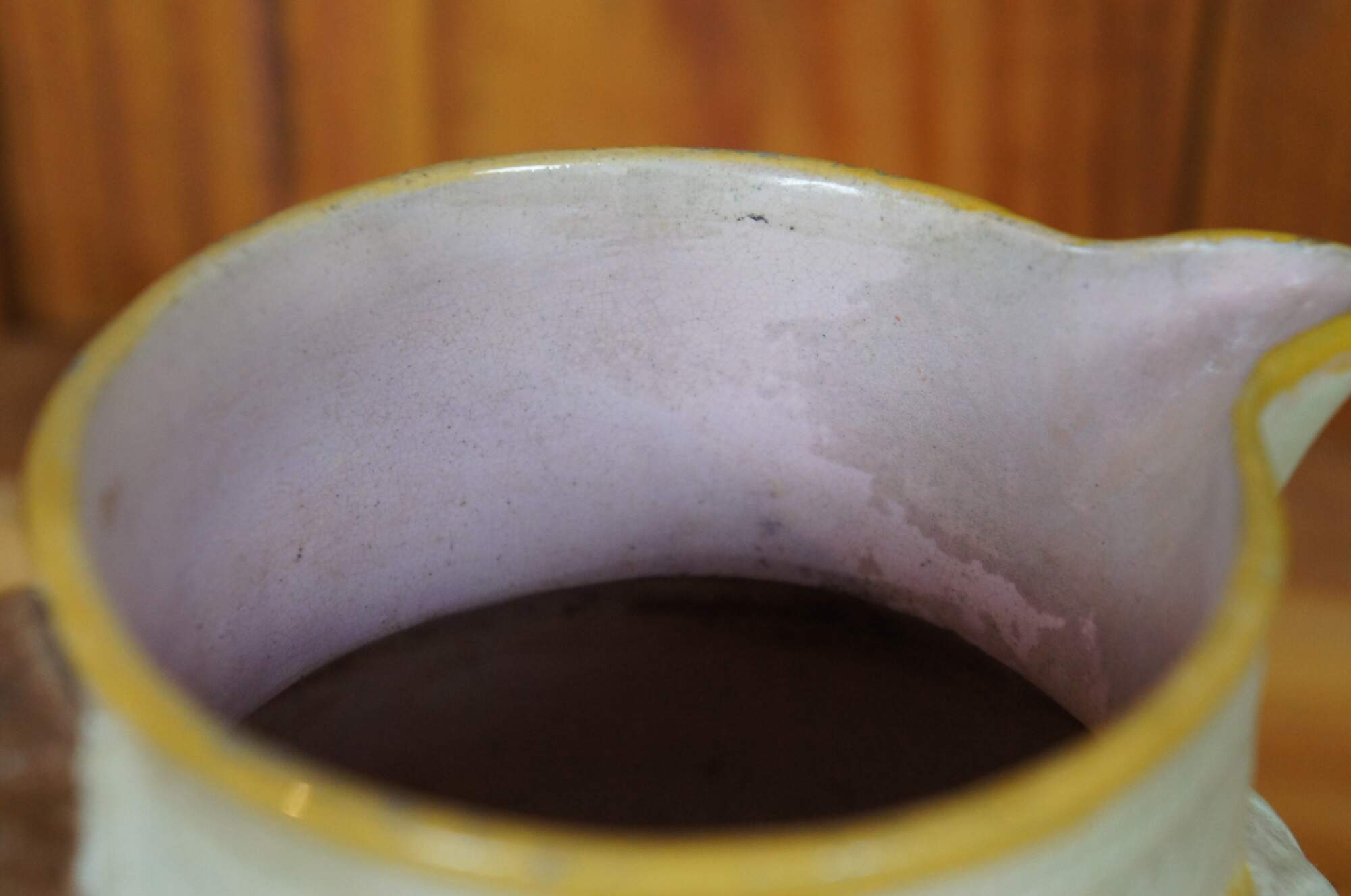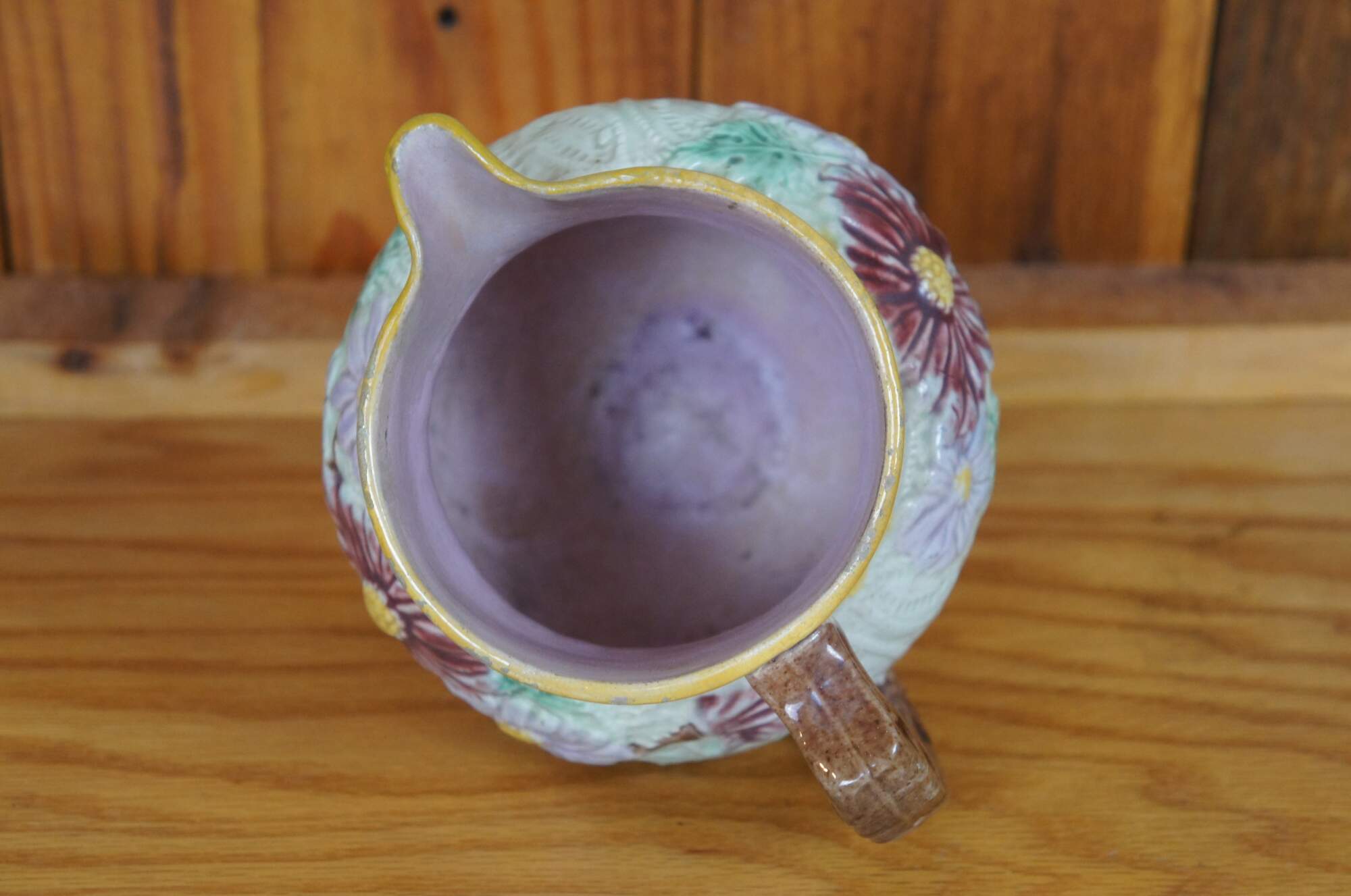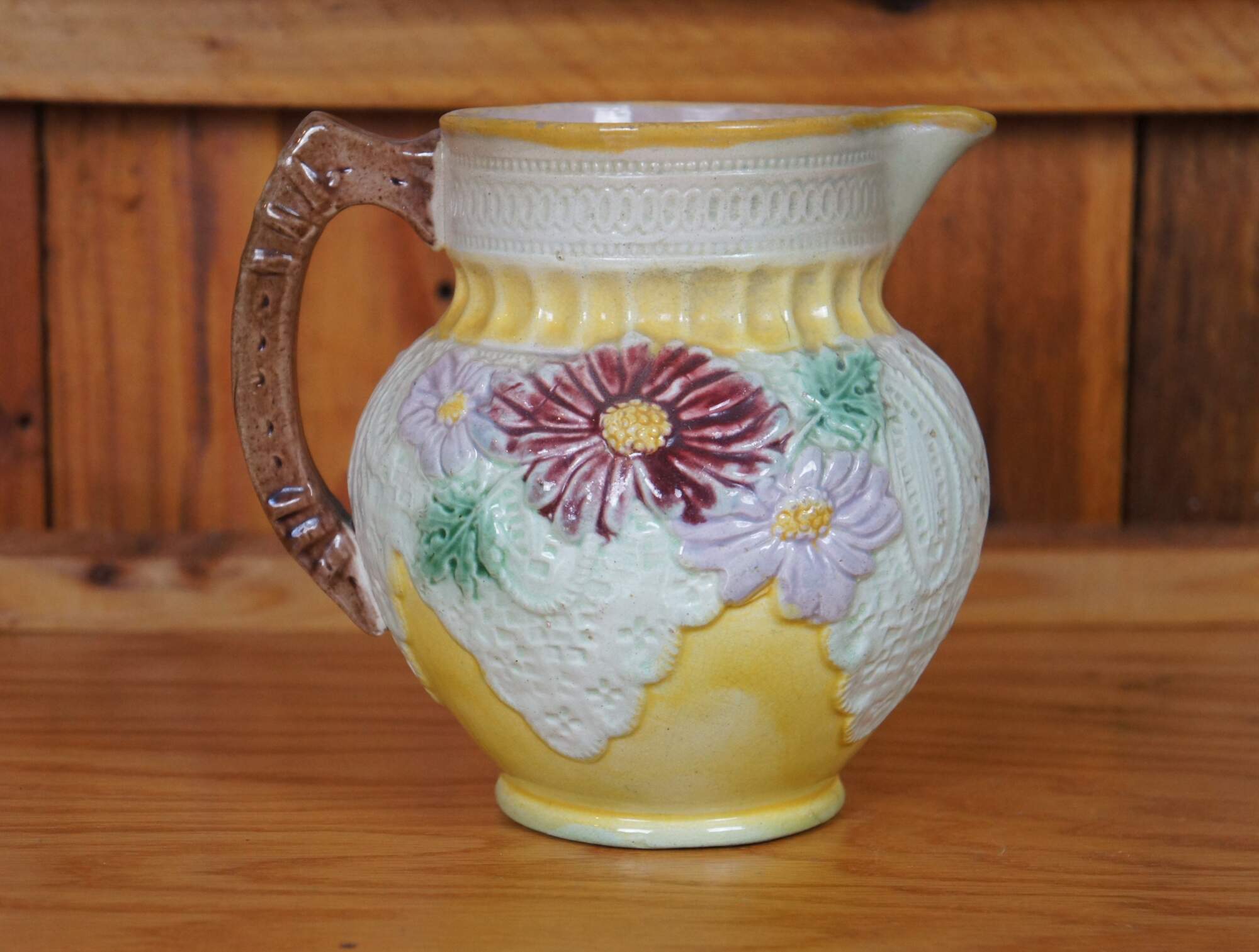 Antique Majolica pitcher / jug / carafe featuring a design of daisies and lace.