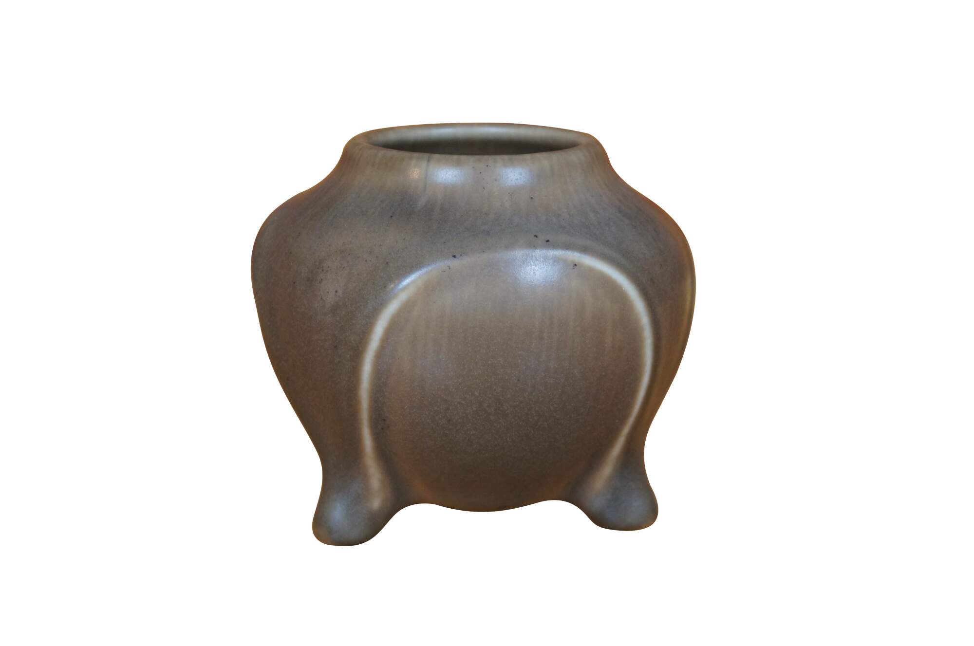 Antique Rookwood cabinet vase / footed bowl / compote featuring Art Deco styling with brown matte glaze. Marked circa XIX 1919, 2093 shape.