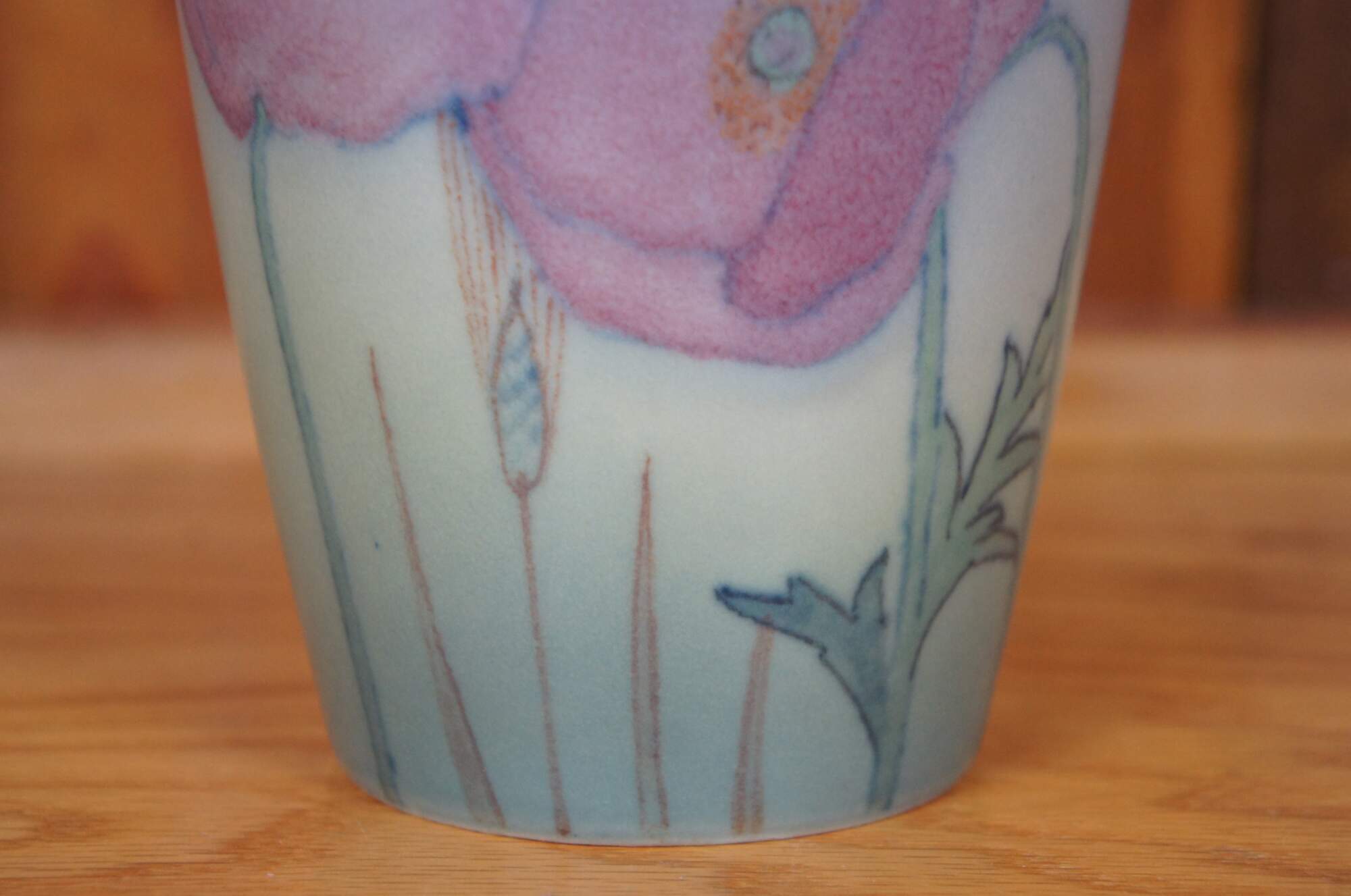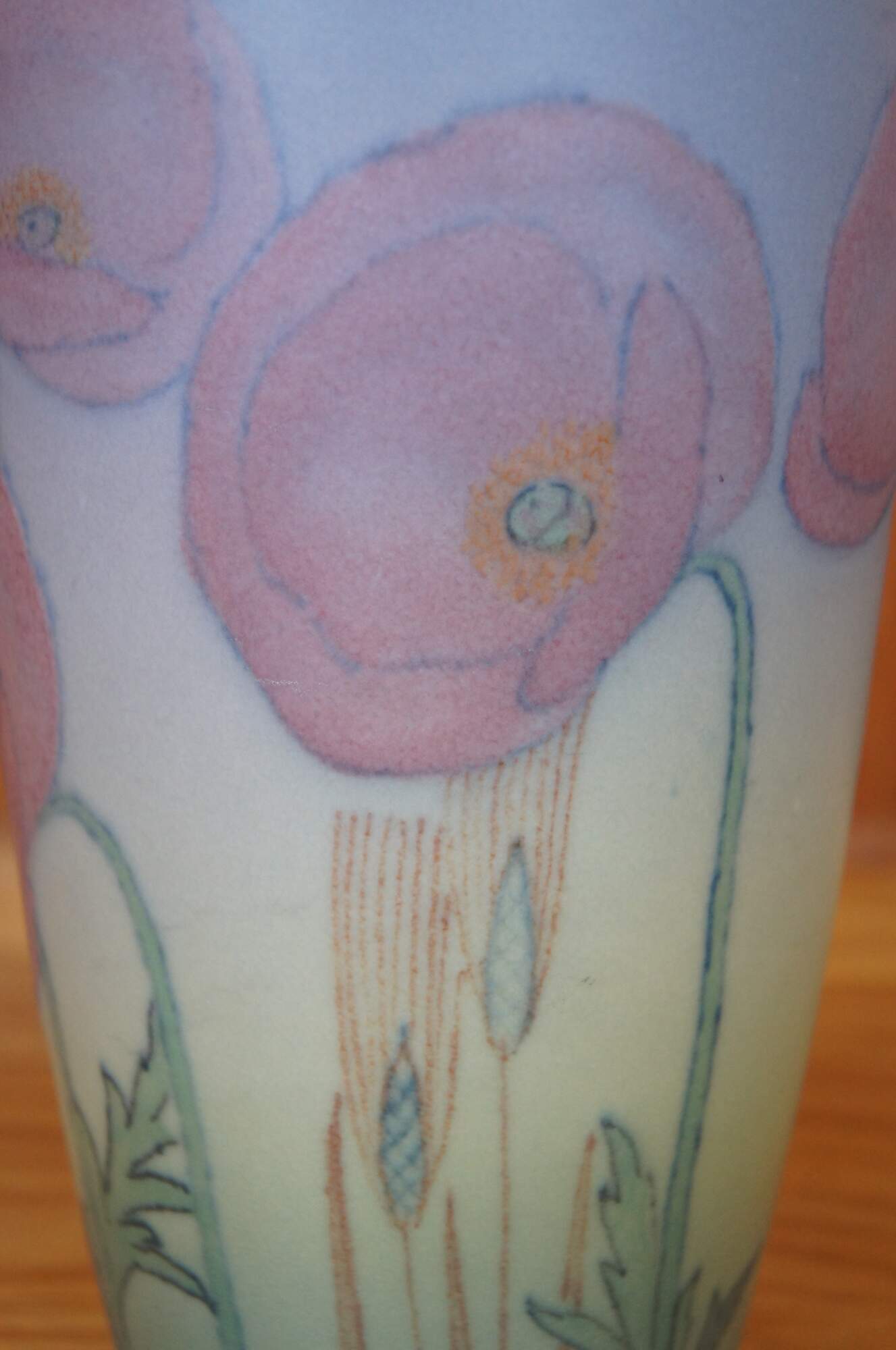 Antique Rookwood Kataro Shirayamadani mantel urn / bud / flower vase featuring art deco floral design in Vellum. 892 shape code, Size C, signed in Japanese by artist. Marked XXXV