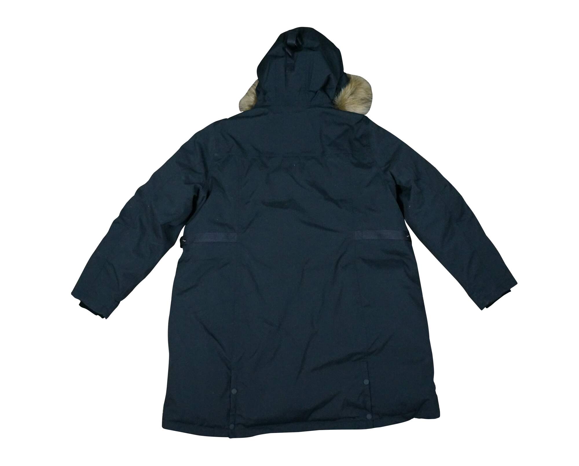 Hooded: Yes, attached adjustable snorkel hood with removable faux-fur trim.