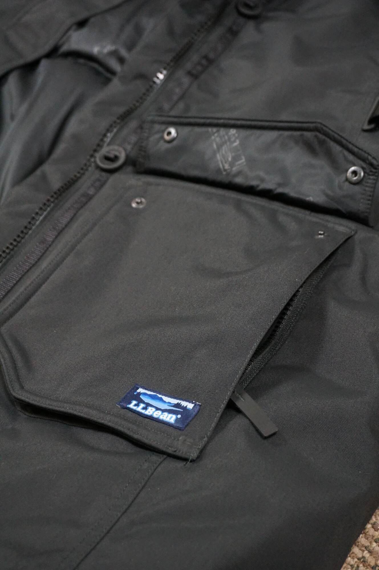 Pockets: Two lower patch pockets with snaps, one internal zip pocket, one internal patch pocket