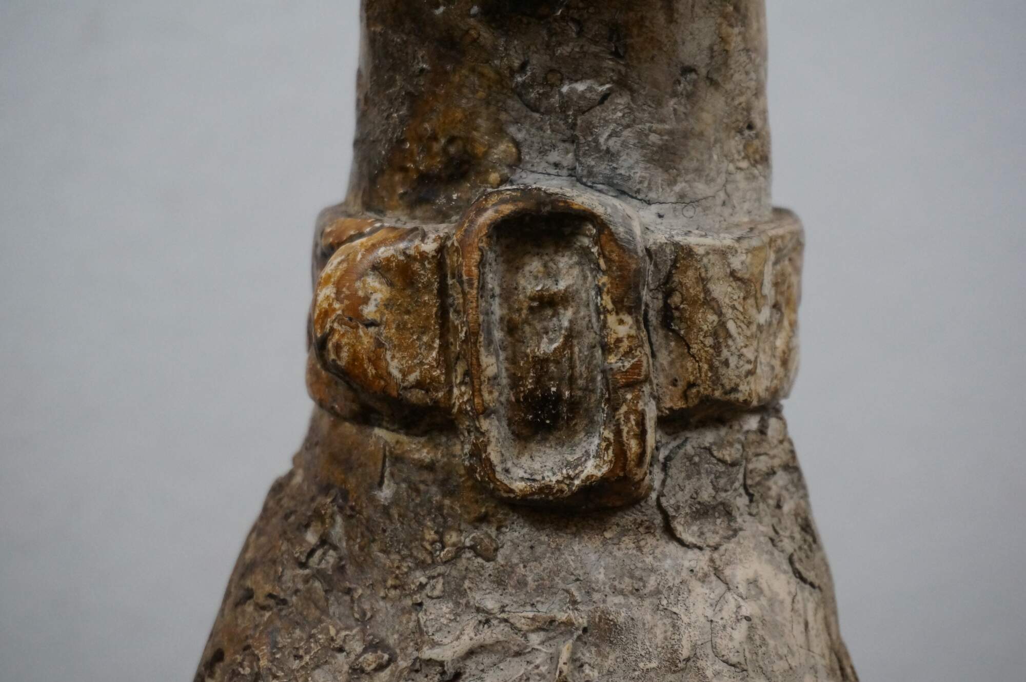 Late 20th century life sized composition sculpture depicting an Italian Greyhound or whippet wearing a wide collar, seated attentively on a rectangular base. Rough mottled brown finish. Not water resistant - for indoor display only.