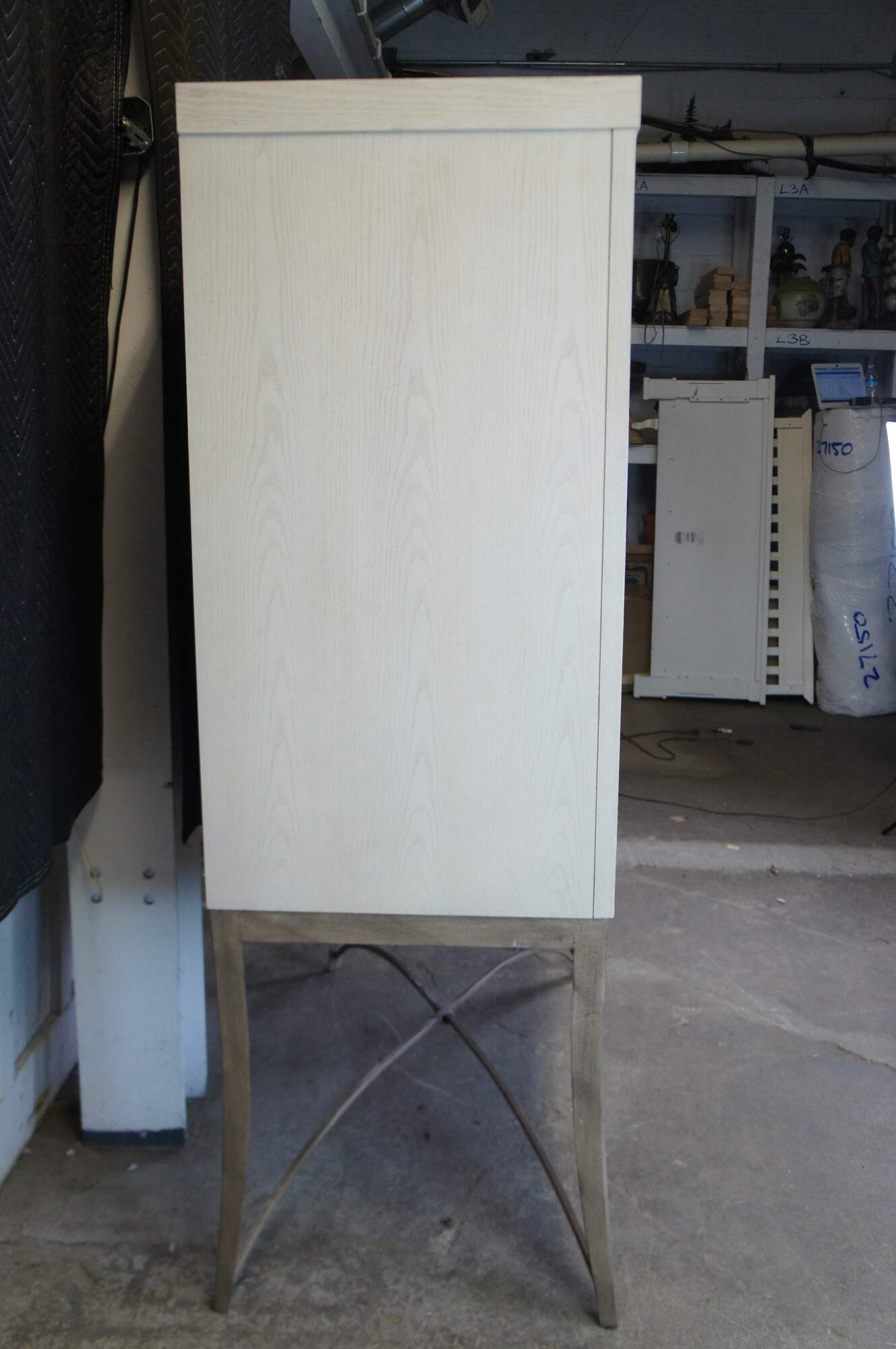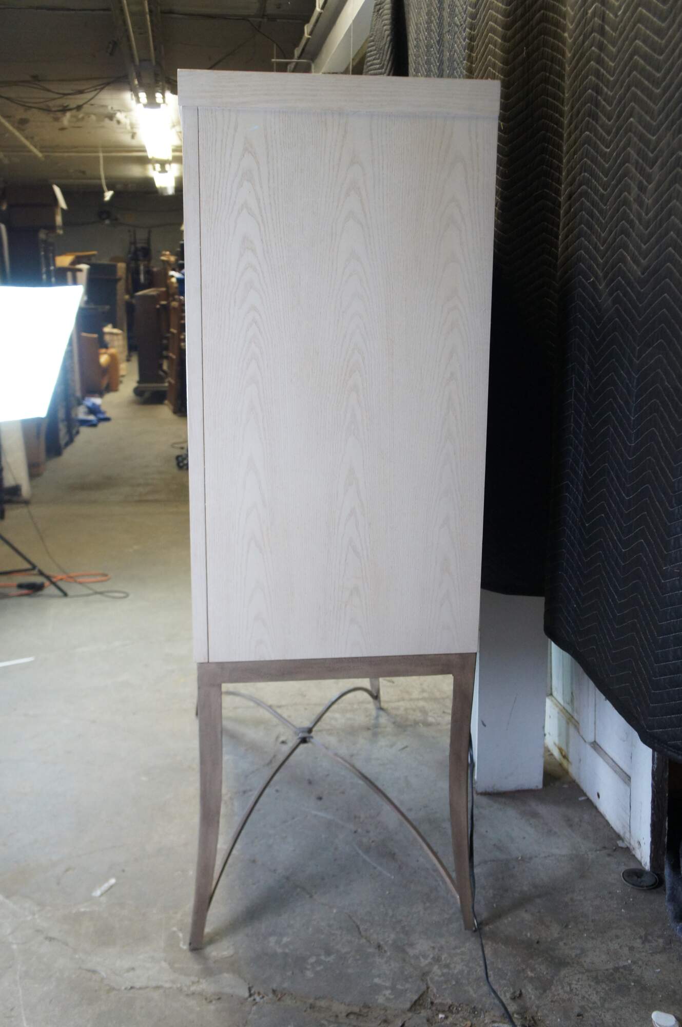 Vintage Drexel Heritage Cabochon TV console / entertainement center / bar or liquor cabinet featuring post modern style with paneled doors and iron base. 868-960. Very heavy.