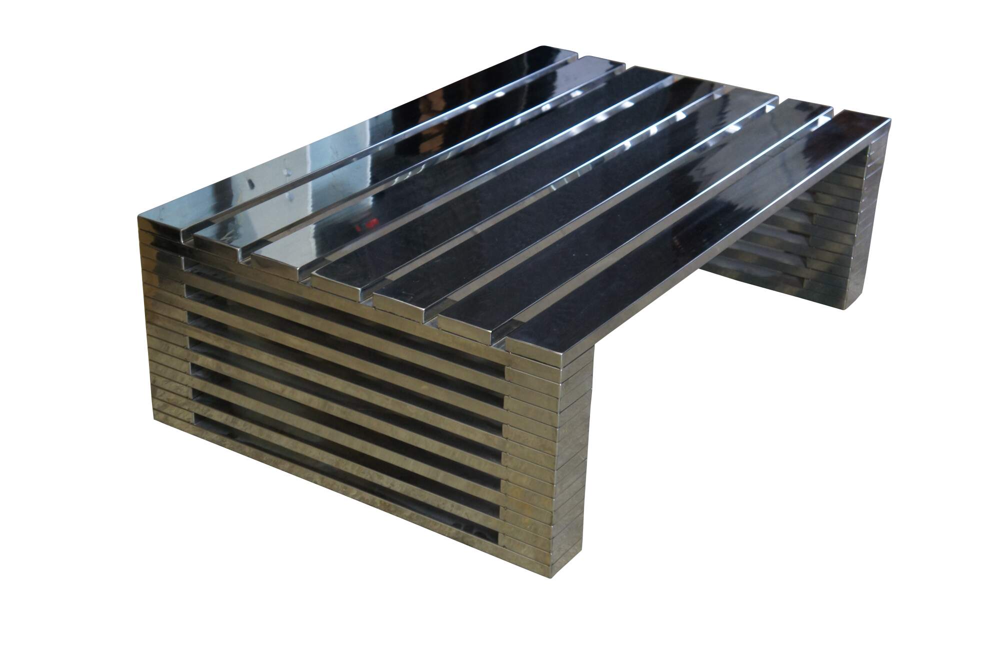 Sit and meditate on Zazenne. Finished in sleek shiny steel, this architectural collection embodies a truly modern aesthetic. Zazenne takes its inspiration from the clean lines of Japanese architecture, and translates it into a highly sculptural range of furniture. Painstakingly handcrafted and assembled, the Zazenne coffee table requires hours of labour to complete, demanding maximum levels of precision and finesse.