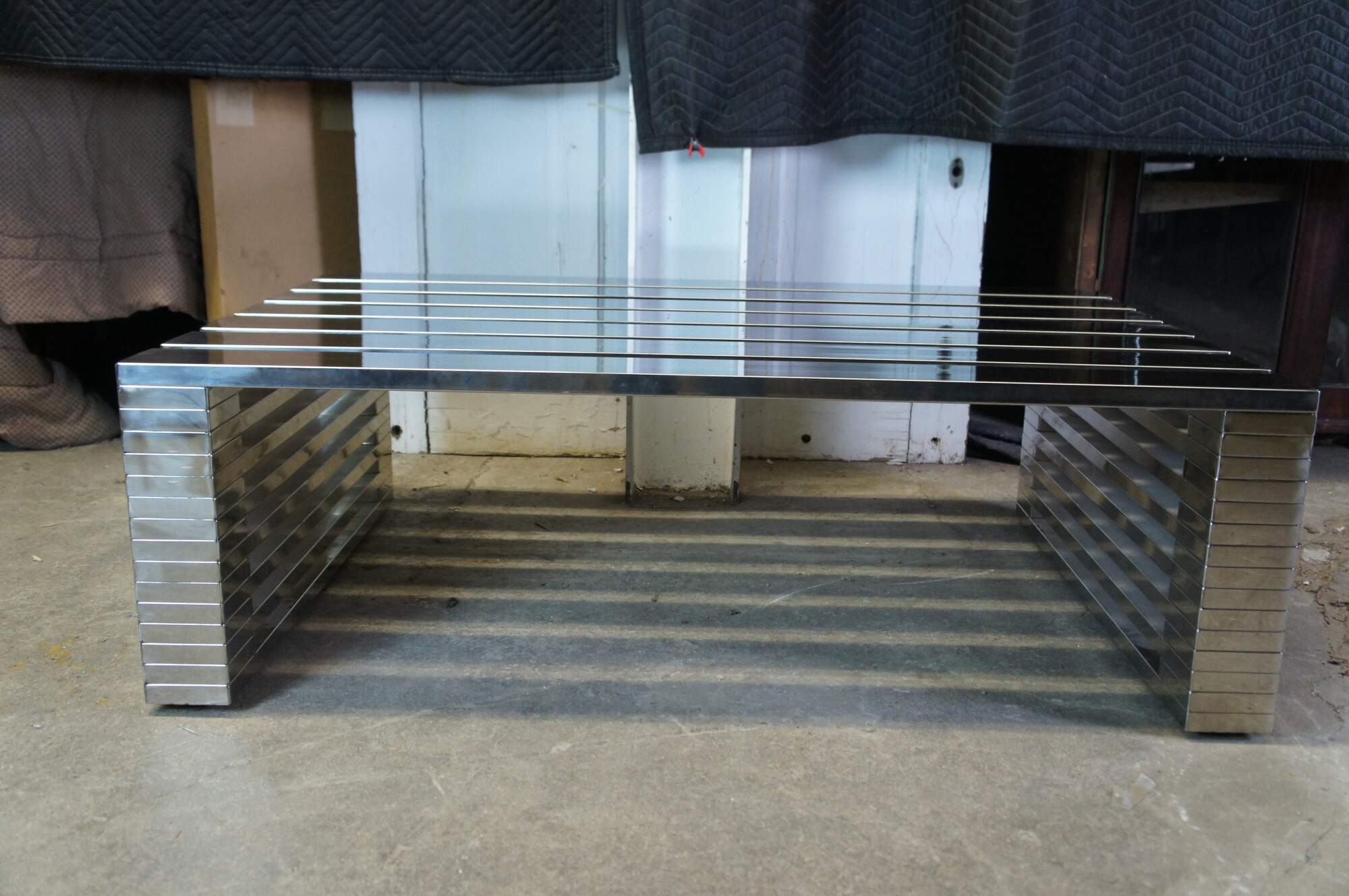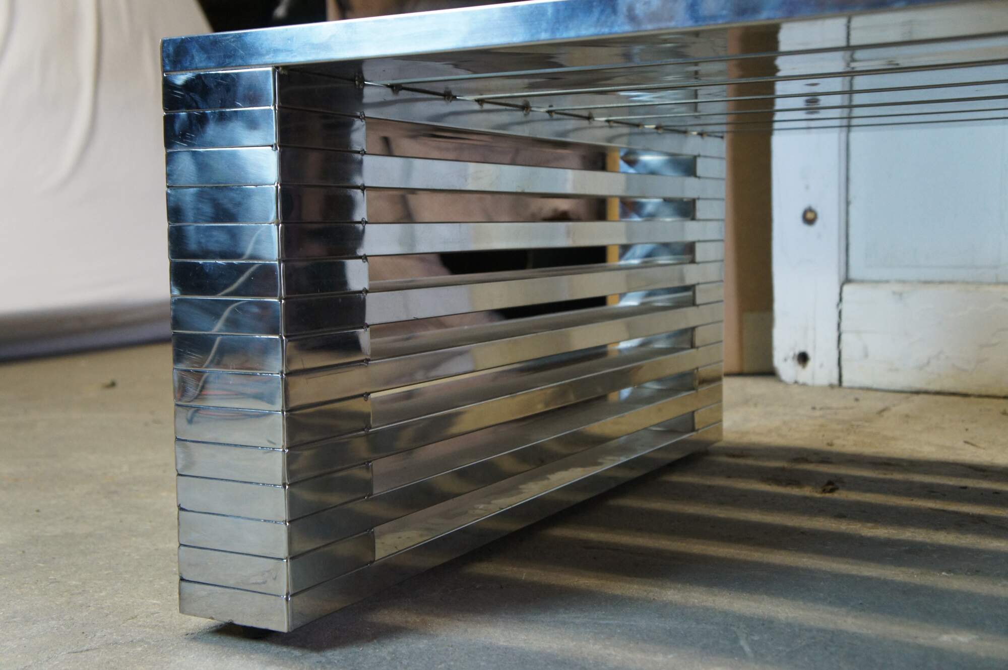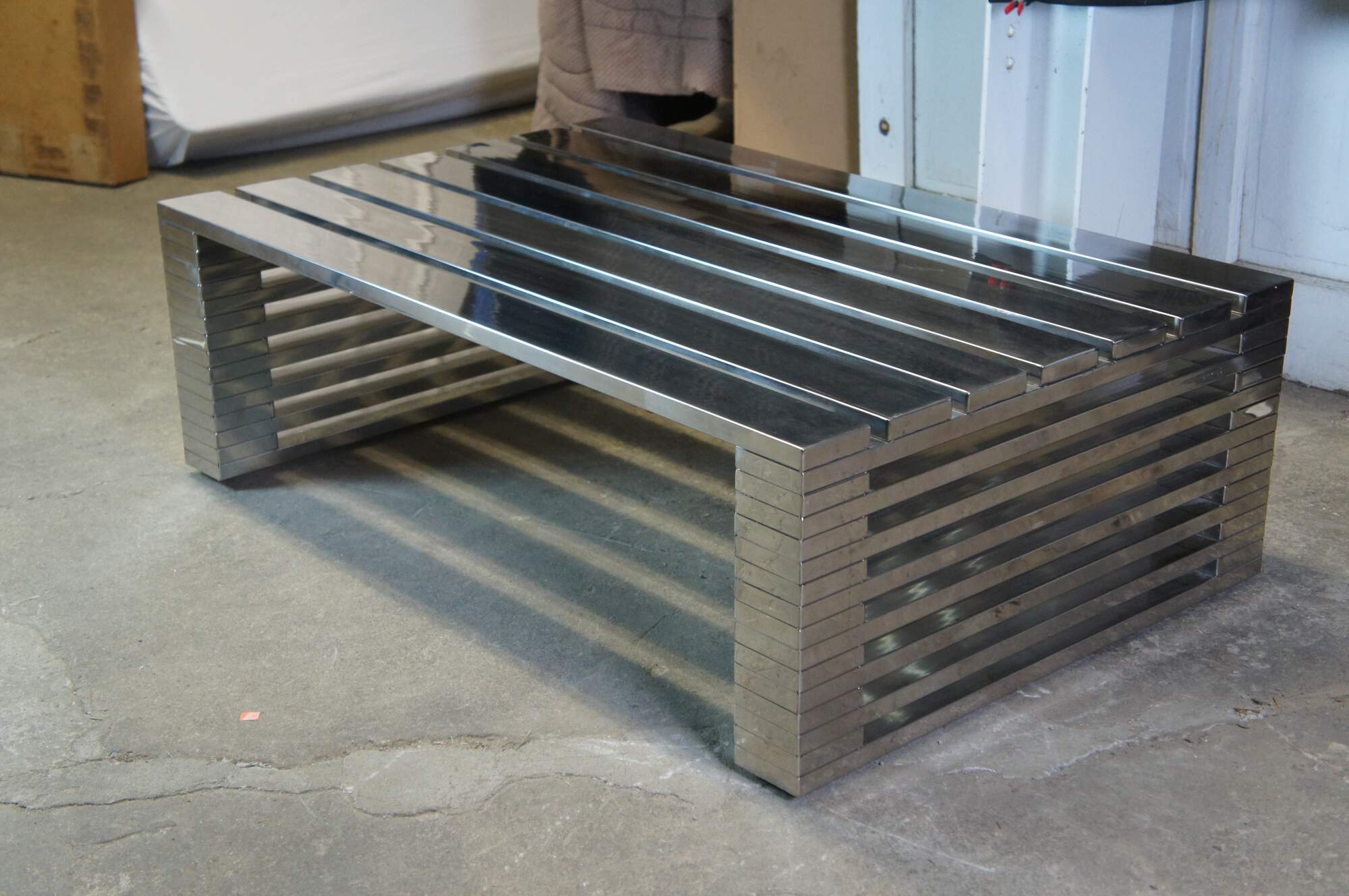 Vintage Timothy Oulton Zazenne coffee or cocktail table. Made of chrome / steel featuring rectangular form and mid century modern styling. Very heavy.