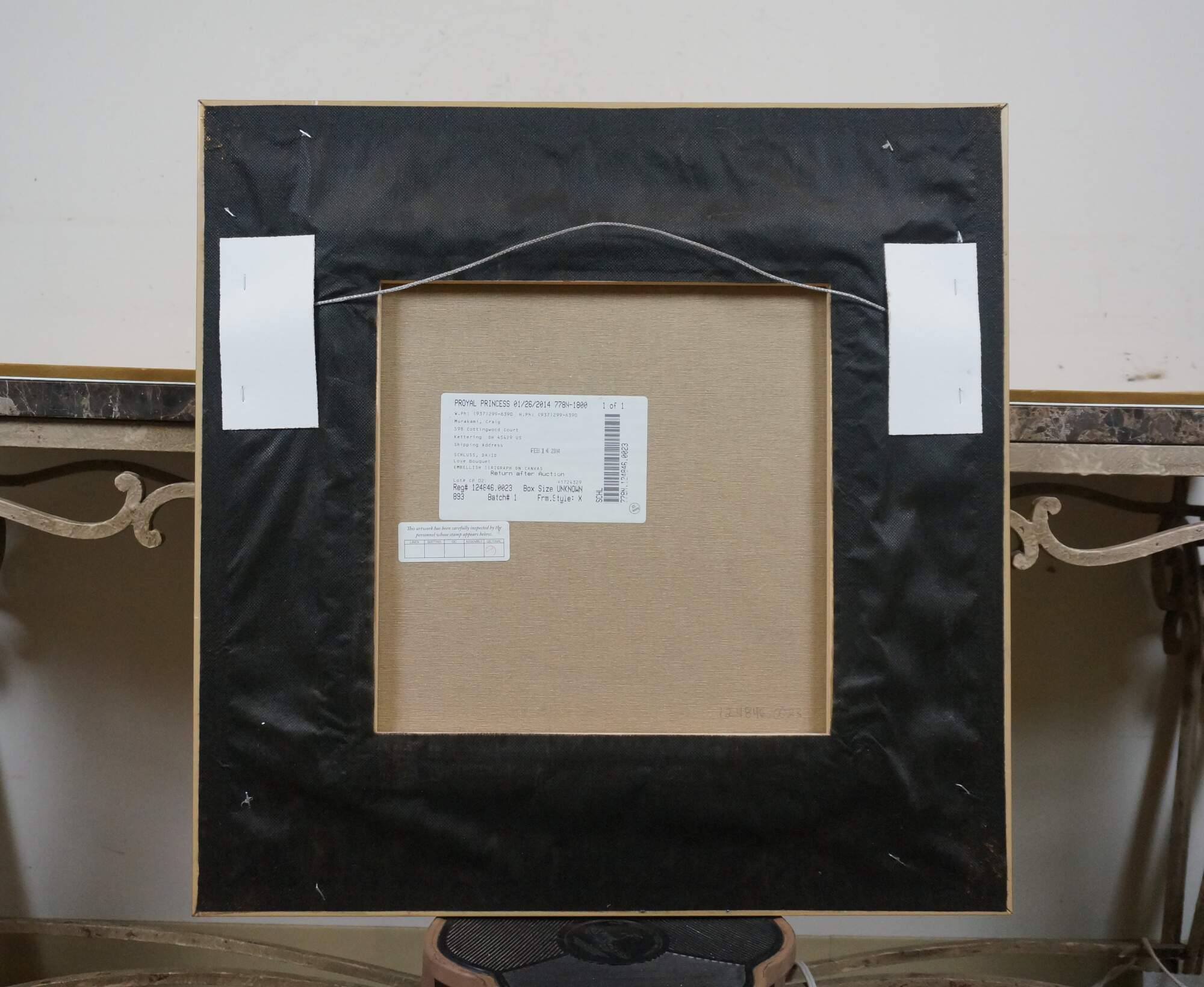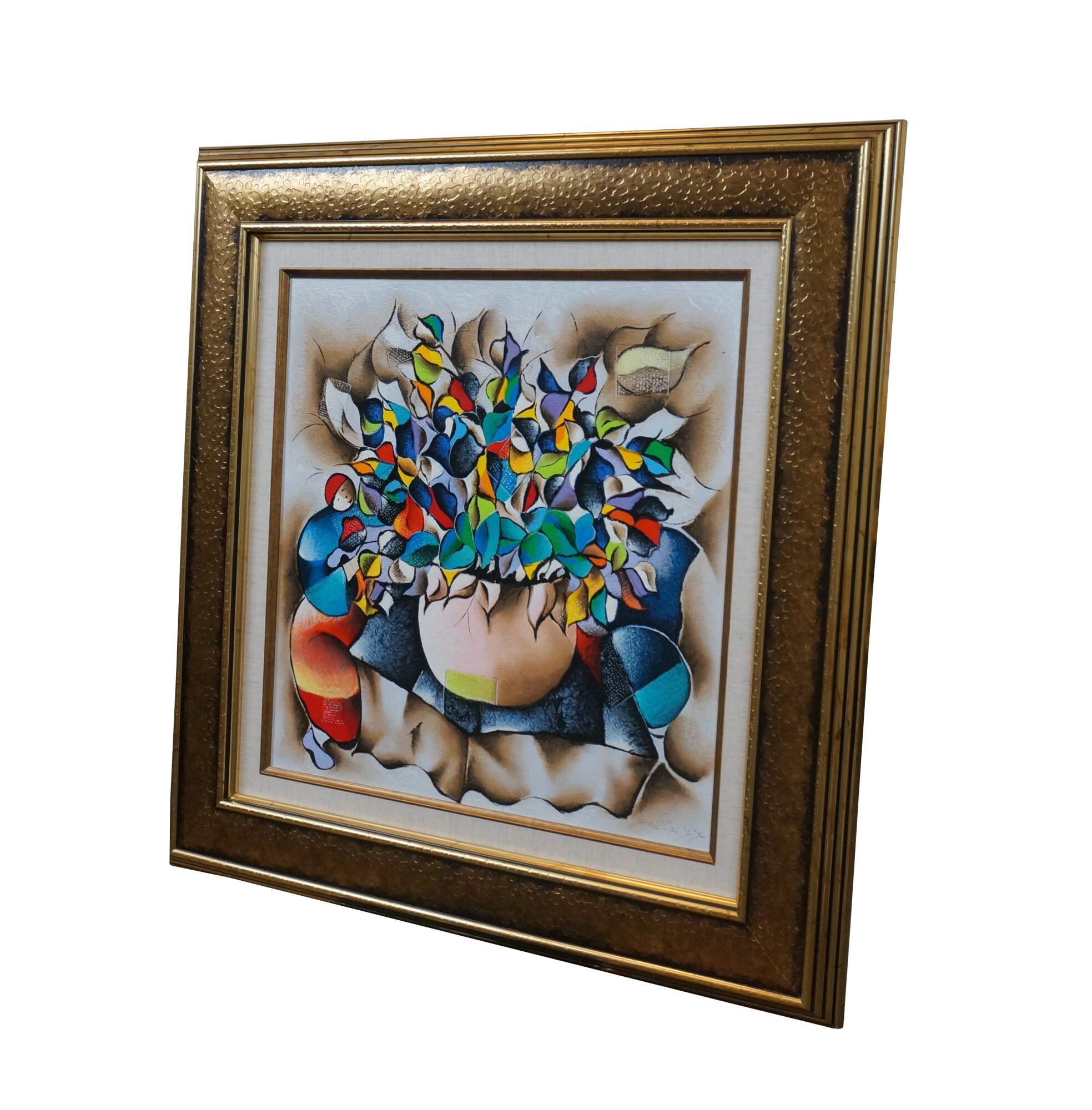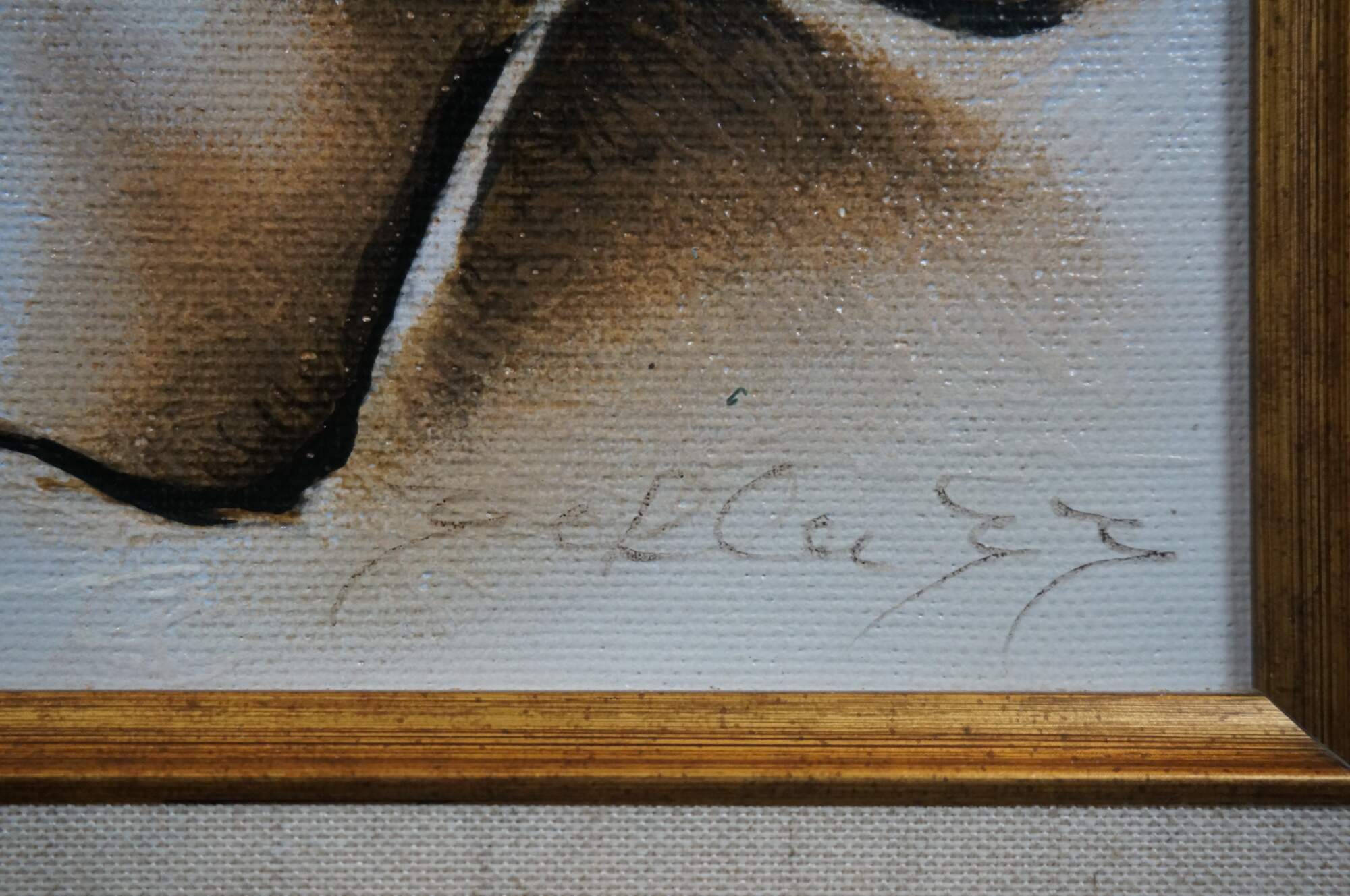Embellished serigraph print on canvas titled "Love Bouquet" by David Schluss. Signed in lower right. Numbered 95/150 on reverse. Textured giltwood frame; white linen mat.