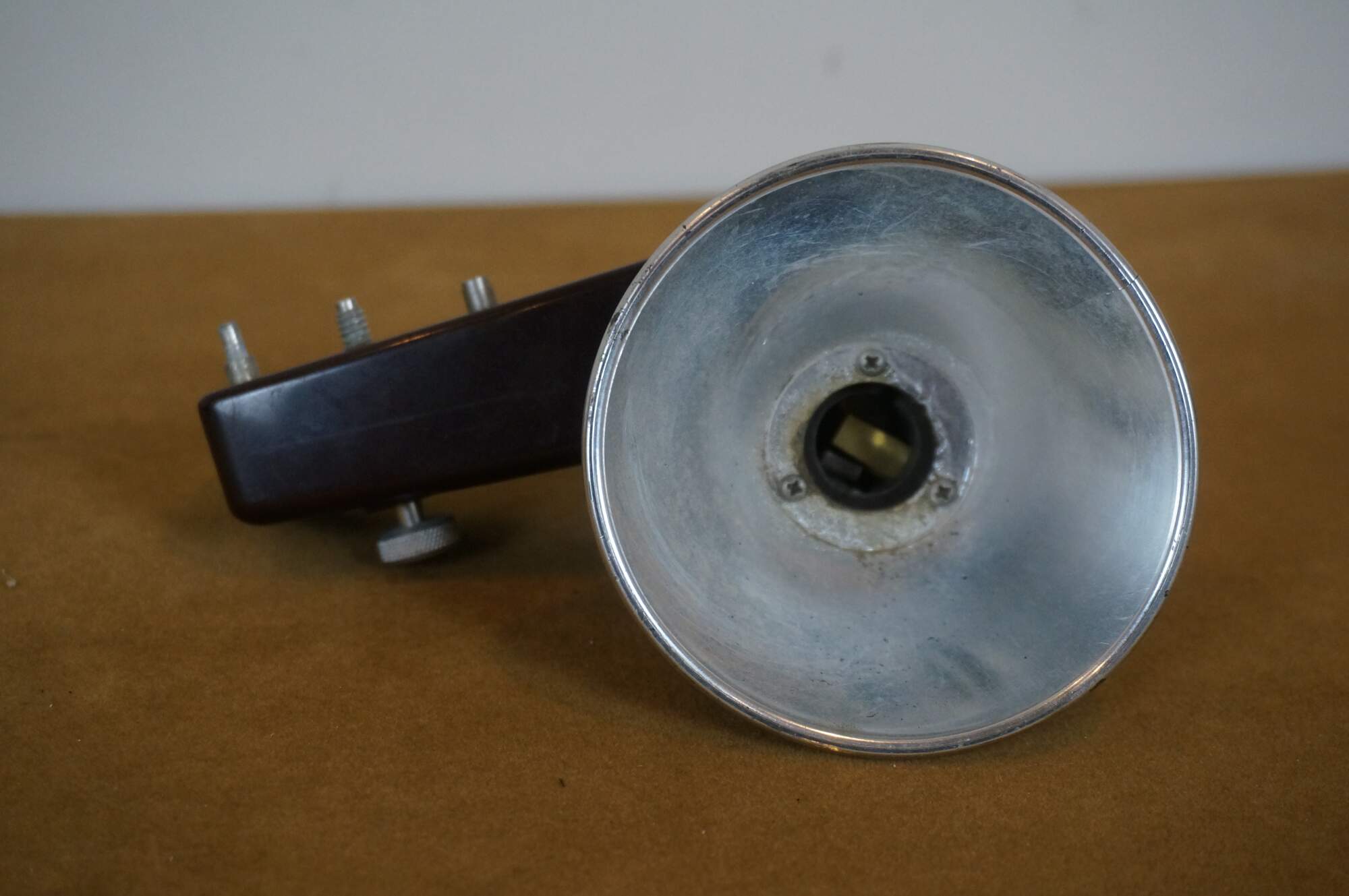 Vintage 1950's Kodak Brownie Hawkeye Flash Model black Bakelite film camera. Marked YMRI indicating a production date of 03/58 (March 1958). Comes with brown Kodalite Midget Flasholder.