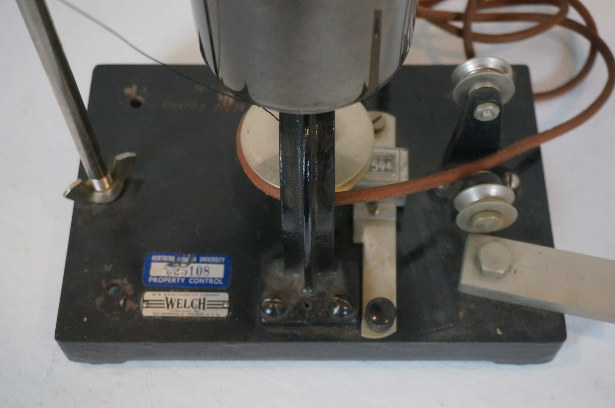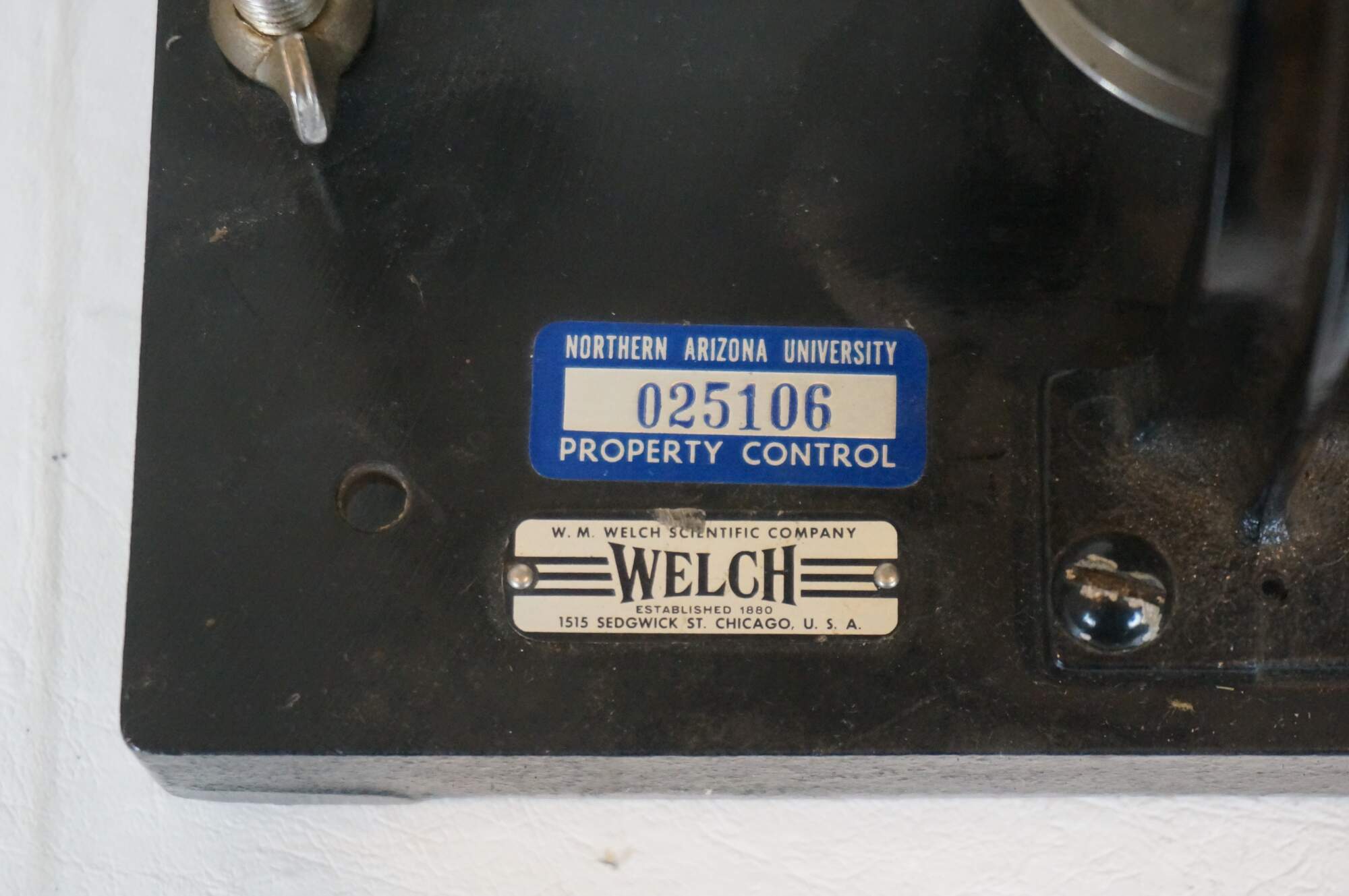 Pair of rare mid 20th century centrifuges produced by the W.M. Welch Scientific Company of Chicago, IL. Base stamped 1684 D. Previously property of Northern Arizona University Physics Department.