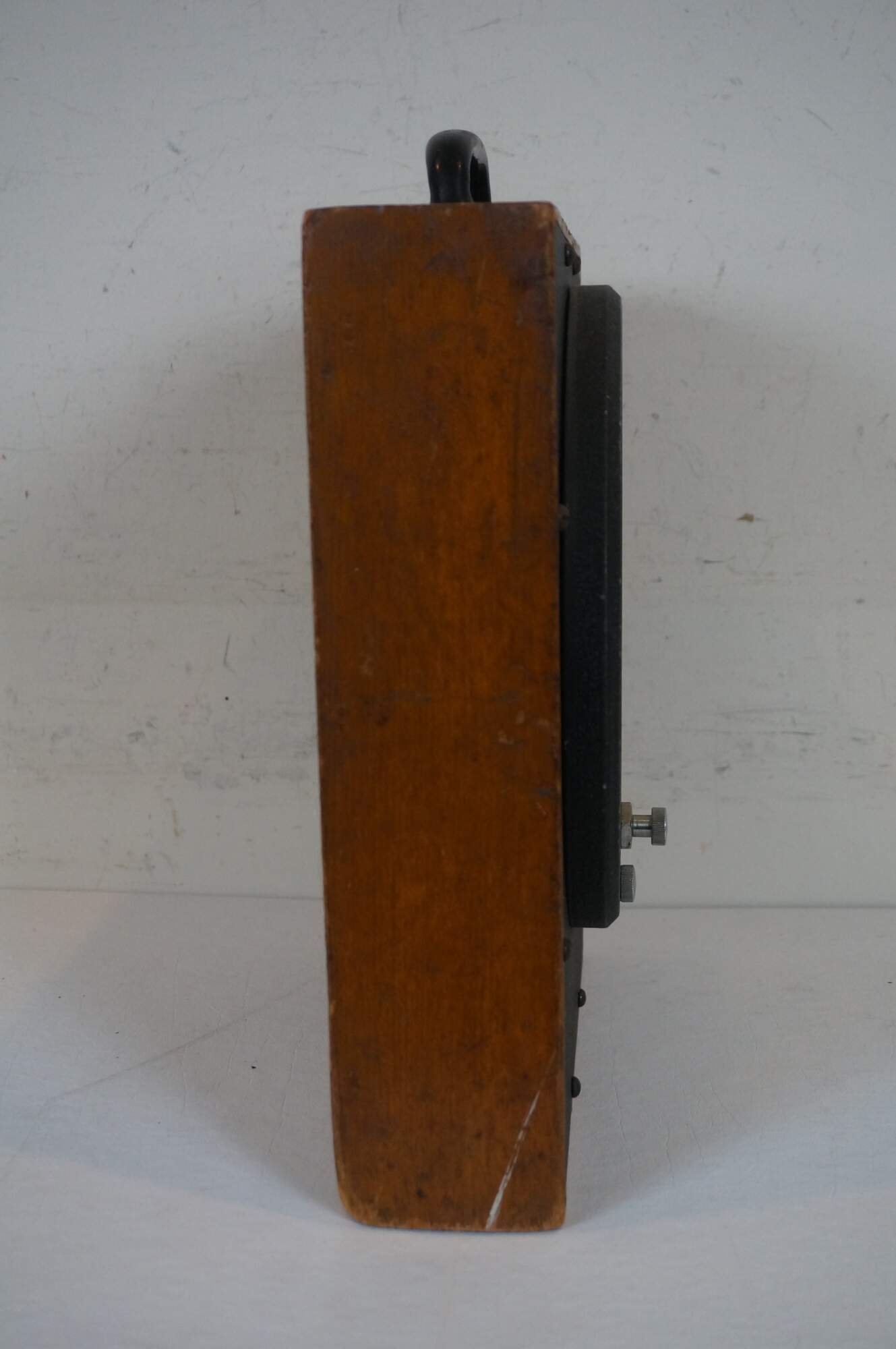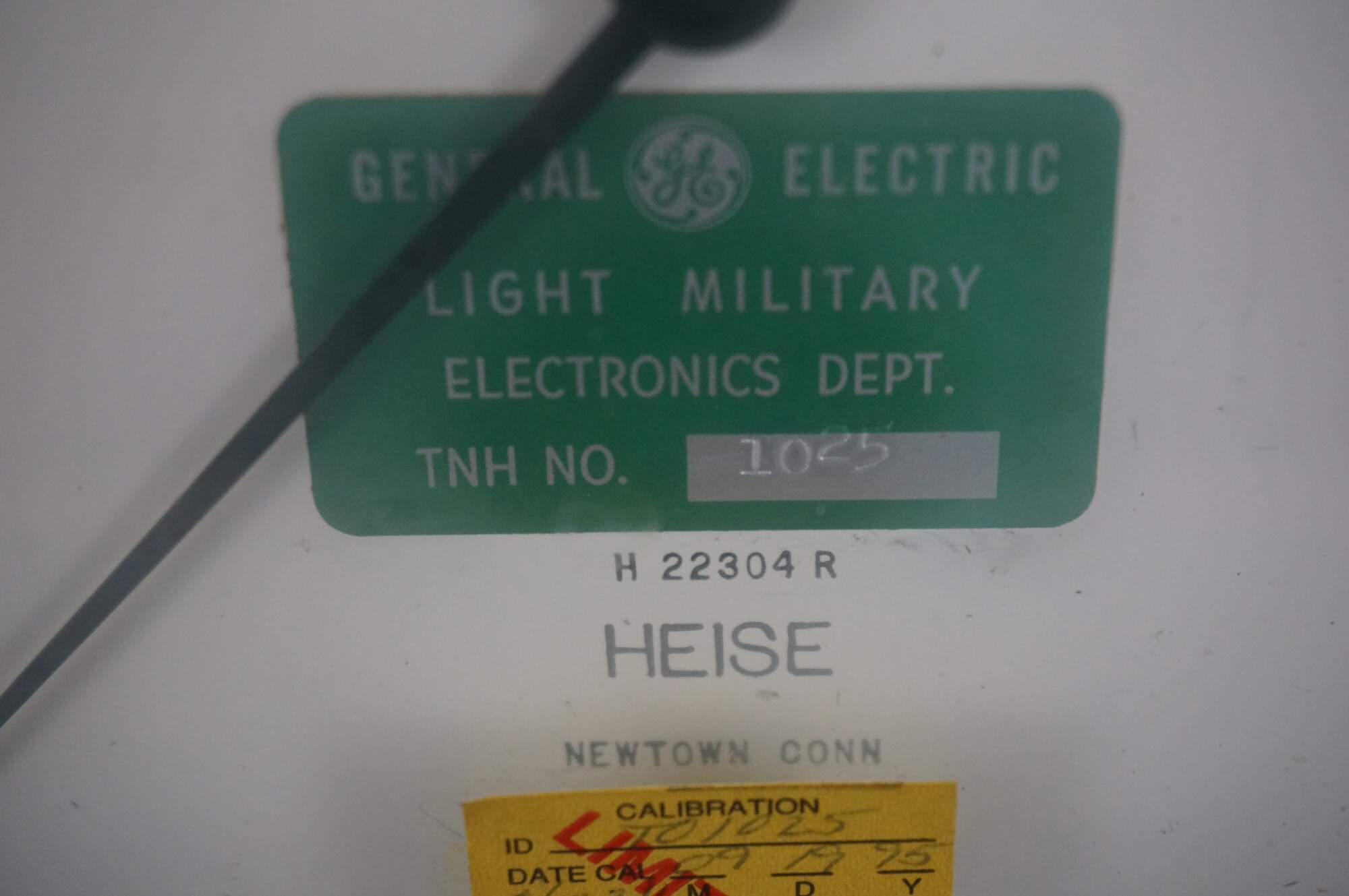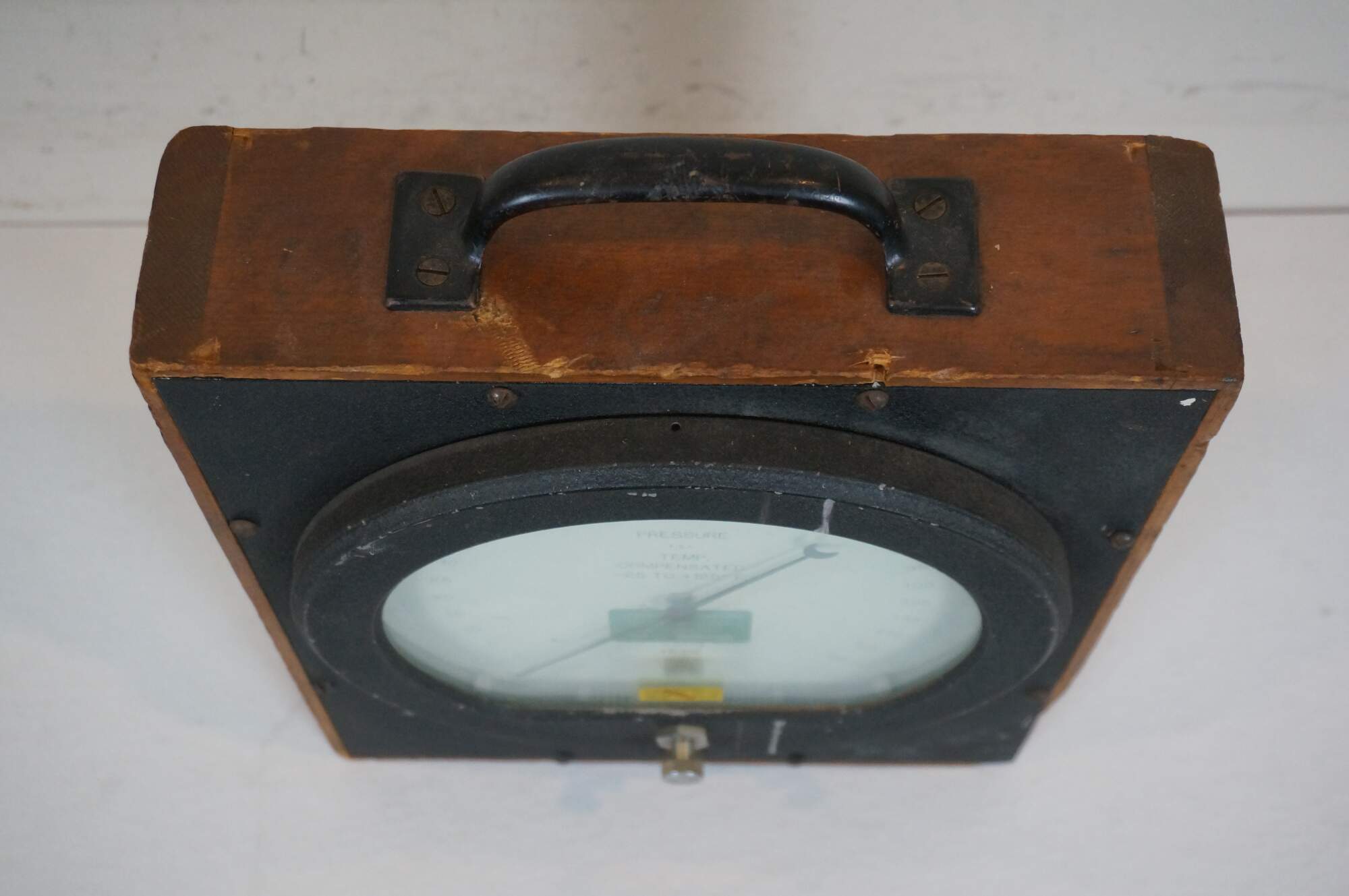 Mid to late 20th century H 22304 R Temperature Compensated Pressure Gauge in hardwood carrying case. General Electric Light Military Electronics Department - TNH No. 1025.