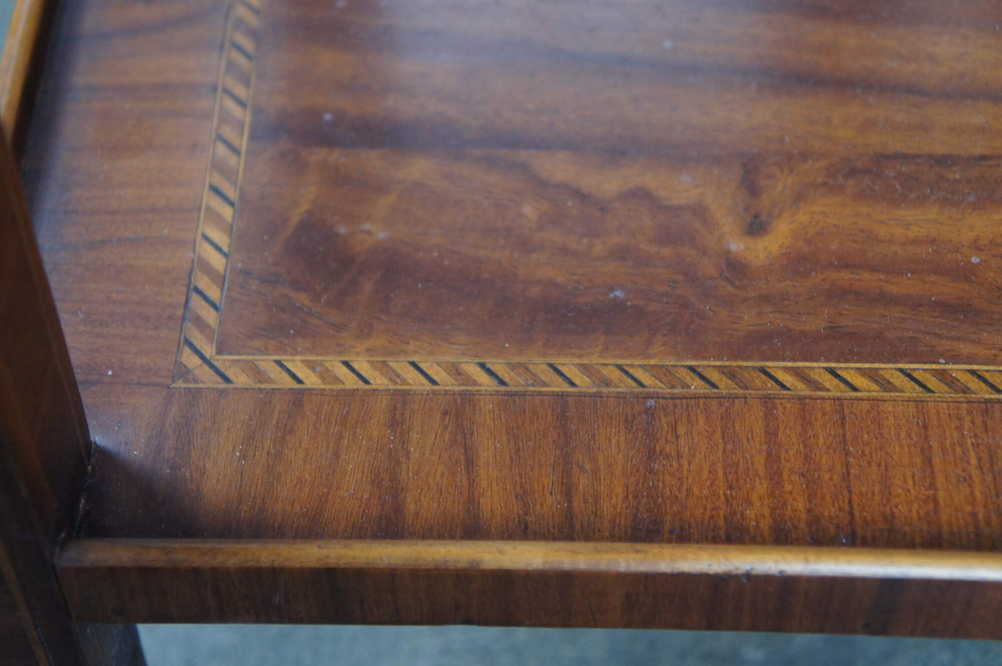 Fair Condition; General wear from use and age. Some marking and edgeweare to the serpentine gallery. trim missing along front right and back left corner. Past repair to front left foot.