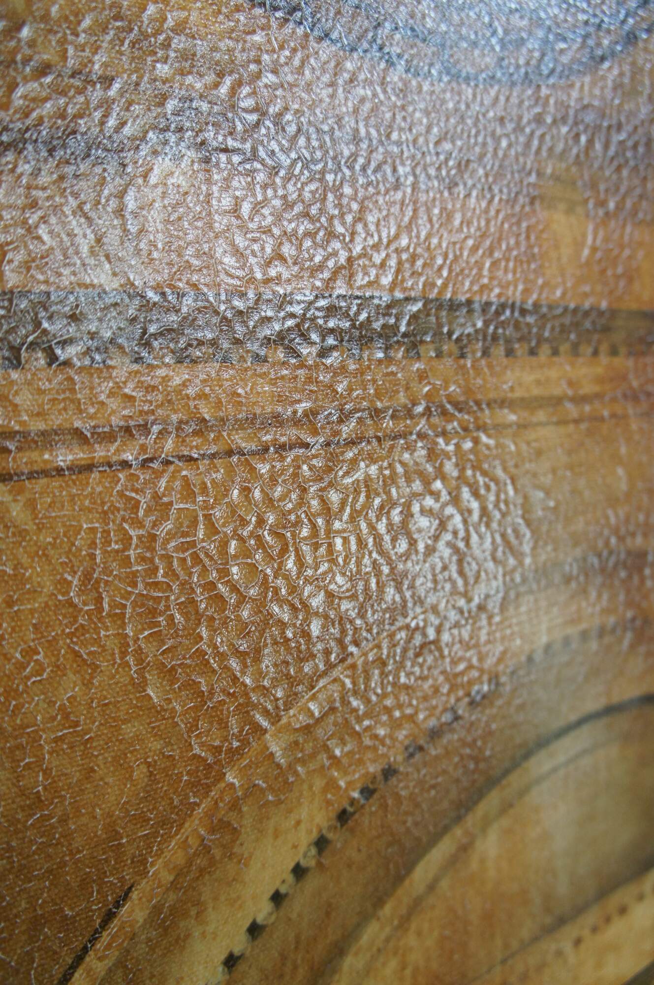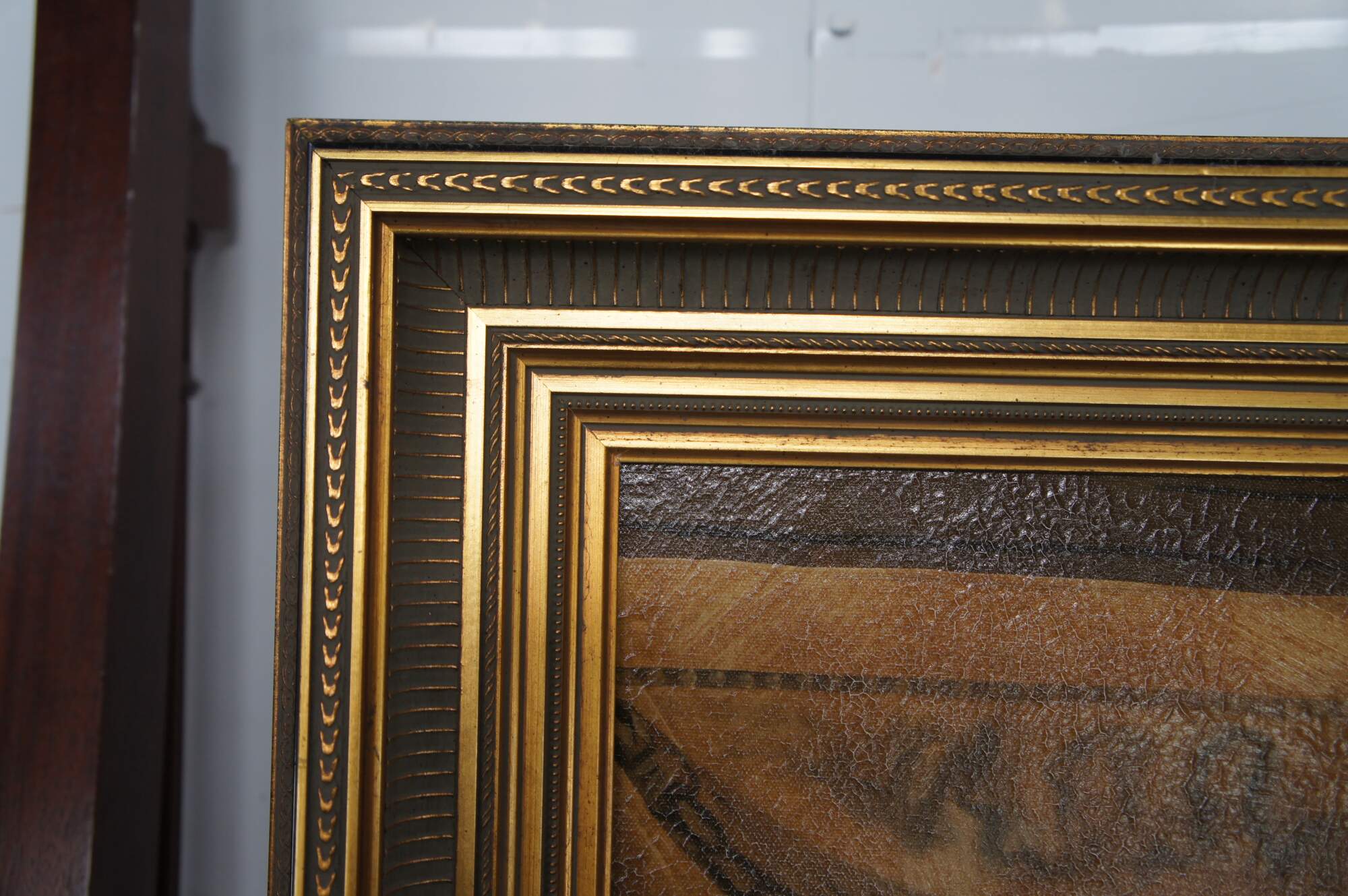 Good Condition; Canvas has natural craquelure giving the look of age. A few marks to frame