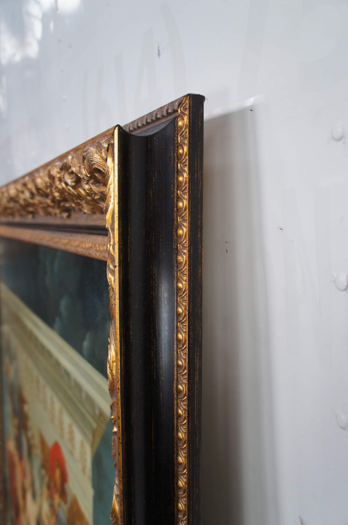 This example is from the late 20th century, ornately framed with low relief foliate and a gold finish.