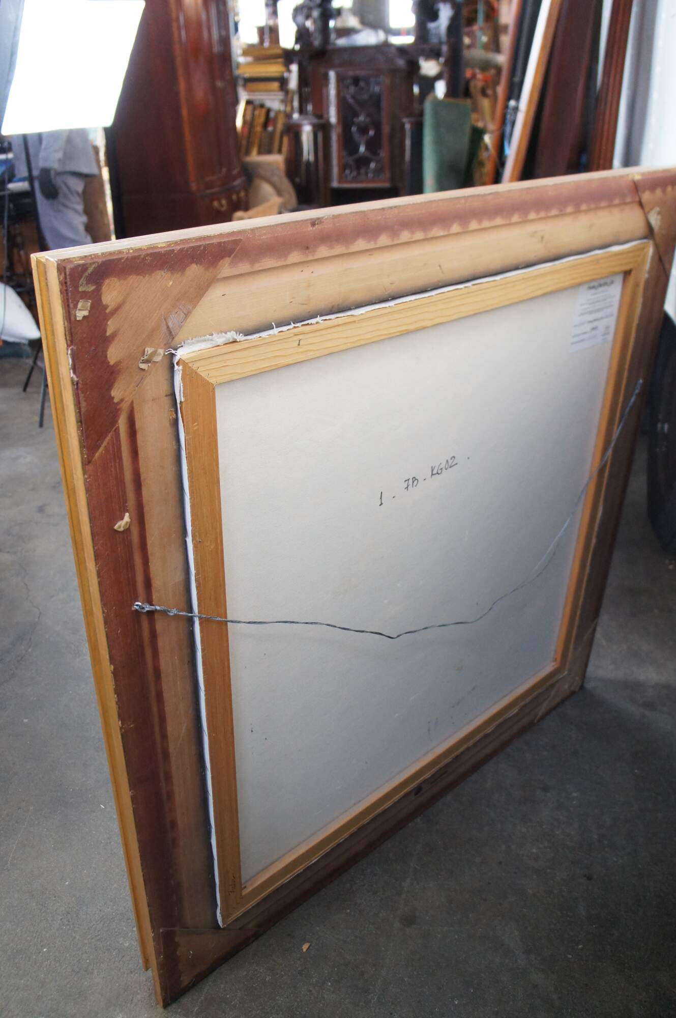 A large signed oil painting depicting a canal scene or view of Venice. Features buildings, boats, and figures on the waterway. The painting is vibrantly colored with beautiful detail. The canvas is signed along the lower edge and framed in a Neoclassical manner. A certificate of authenticity is mounted to the backside of the canvas.