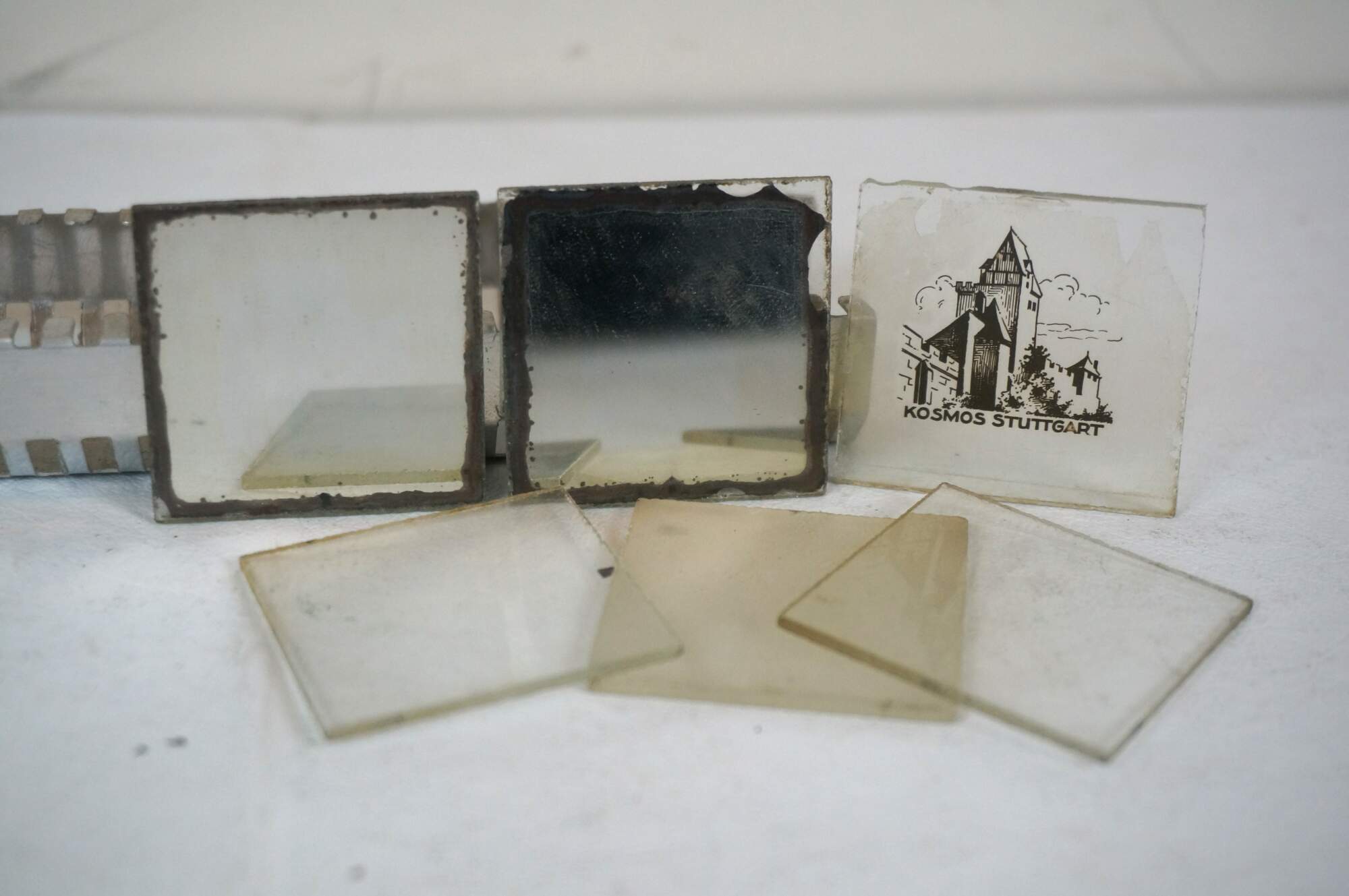 A very neat and rare Circa 1923 Kosmos-Baukasten Optik kit - a modular optics construction / system / experiment theory of light kit including a variety of apertures, bezels, lenses and holders. Includes original box.