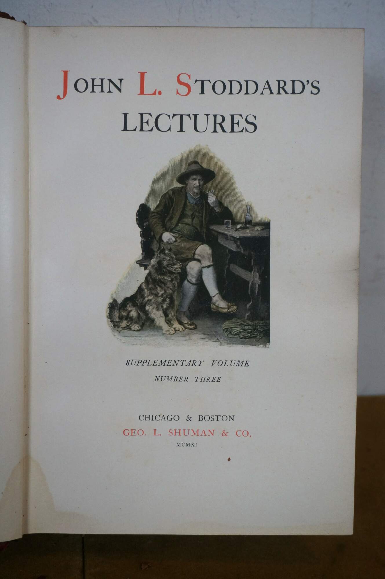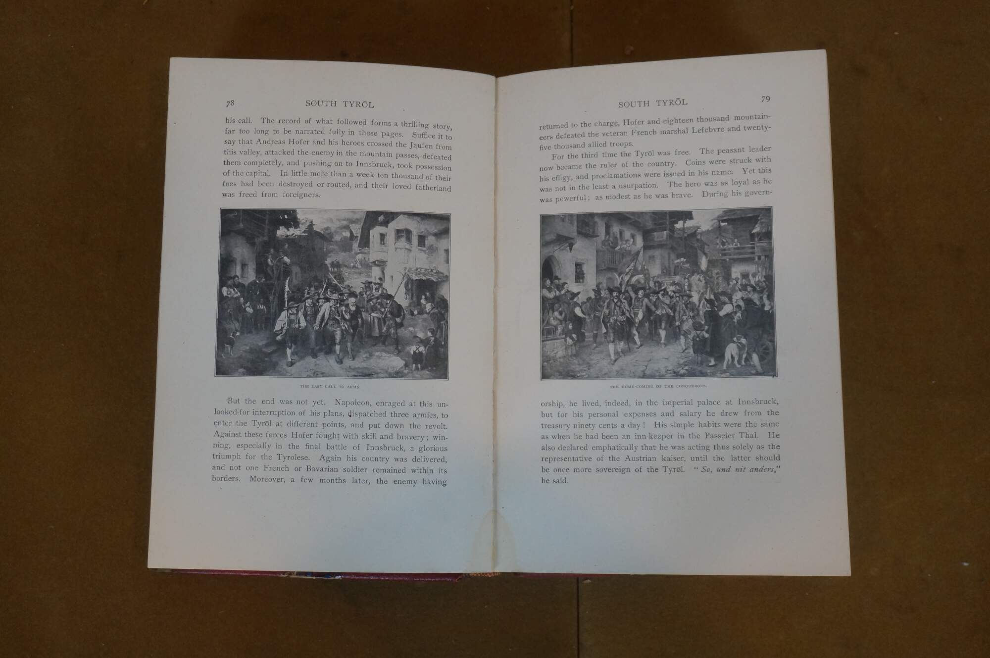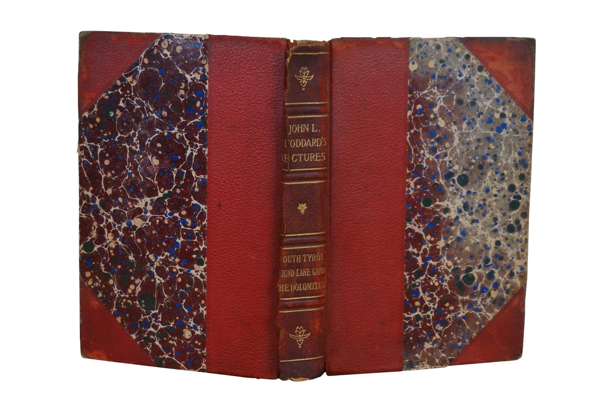John L. Stoddard's Lectures: Supplementary Volume Number Three (South Tyrol, Around Lake Garda, The Dolomites) - Published by George L. Shuman & Co, 1911 - Copyright 1903 by John L. Stoddard - Norwood Press, J.S. Cushing & Co / Berwick & Smith Co, Boston Bookbinding Co - Engravings by John andrew & Son - Hard cover, marbled paper binding with leather spine and corners.
