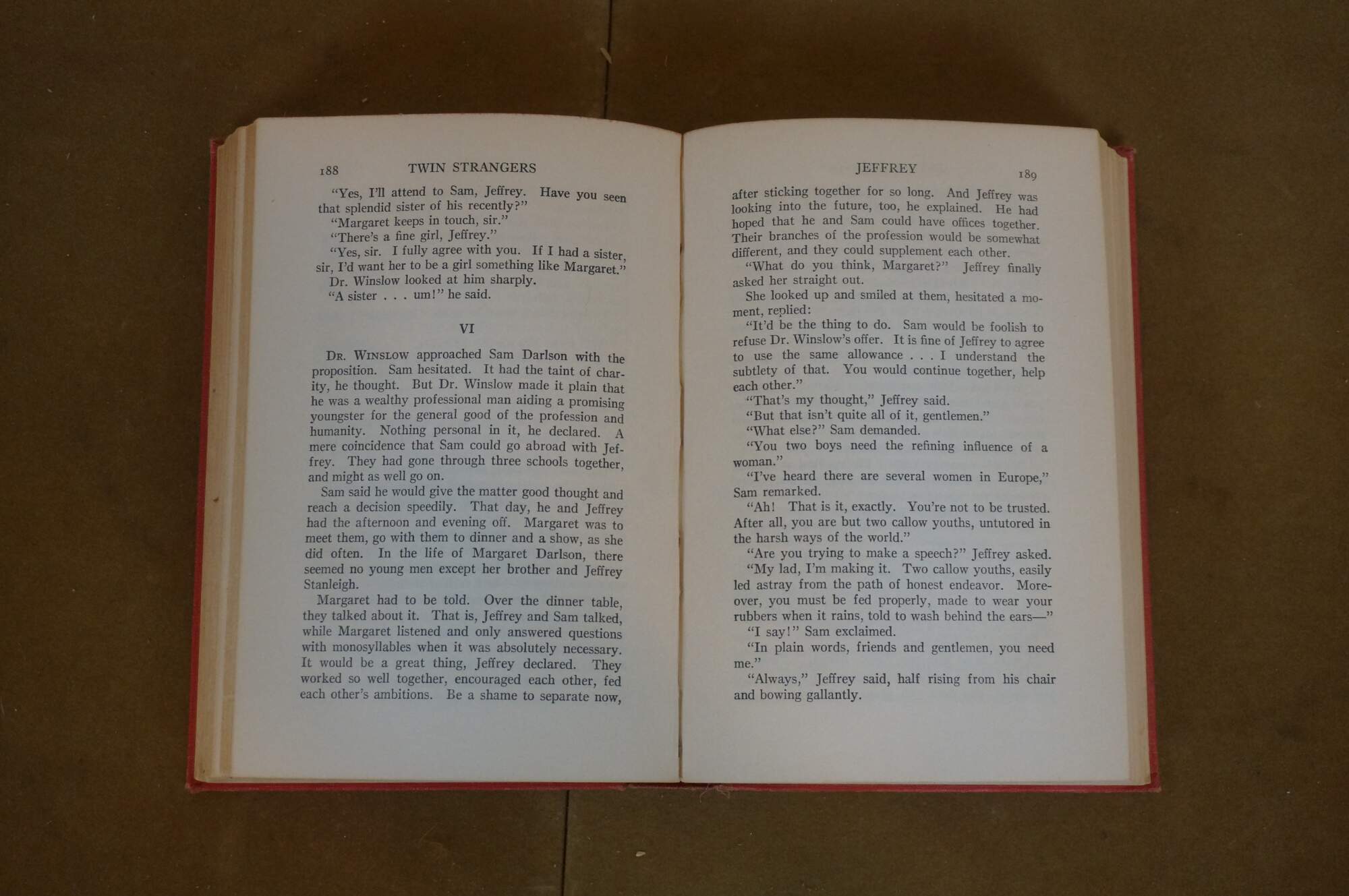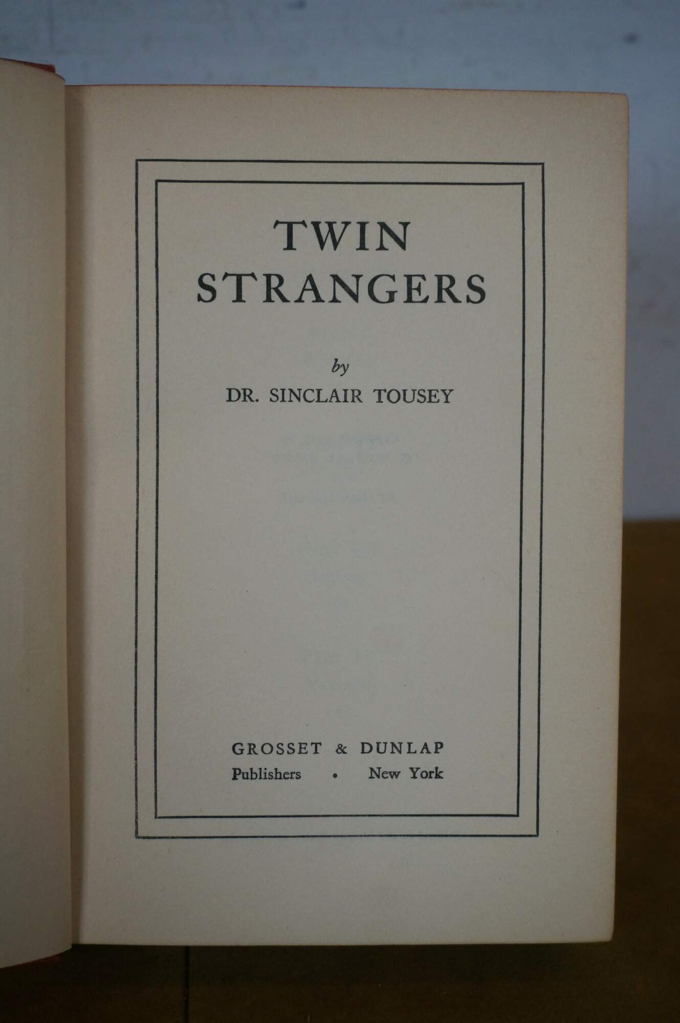 Twin Strangers - by Dr. Sinclair Tousey - Published by Grosset & Dunlap - Copyright 1934 by G. Howard Watt - Printed in the United States of America - Hard cover, red cloth binding.