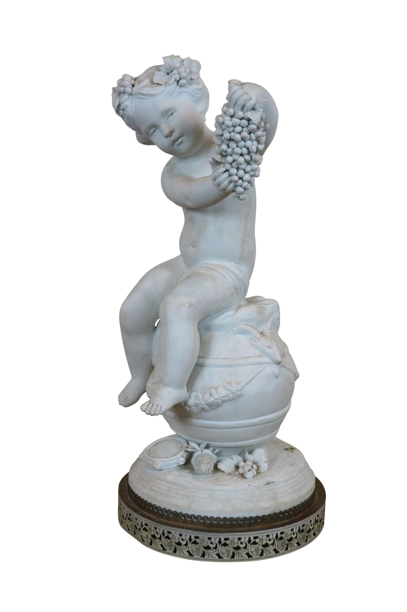 Large bisque porcelain sculpture representing young Bacchus. France, Samson factory, circa 1920 - 1940, signed Fagotto (Armand Fagotto XIX - XX),