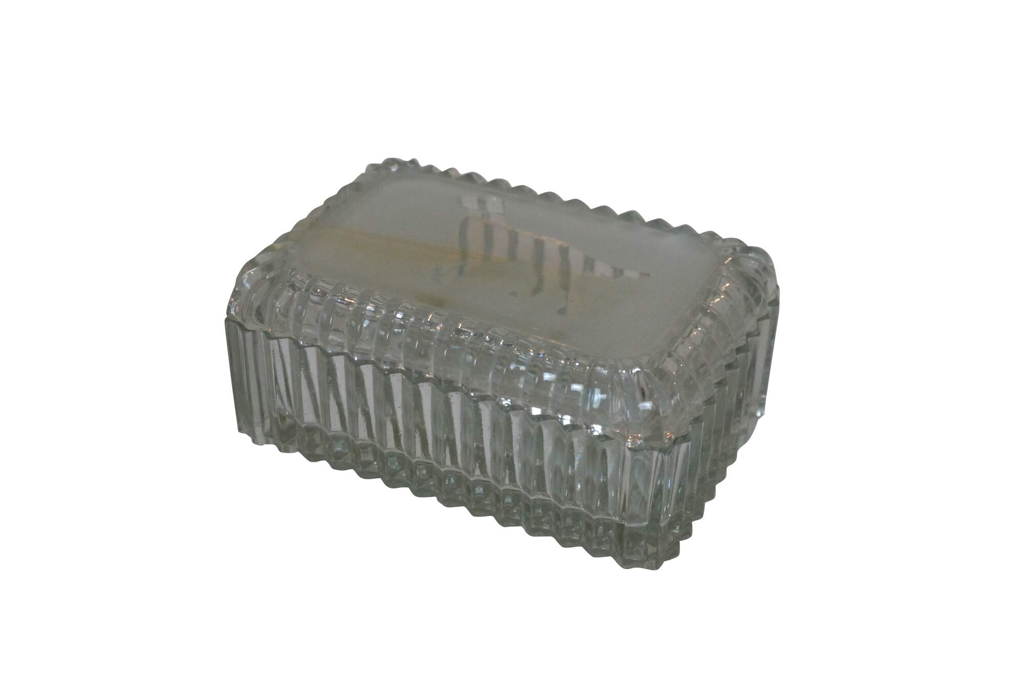 Mid Century Cut Glass Golden Retriever Cigarette Storage Box Ash Trays Votive