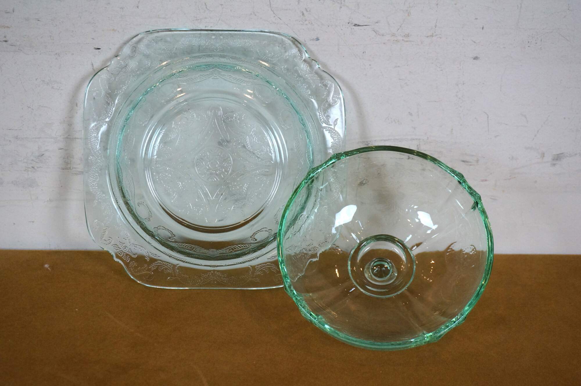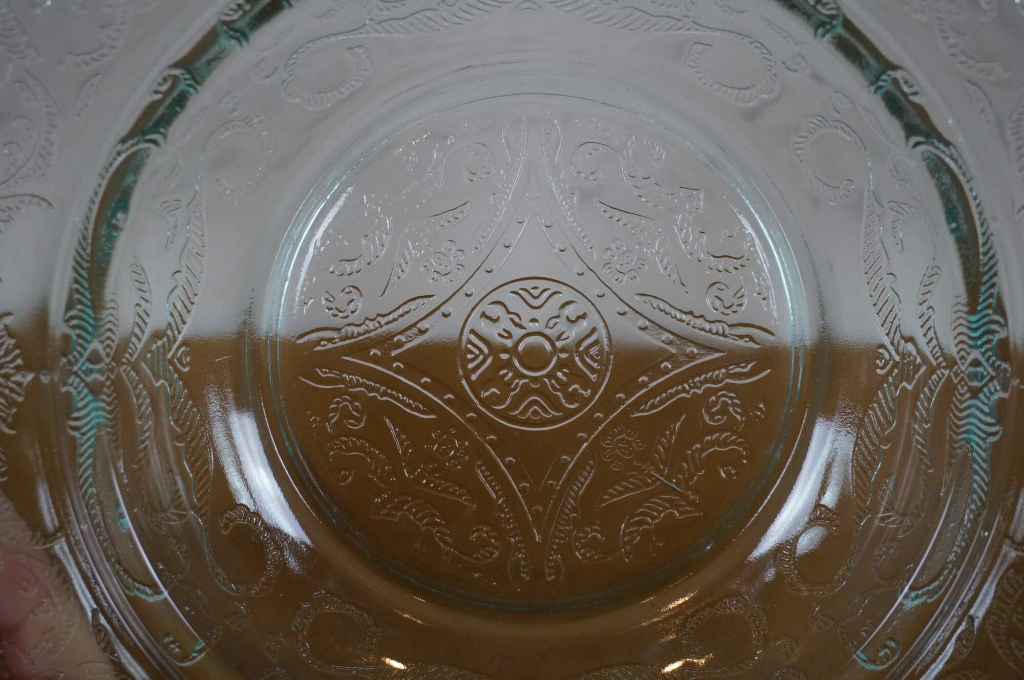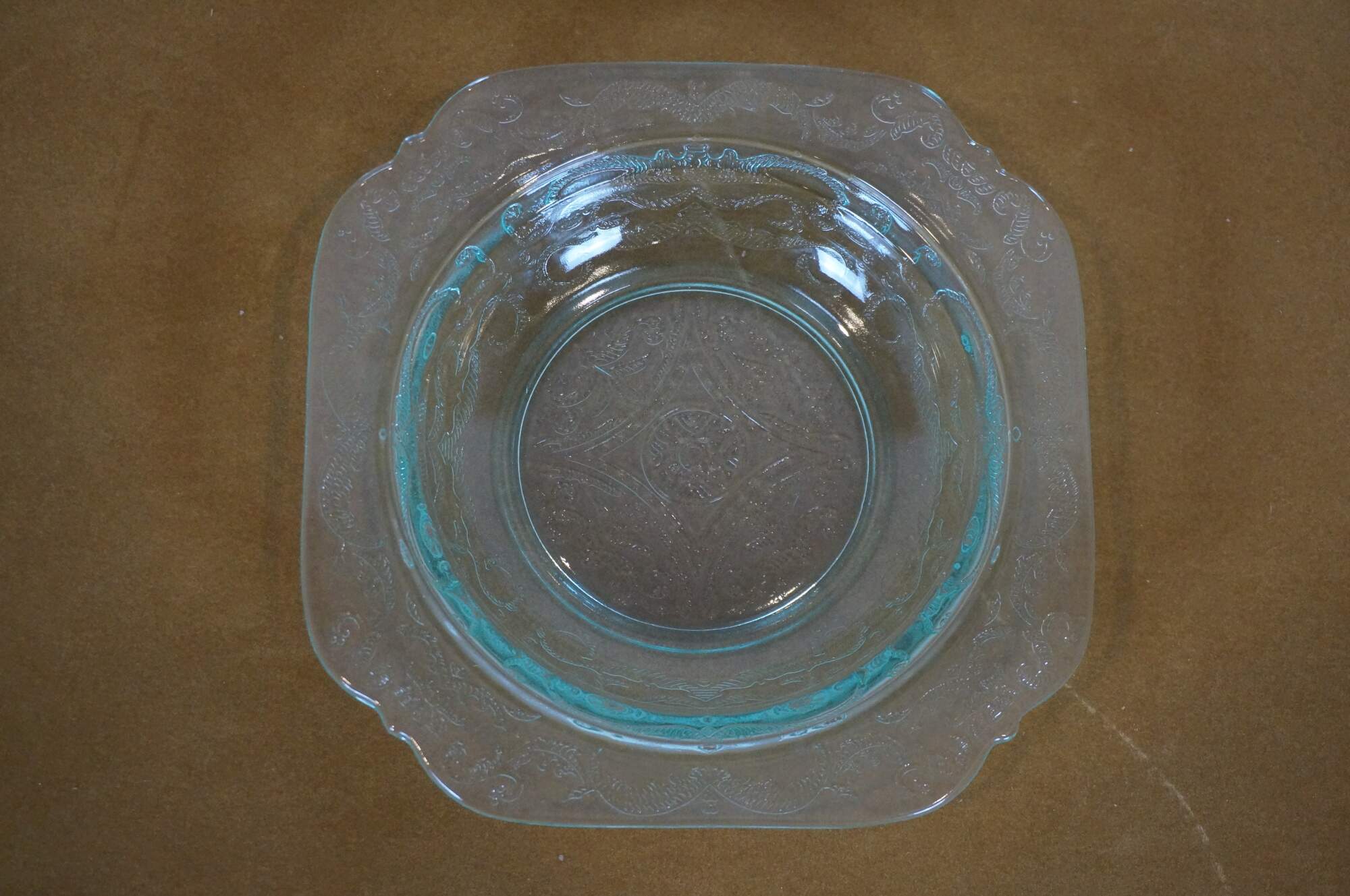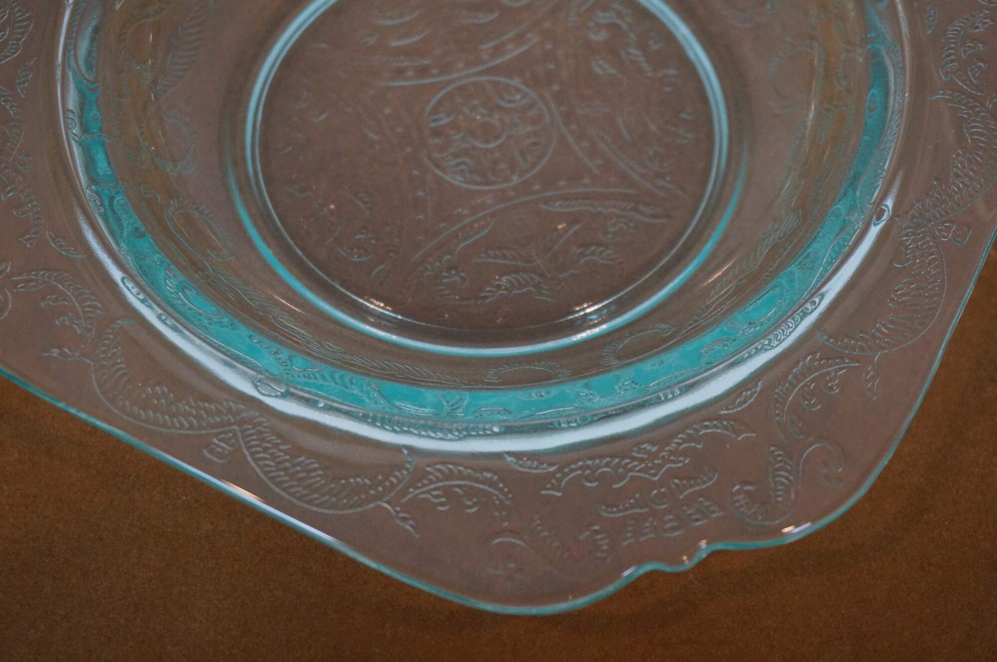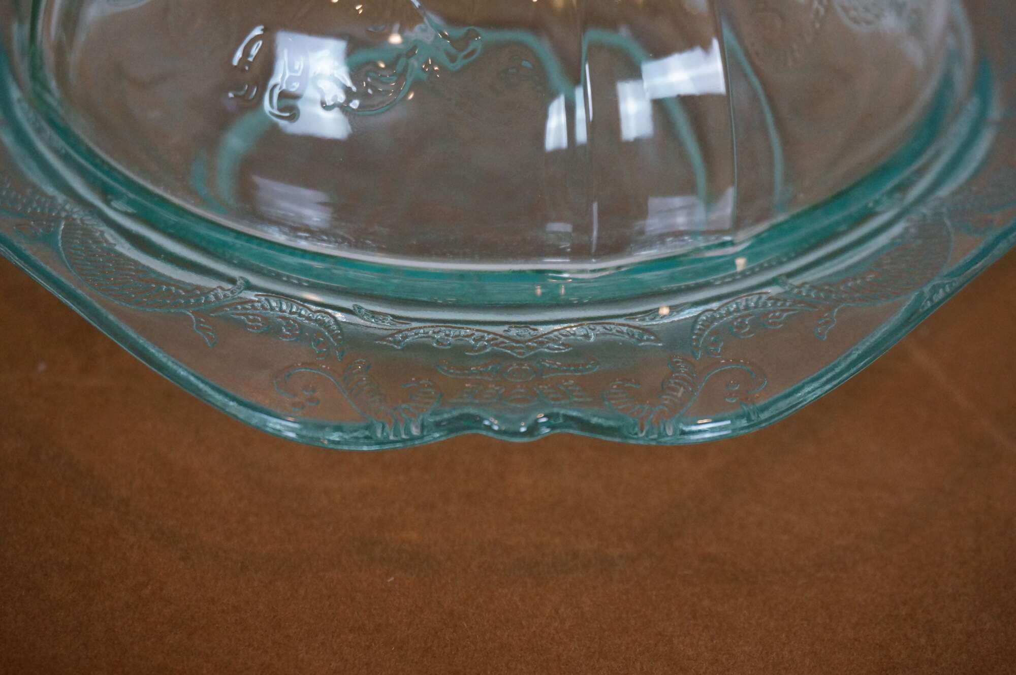 Vintage Indiana Glass Co Recollection aqua / sea green / teal reproduction Madrid Federal Depression glass-covered butter or cheese dish plate.