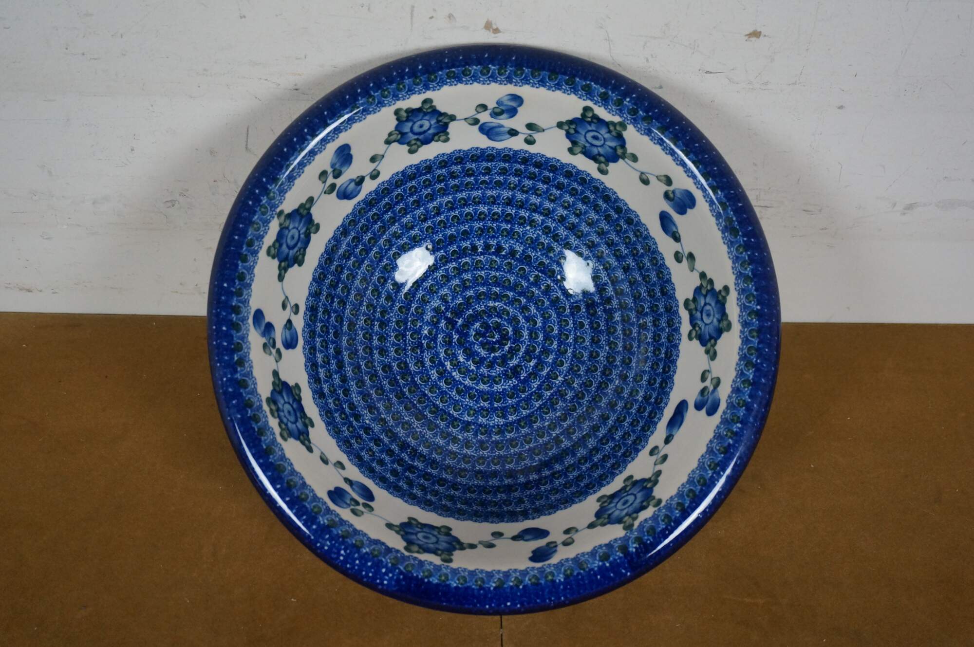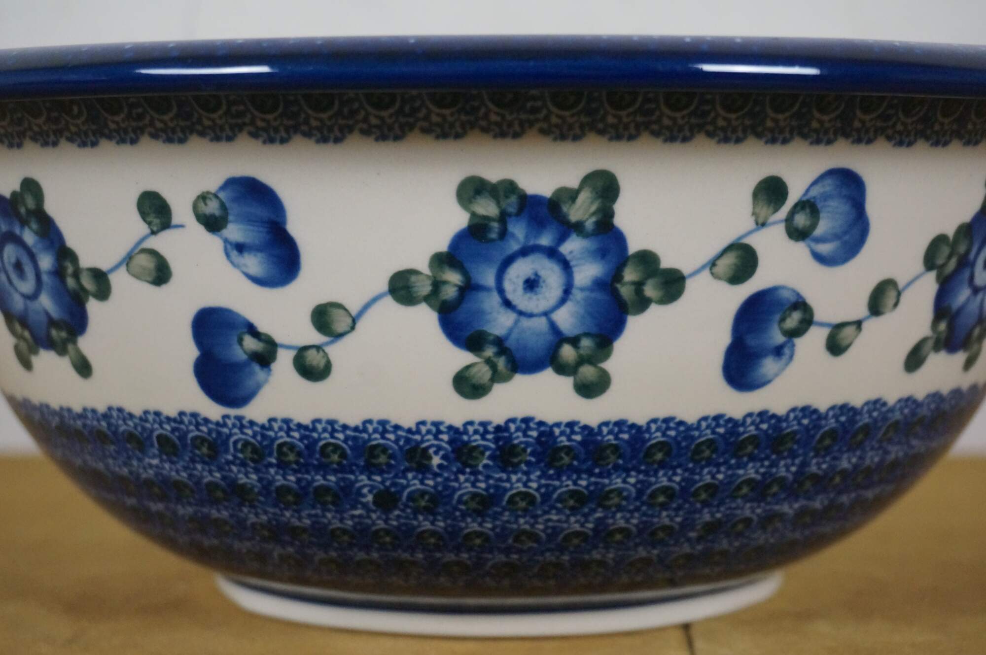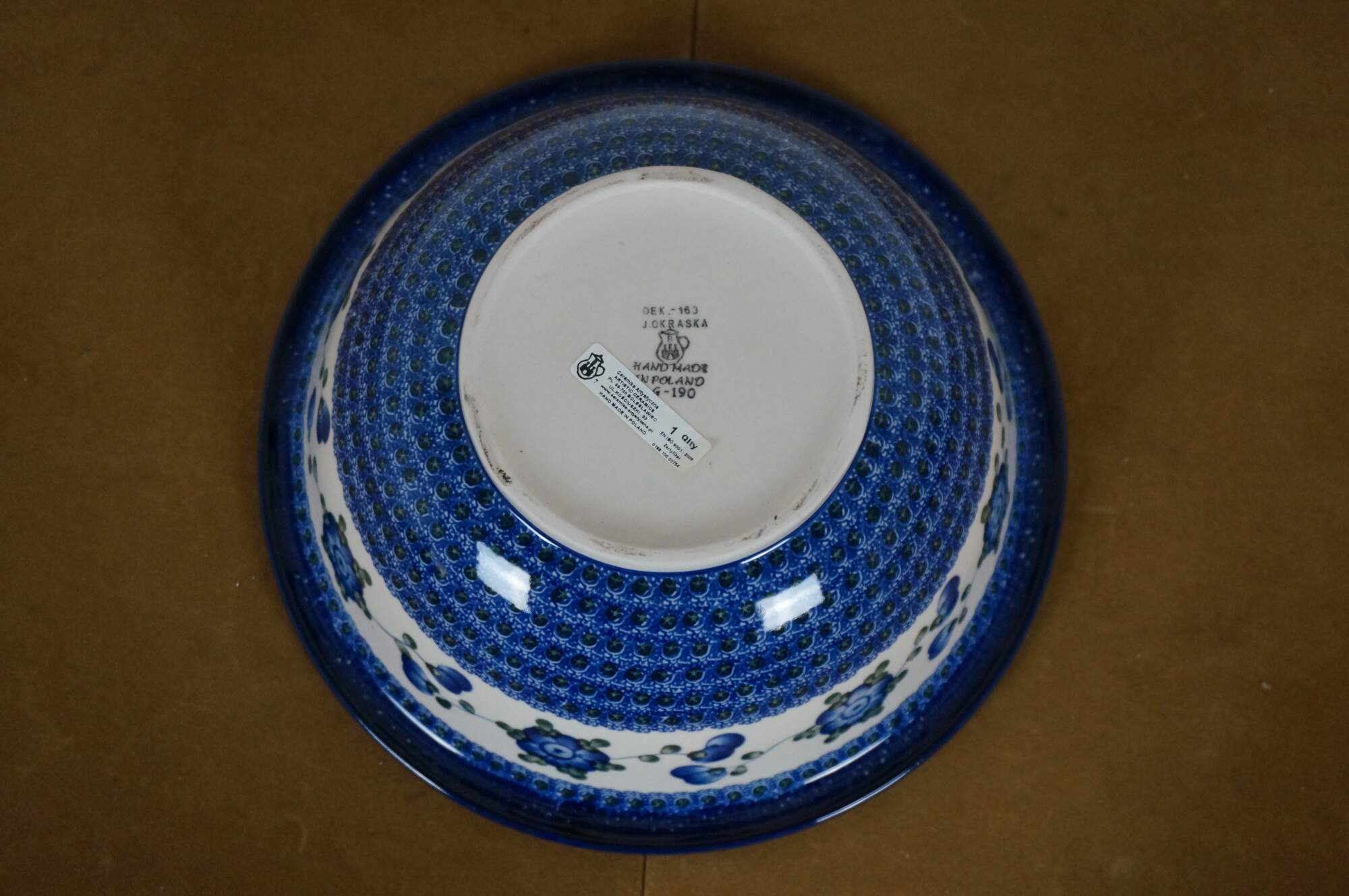Vintage Ceramika Artystyczna pottery centerpiece serving bowl. B;ue Poppies, DEK 163, J. Okraska, 190.