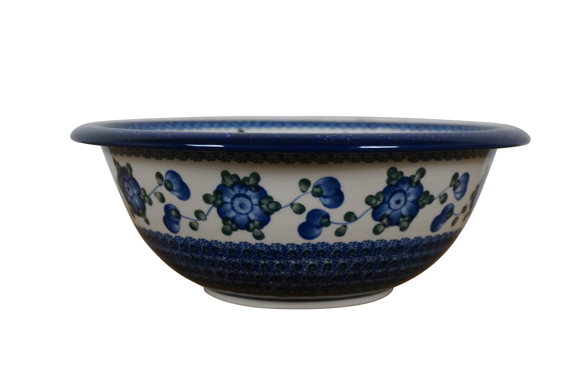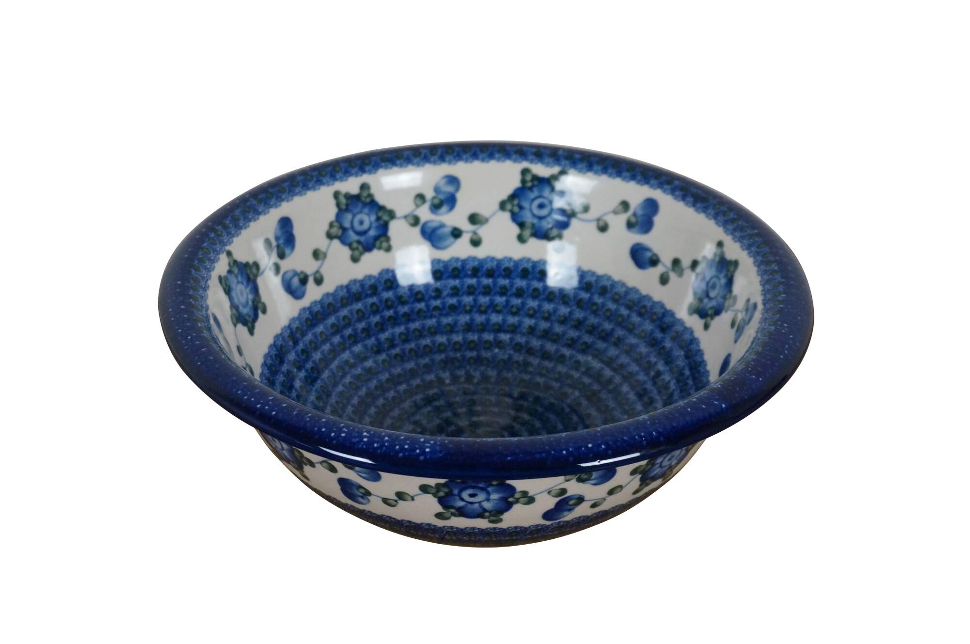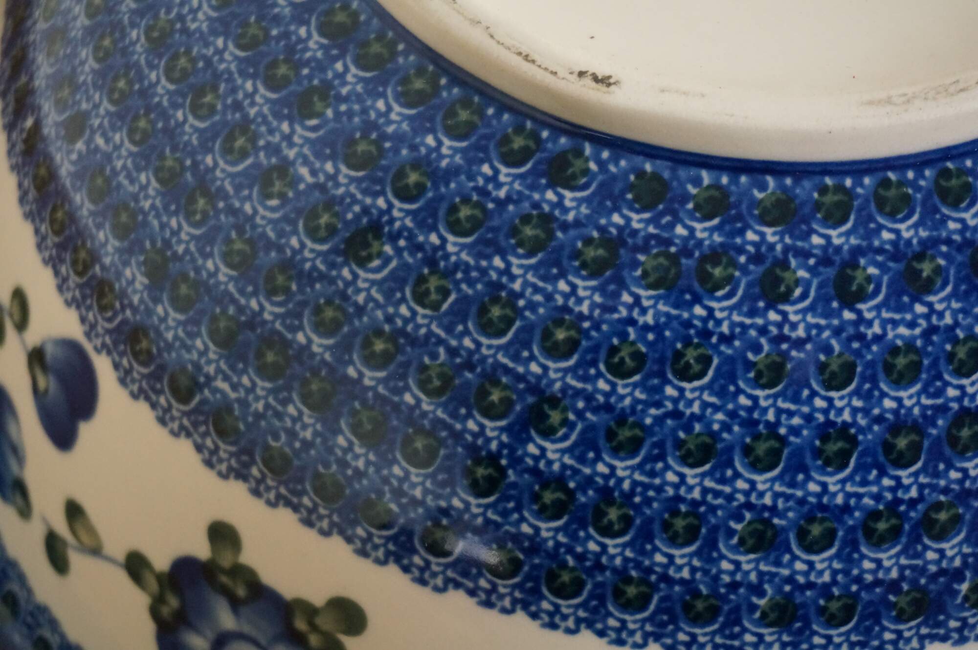 Vintage Ceramika Artystyczna pottery centerpiece serving bowl. B;ue Poppies, DEK 163, J. Okraska, 190.