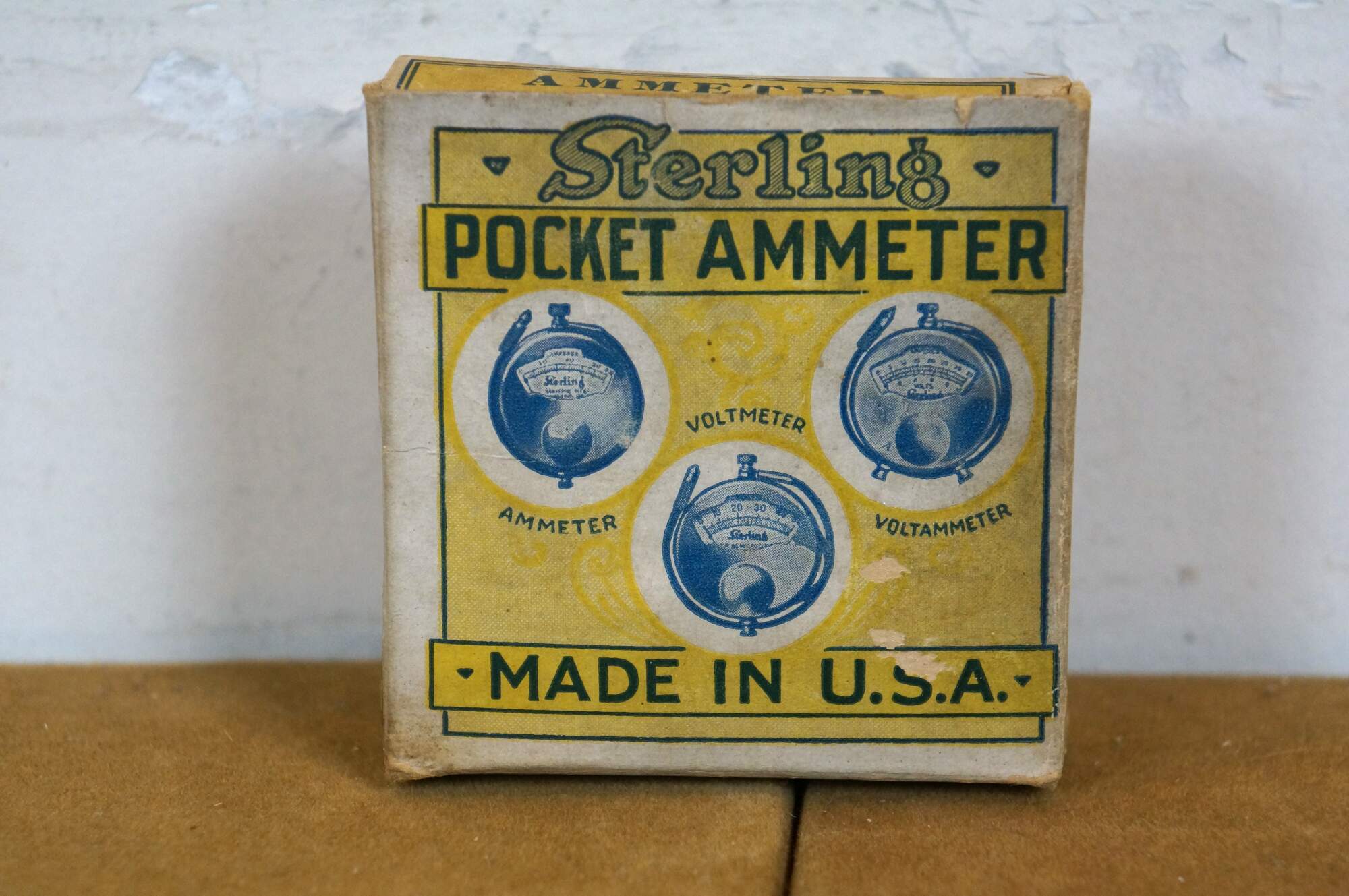 Circa 1910s Sterling No. 24 Pocket Ammeter - 0-35 Amps - produced by The Sterling Mfg. Co. - Cleveland, OH. Includes original box.