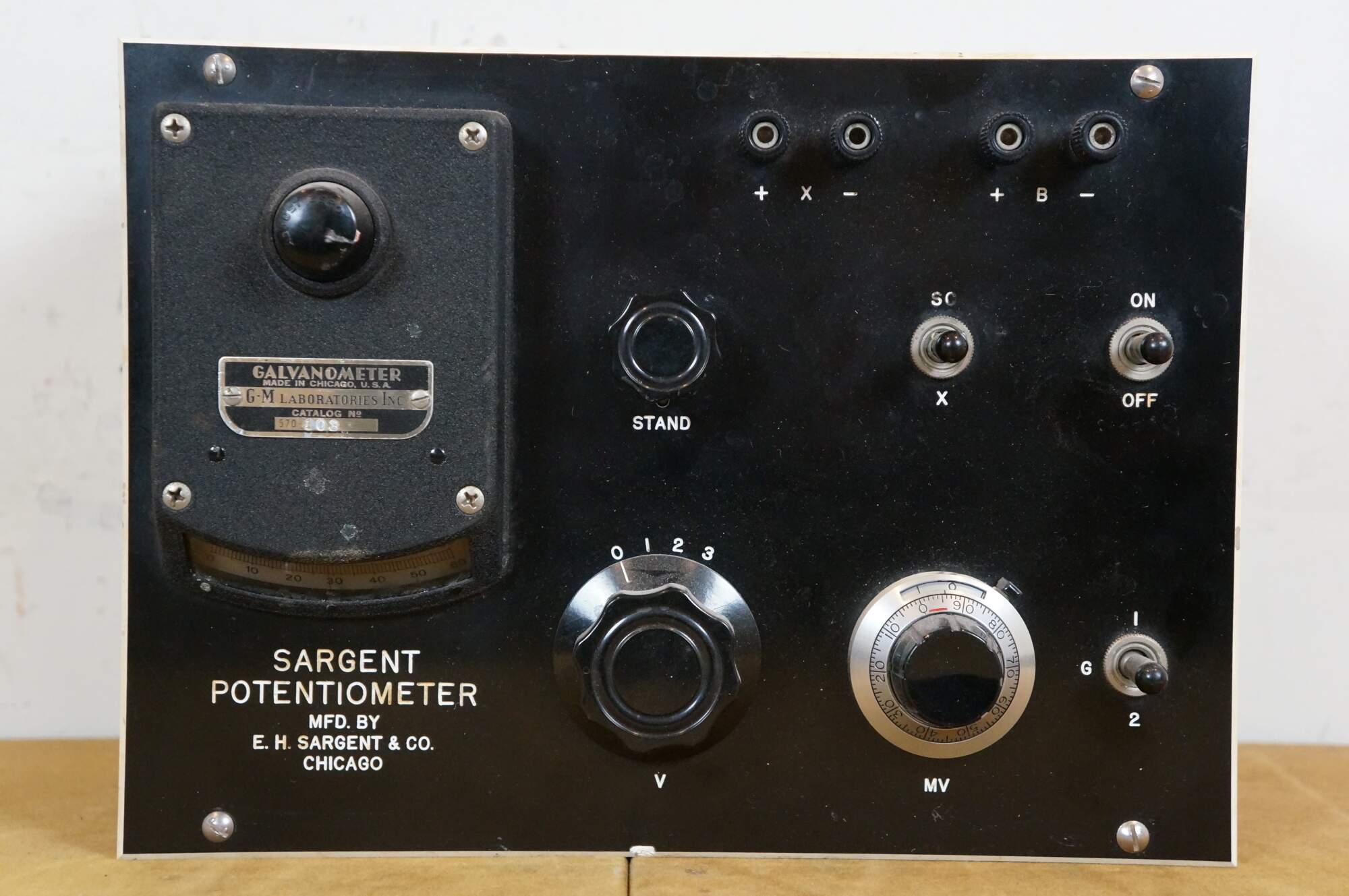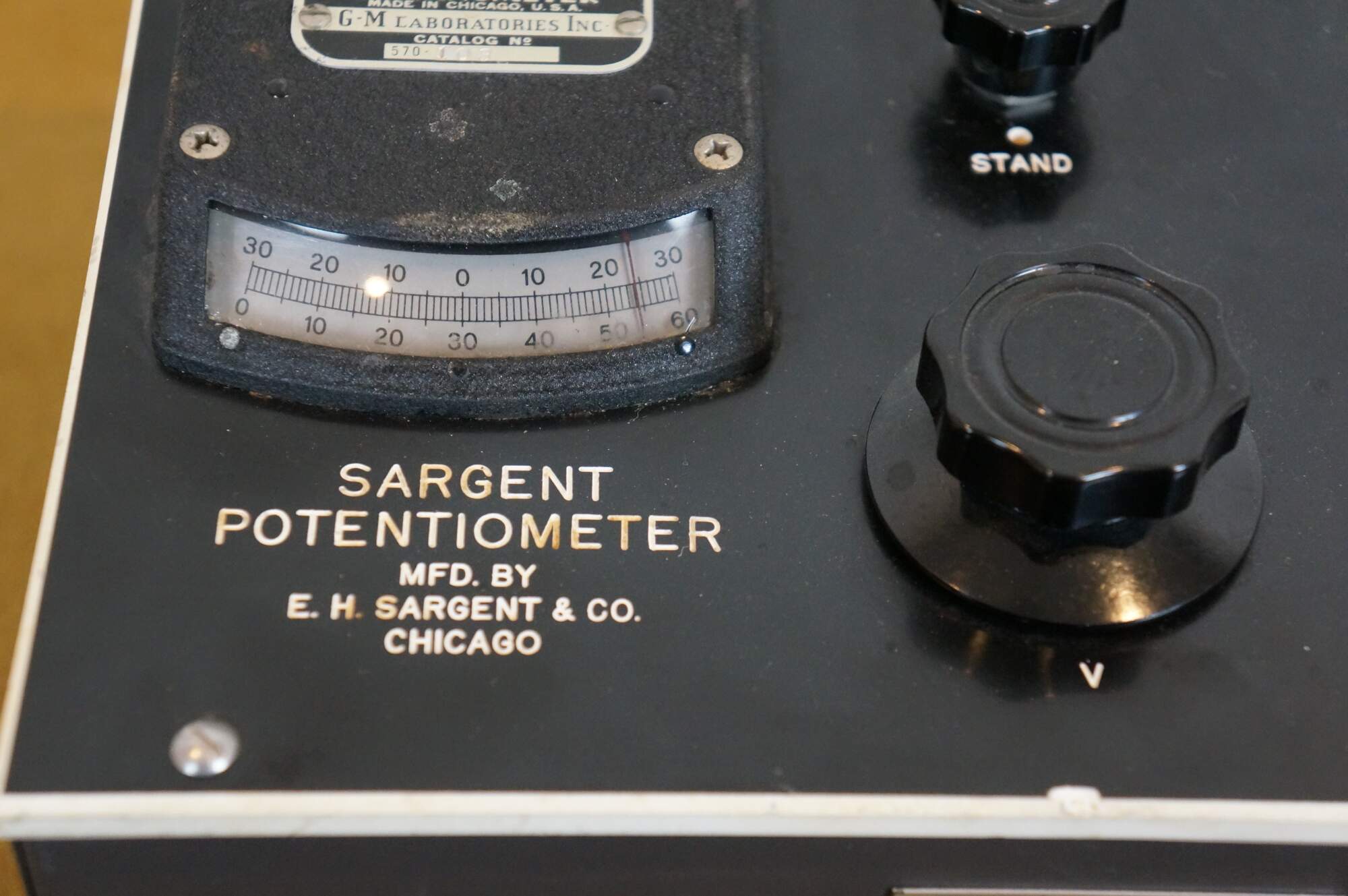 Vintage Sargent Potentiometer / Galvanometer. Manufactured by E.H. Sargent & Co, Chicago - Catalog S-30260 - Serial 3366006 - Made in USA. Galvanometer - Made in Chicago, USA - G-M Laboratories Inc - Catalog No 570-103. Metal case with Bakelite knobs.