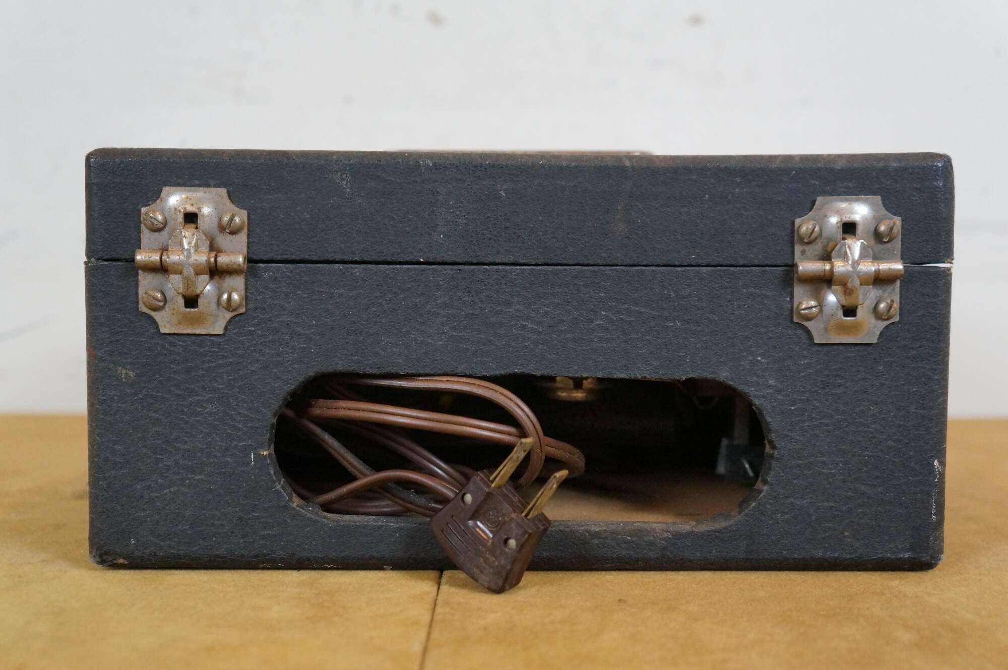 Early to mid 20th century Instructograph / Morse code training machine. Housed in bonded leather case with two prong power cord.