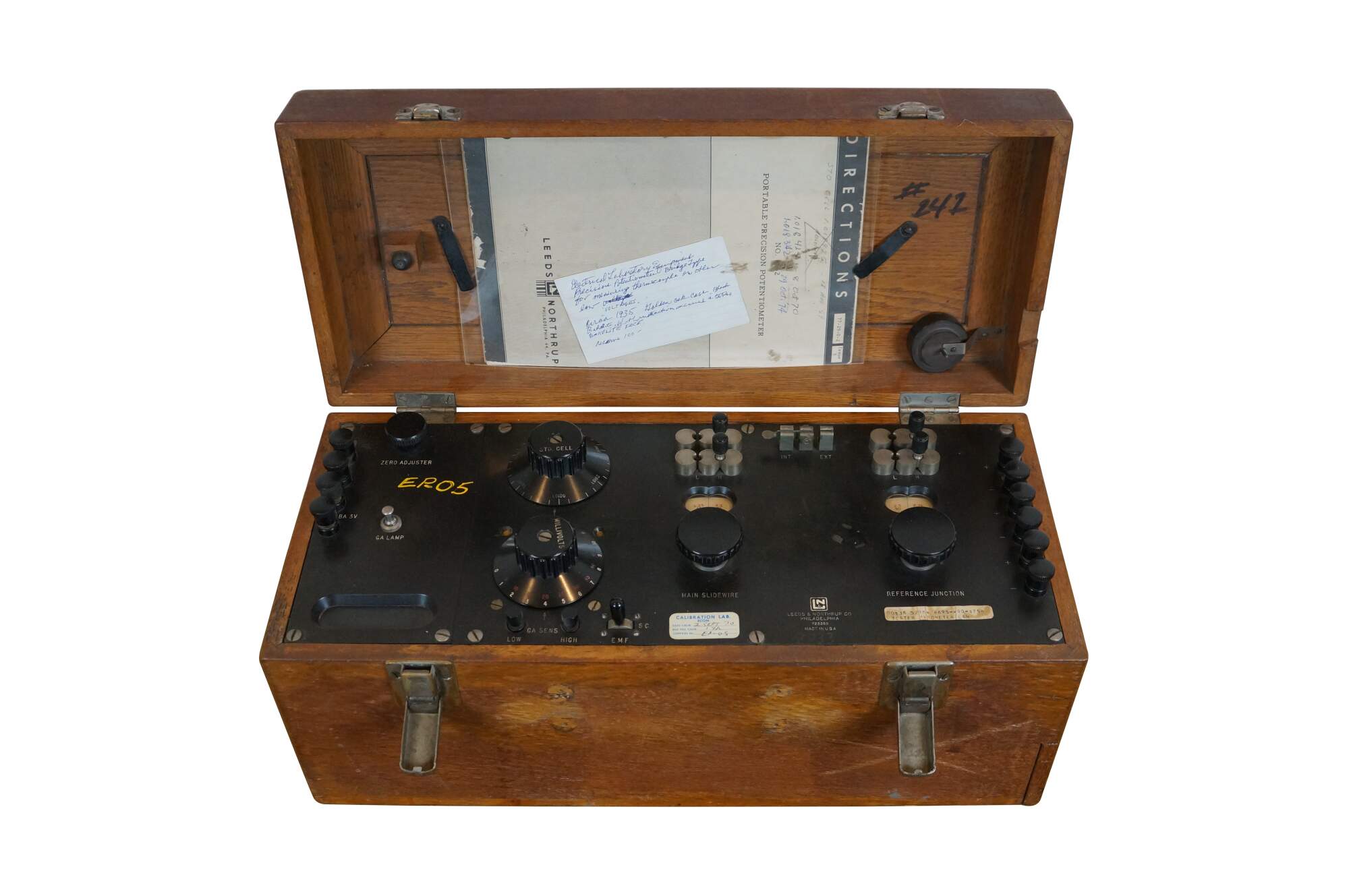 Vintage 20th century Leeds & Northrup Portable Precision Potentiometer - Leeds & Northrup Co, Philadelphia, PA - 723355 - Made in USA. Housed in oak case with Excelsior latches. Includes instruction book.