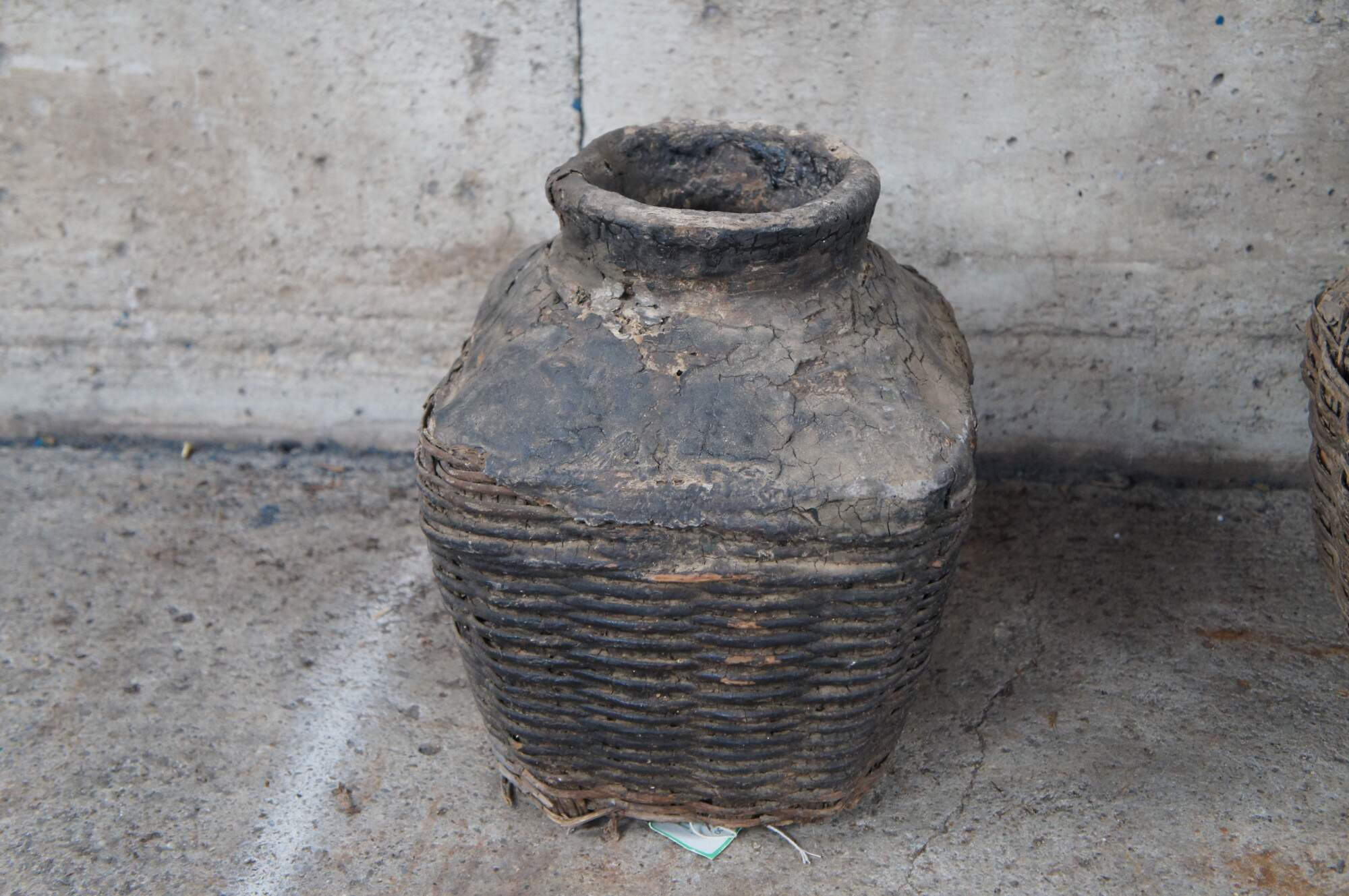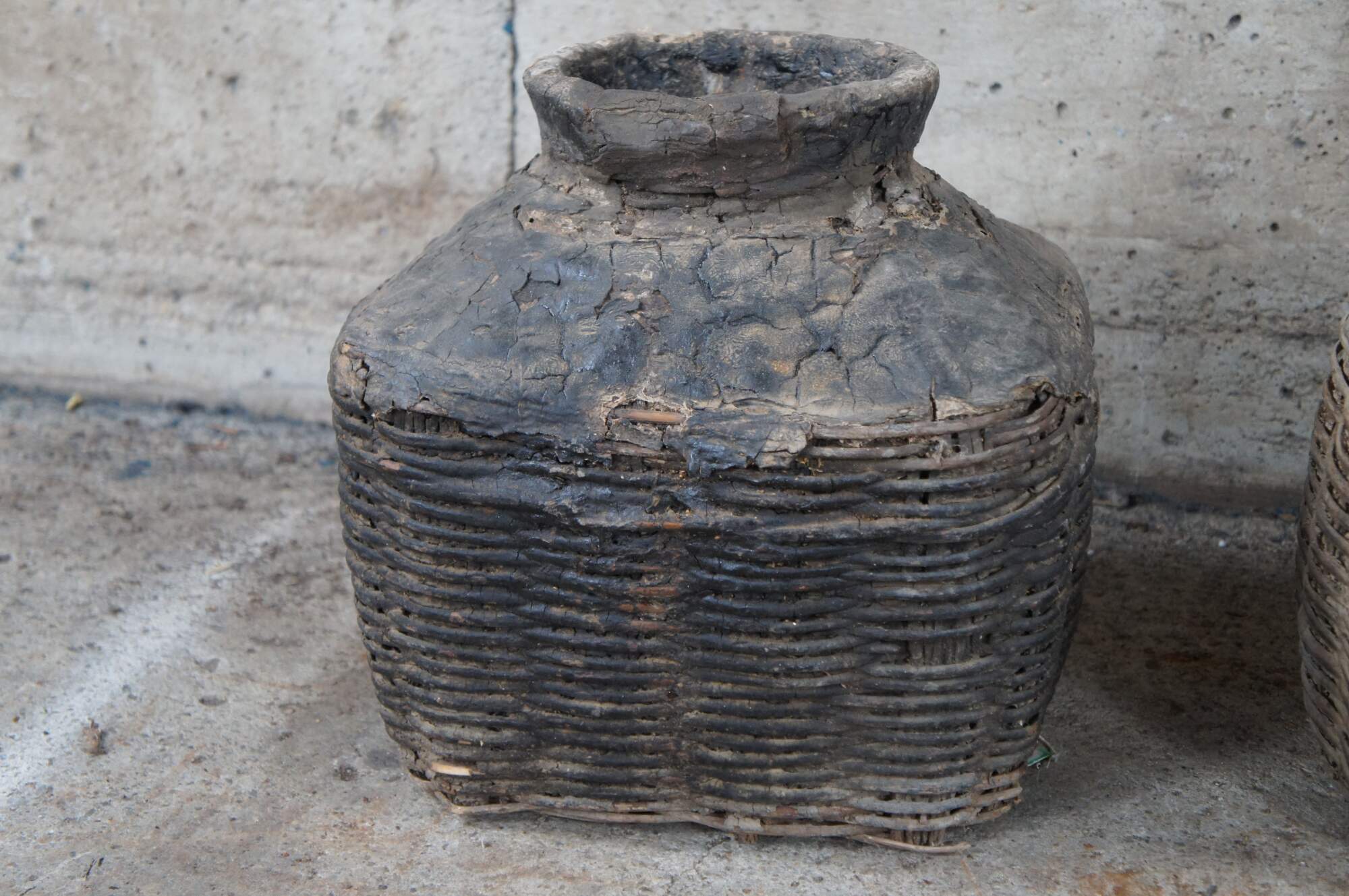 Three early 20th-century Chinese Shanxi Willow oil container / food storage vessel / jar / baskets. Beautifully woven with natural patina from years of use. Each basket differs slightly in characteristics and measurements - some richer / darker / lighter in color.