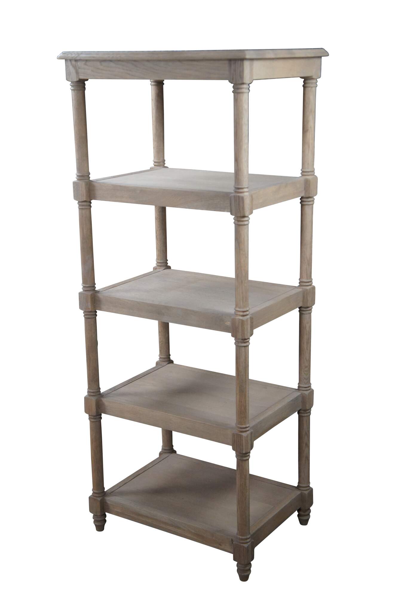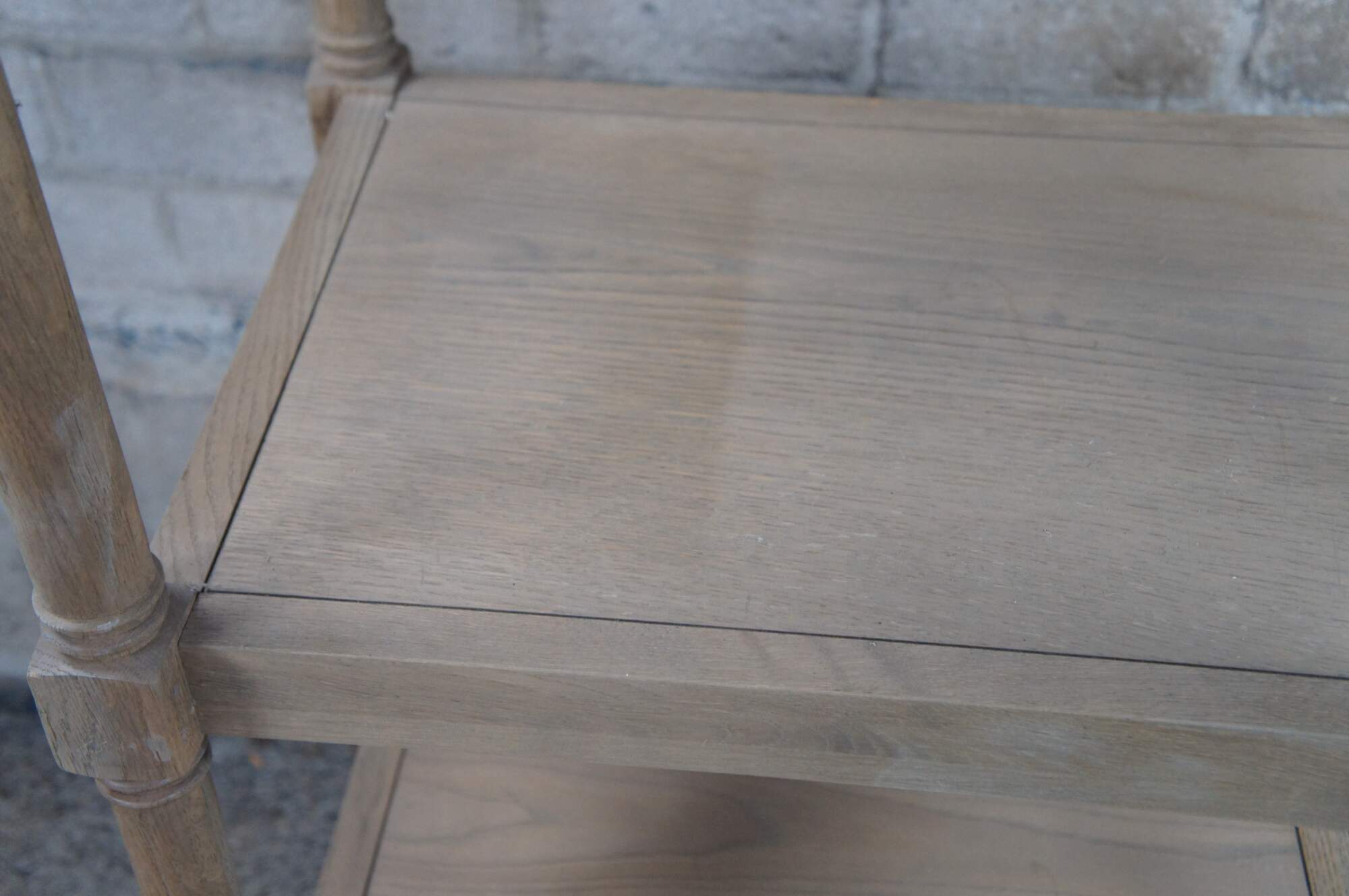 Vintage Restoration Hardware etagere / linen tower / open storage shelving stand / bookcase. Made of weathered oak featuring tall form with five tiered shelves and turned supports.