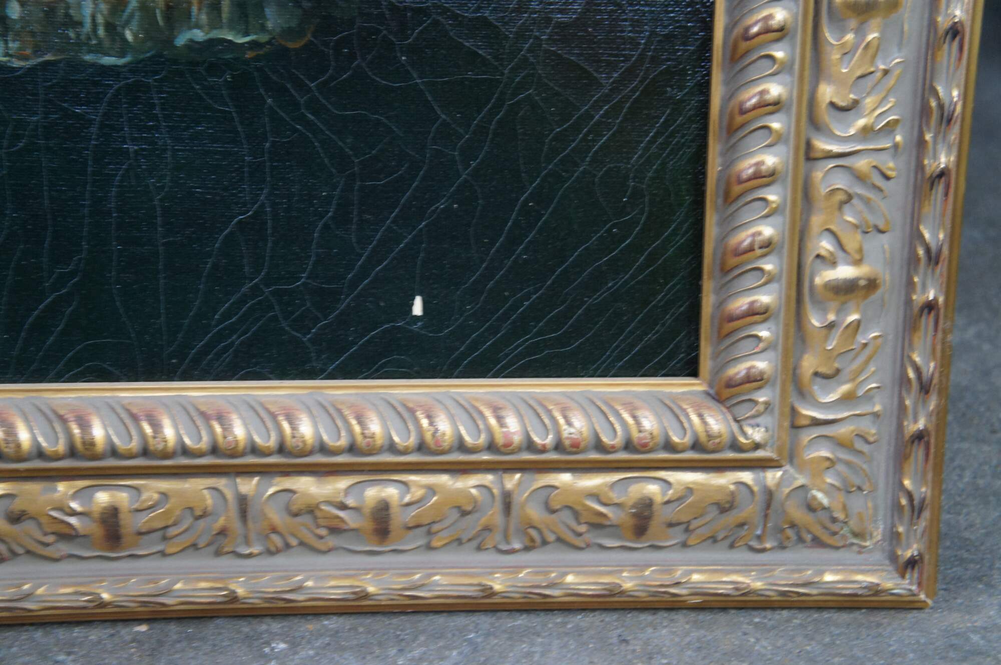 Fair condition, wear and distressing, craquelure to canvas, some paint loss.