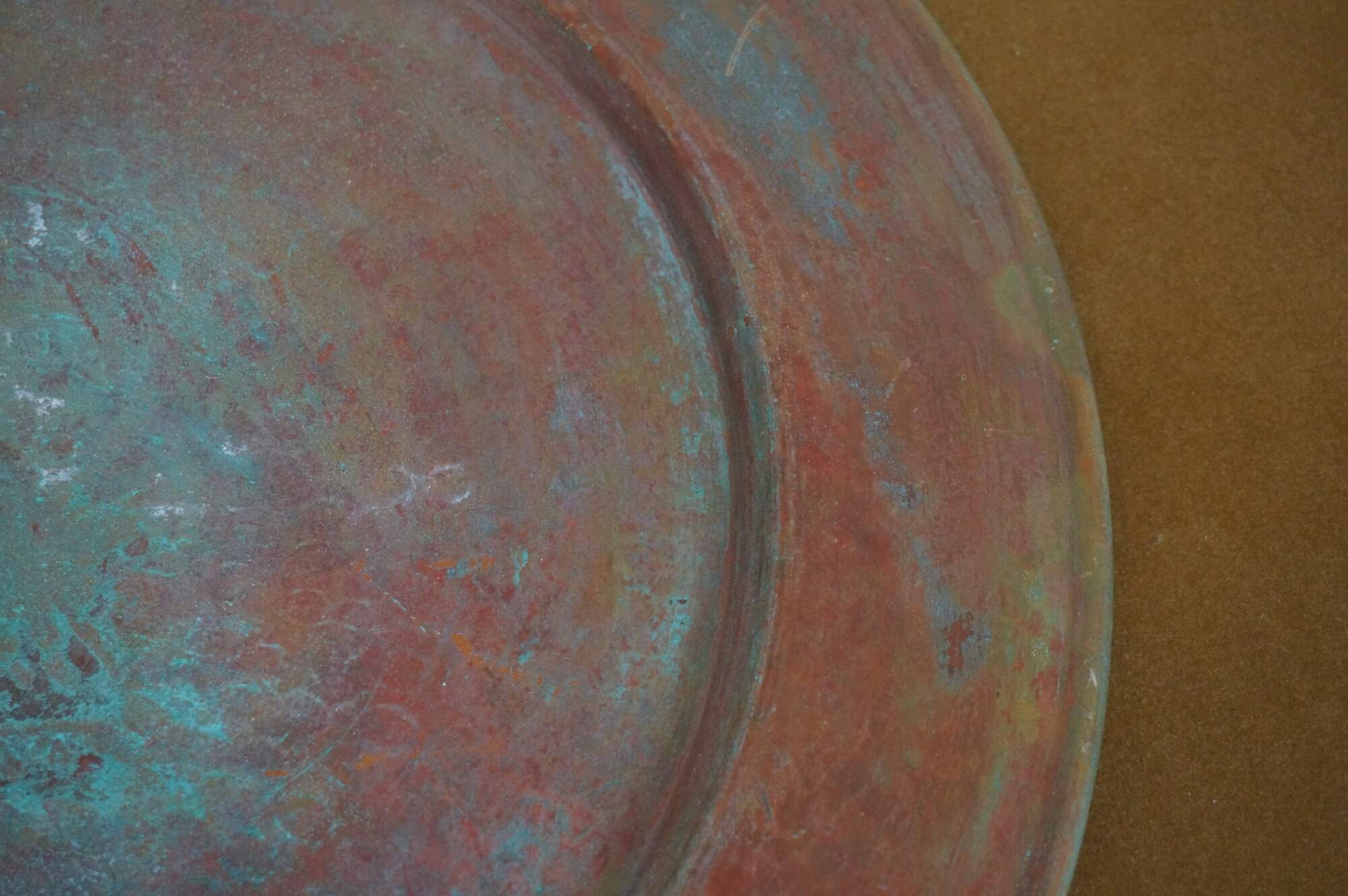 Vintage 20th century large, round, hammered copper charger / serving plate. Made in Turkey.