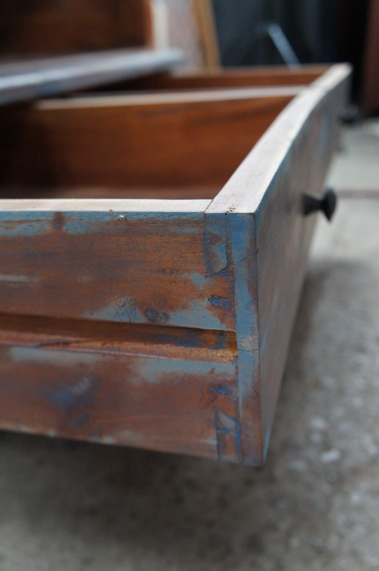 Good vintage condition, wear and distressing commensurate with age and use, missing doors, paint wear, fading, scuffing, damaged bottom left corner