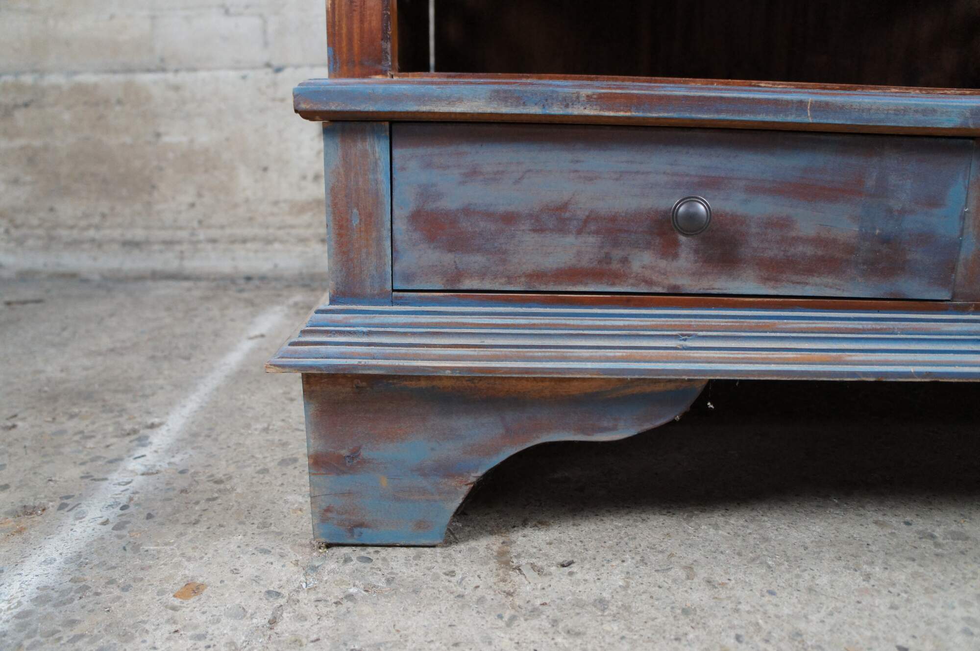 Good vintage condition, wear and distressing commensurate with age and use, missing doors, paint wear, fading, scuffing.