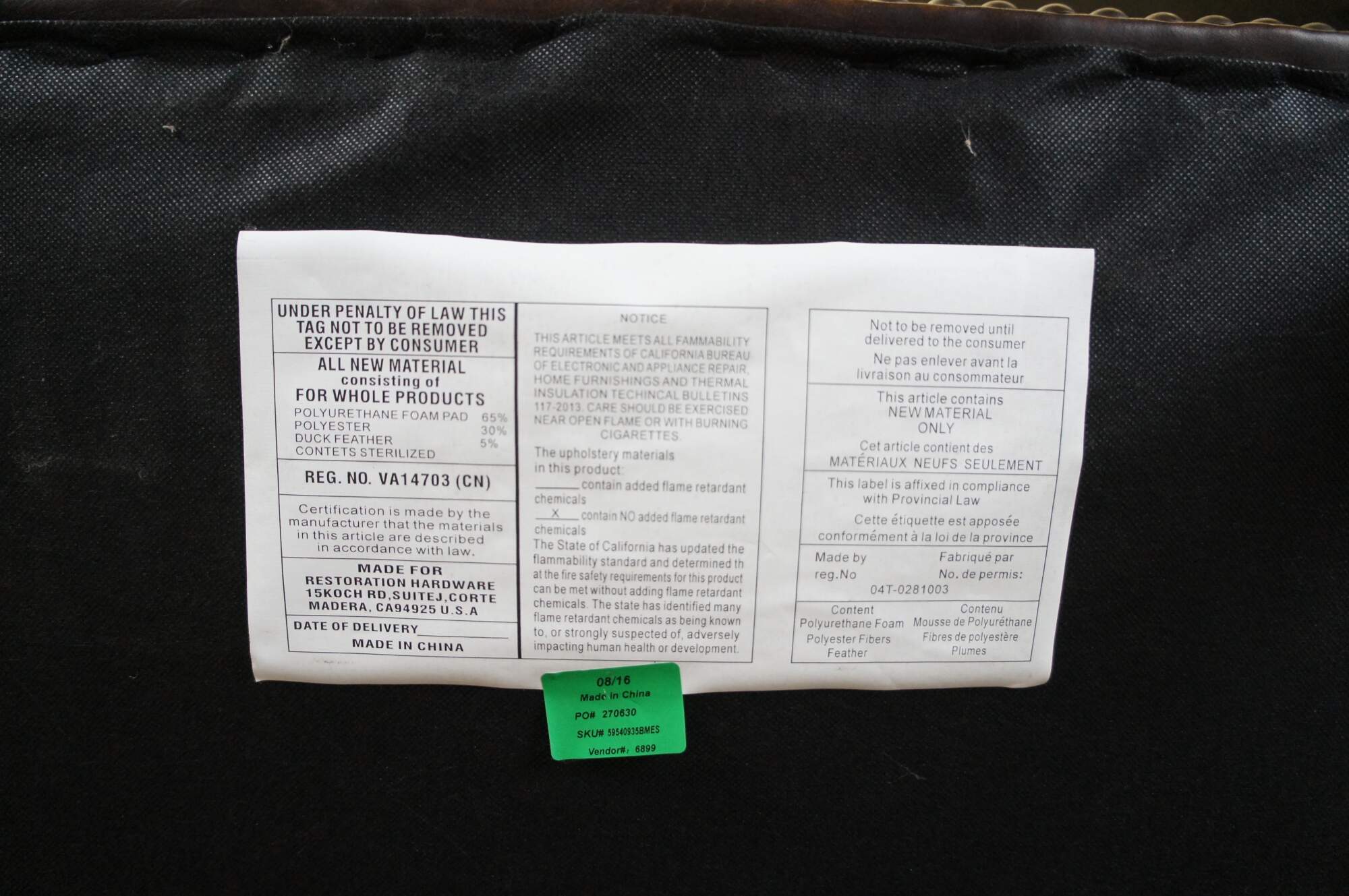 The seat cushion is padded with a down-feather fill (down and feather wrapped around a resilient foam core), while the coordinating back is all down and feathers. The seat cushion is backed in fabric that allows the leather to breathe.