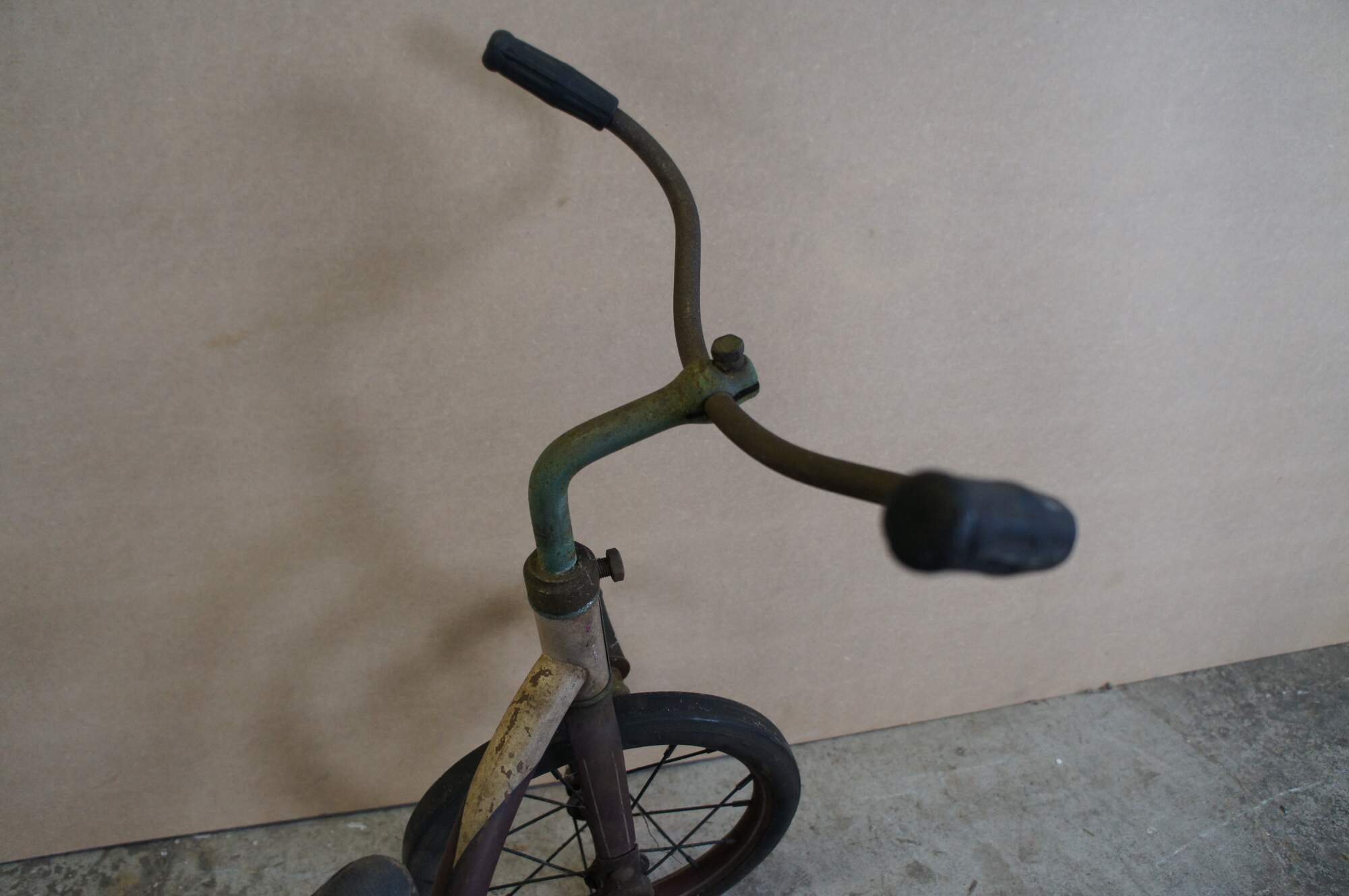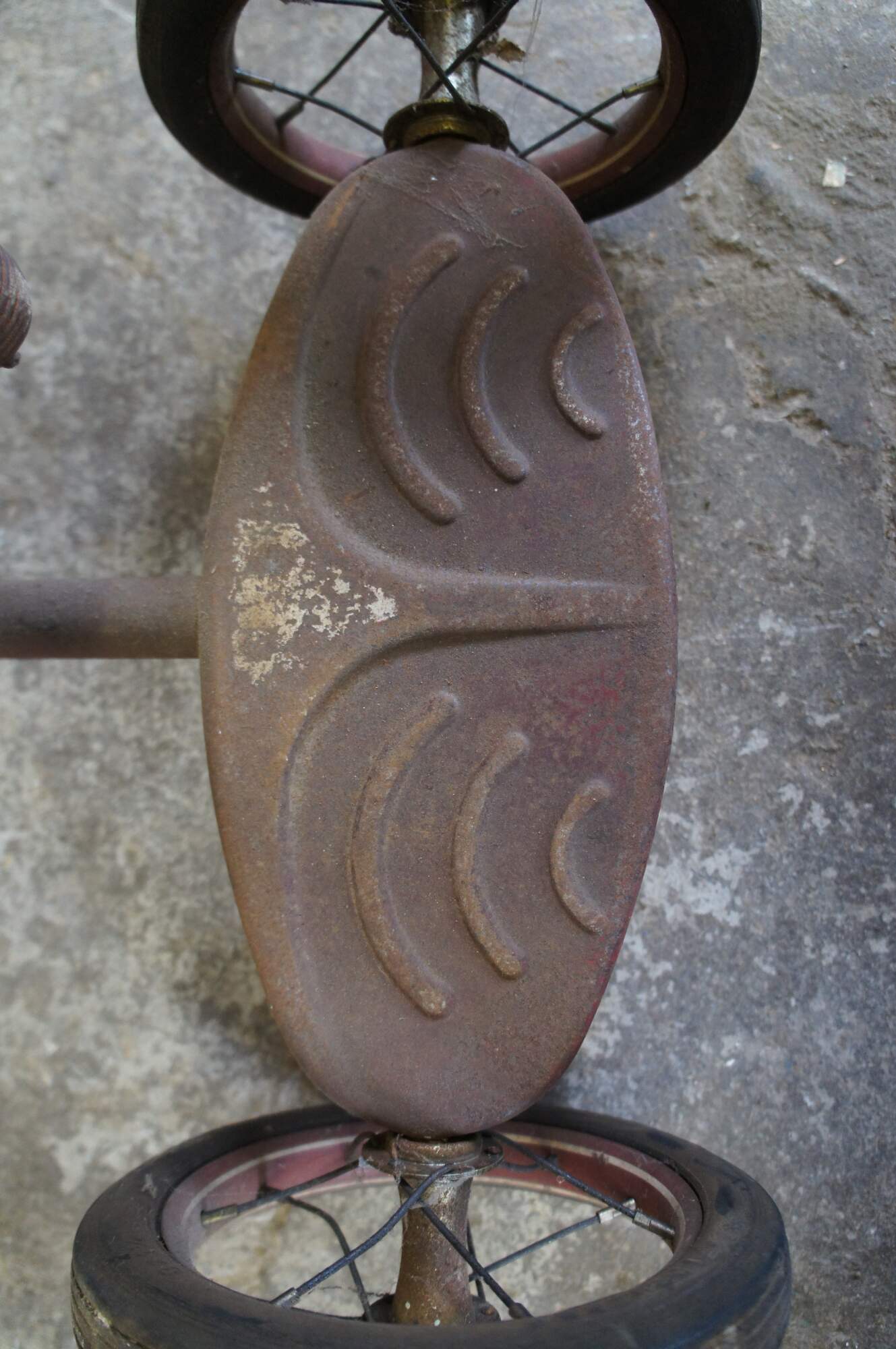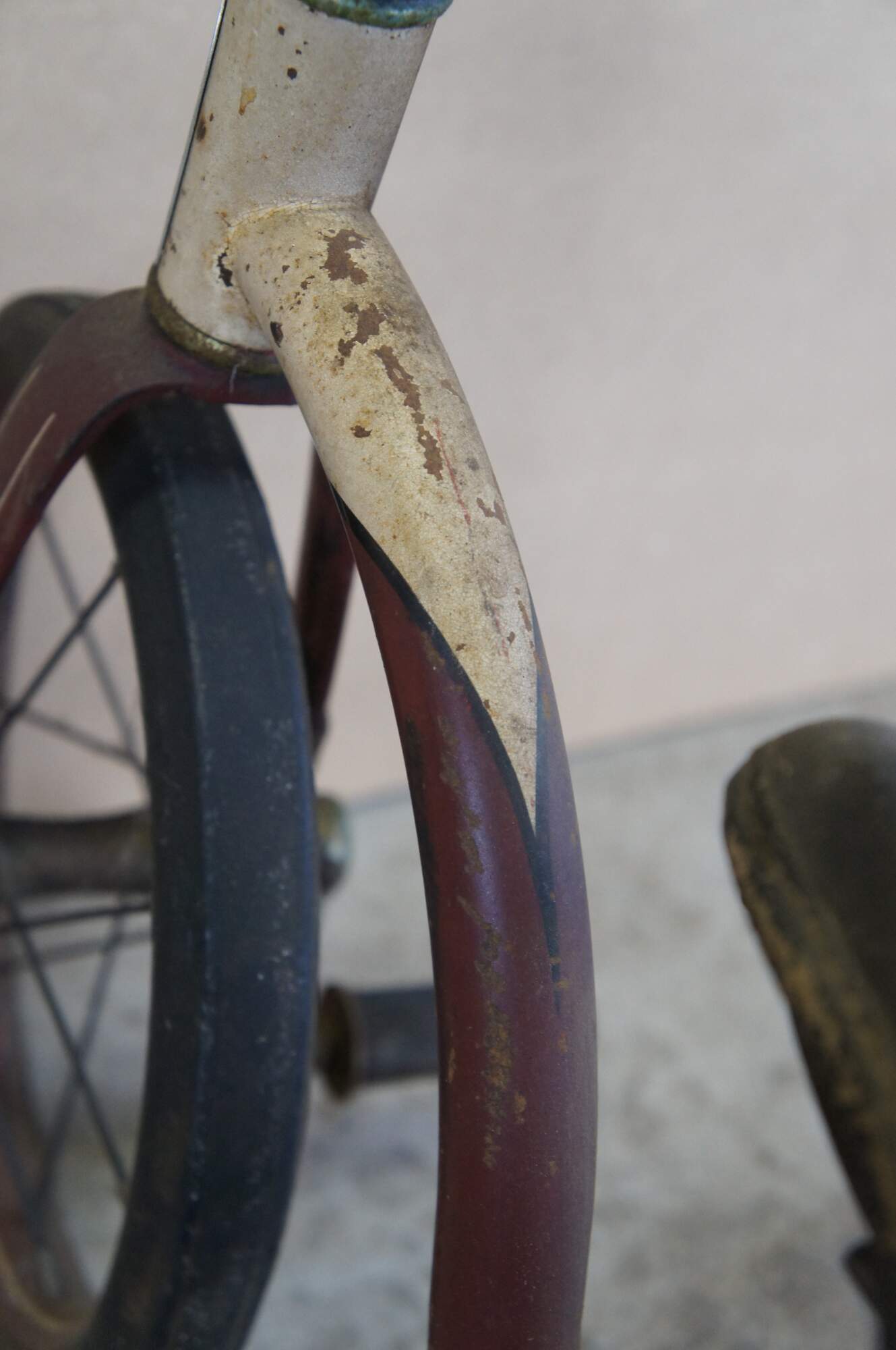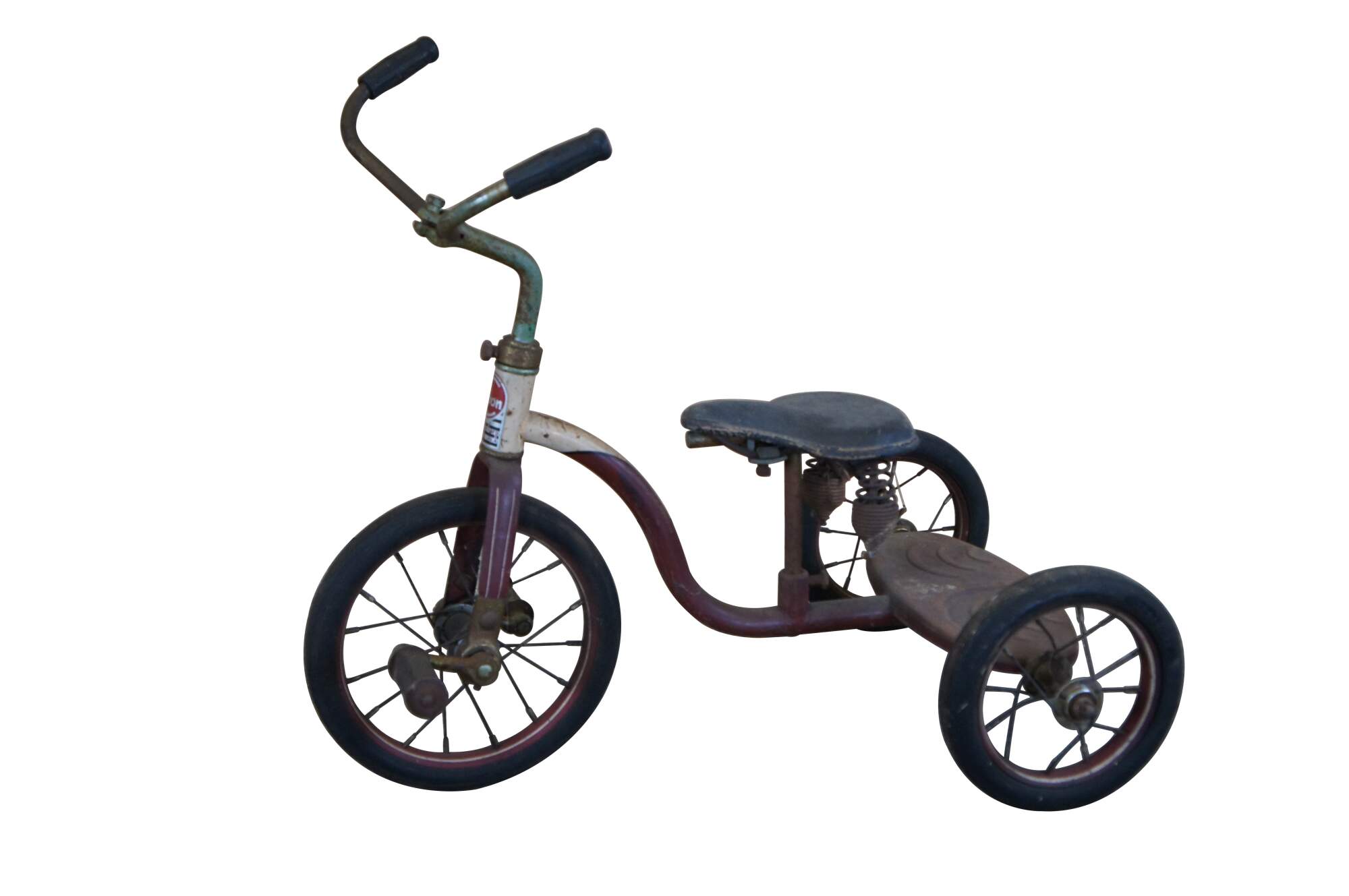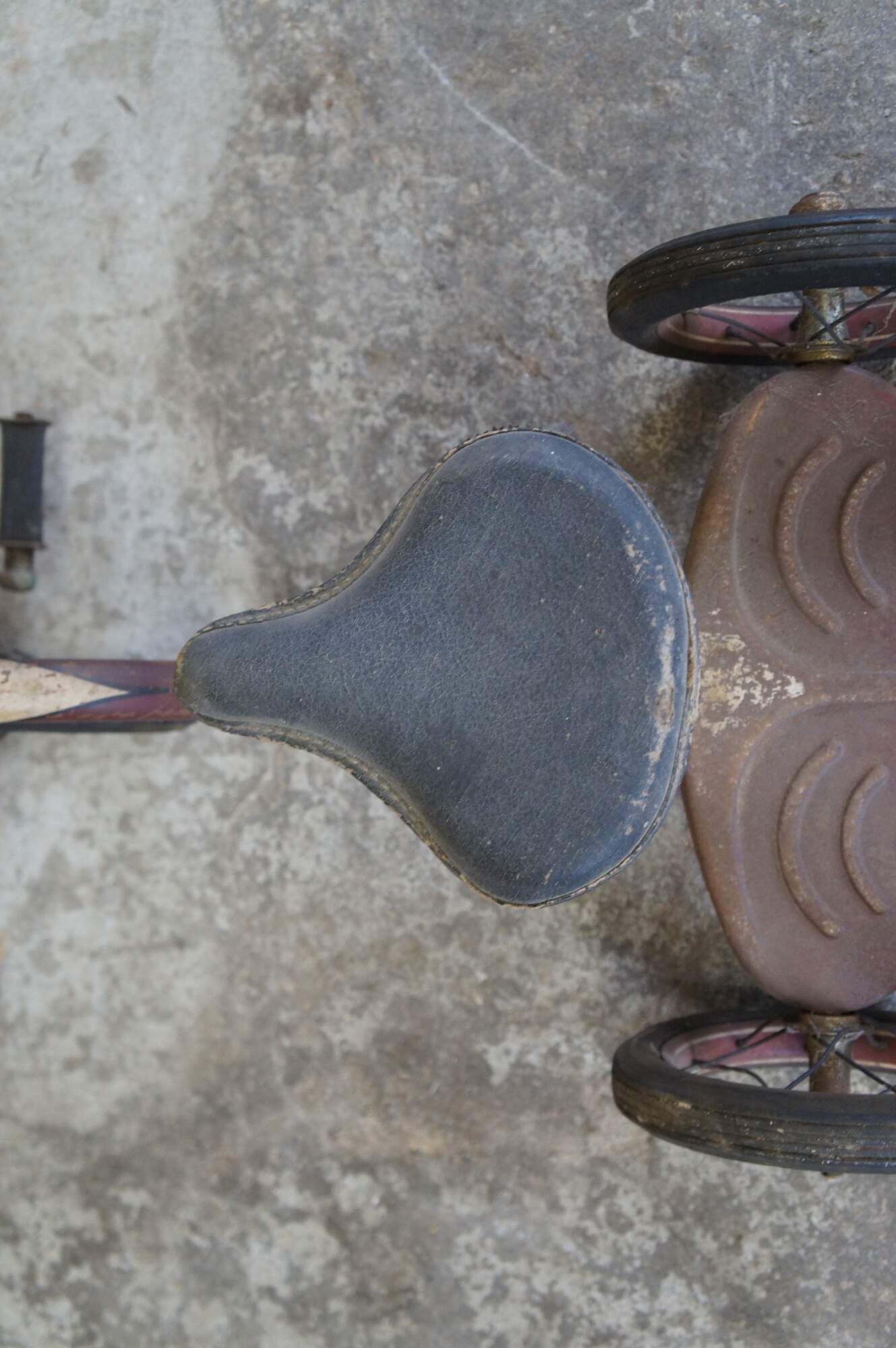 1940-50s Colson Tricycle Trike, Elyria, Ohio. Two-tone red and white with spring-loaded seat.