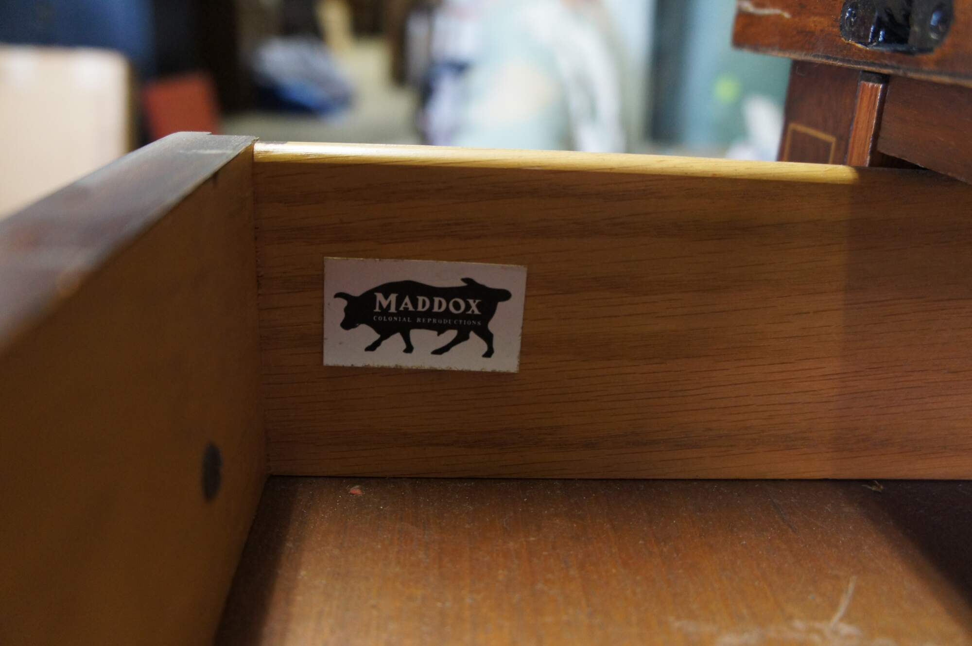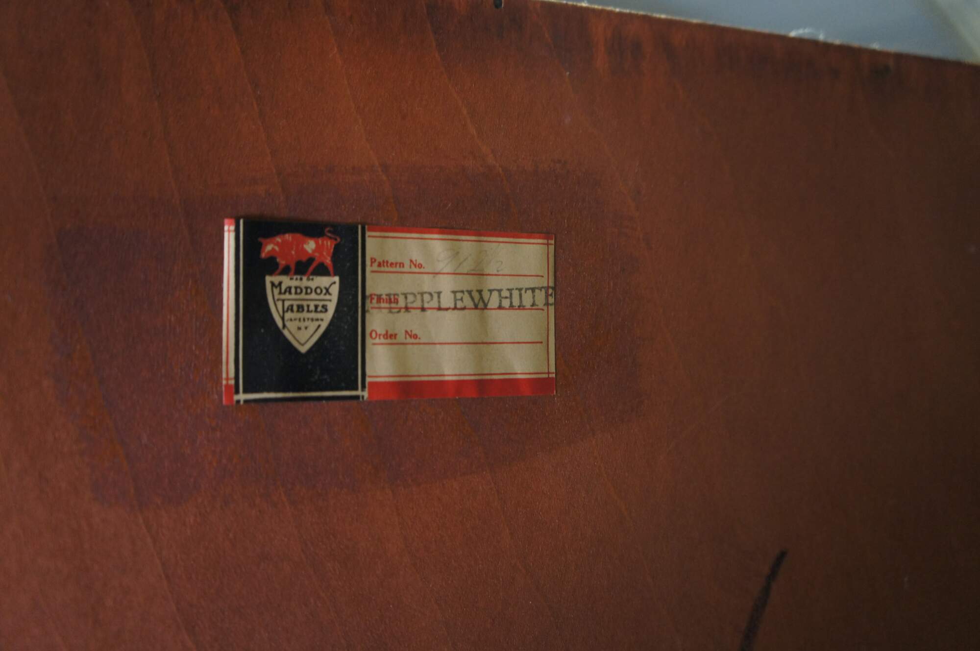 The Maddox Table Company began operation in 1898. It ceased operation around 1985. It was founded by William Maddox, son of an English immigrant, who invented a variety of furniture-making machines, which he sold to manufacturers throughout the United States.