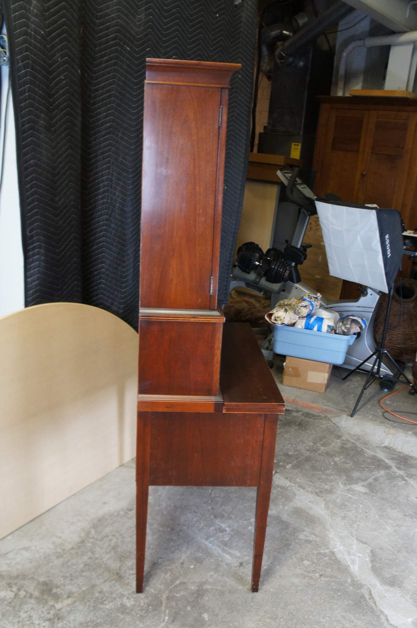 The desk is modeled after John and Thomas Seymour's Federal Period secretary that was designed in 1806-10 and currently housed at the Fine Arts Museum in Boston, MA.