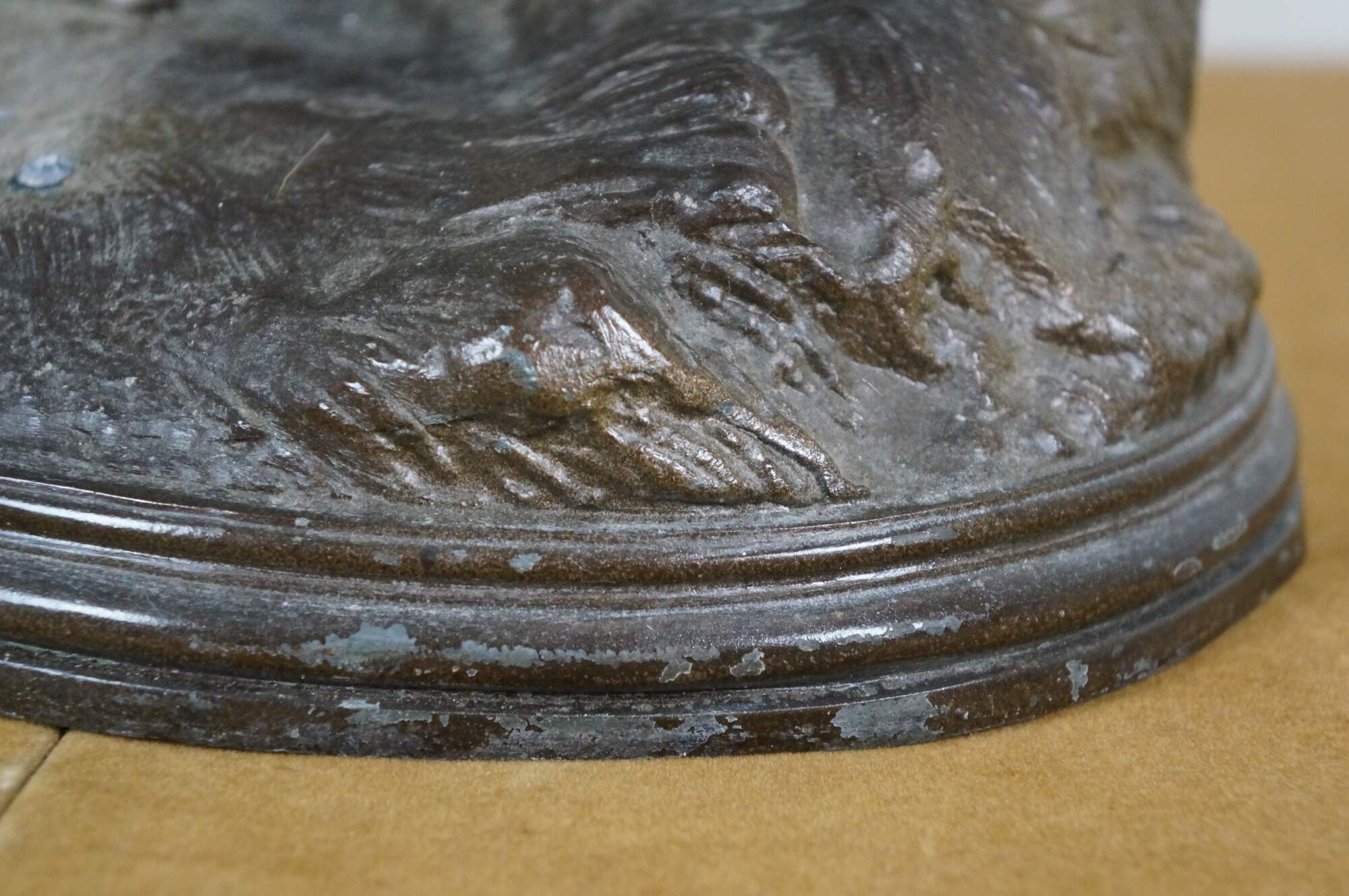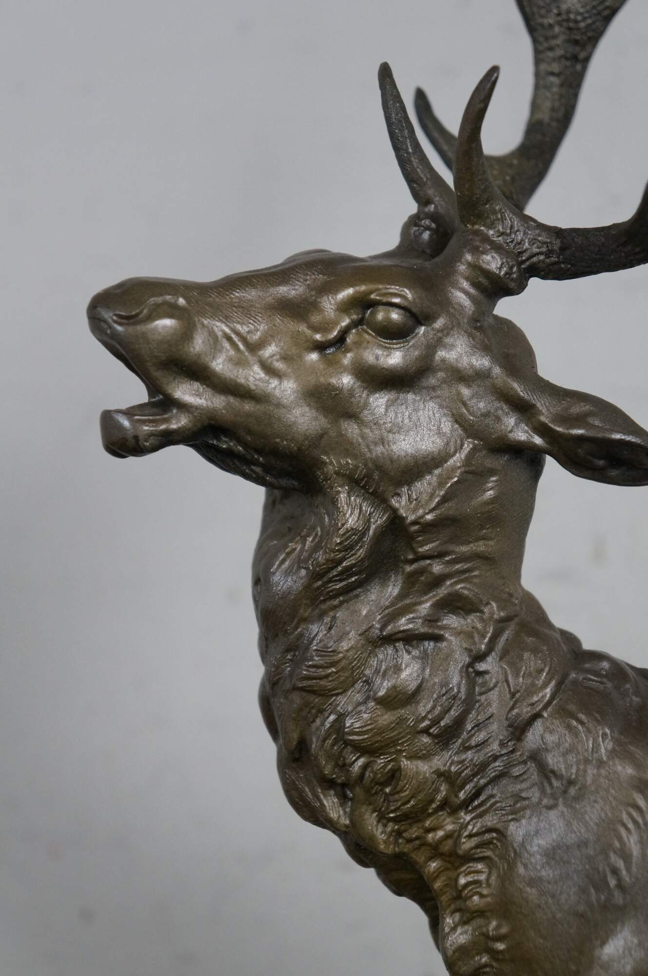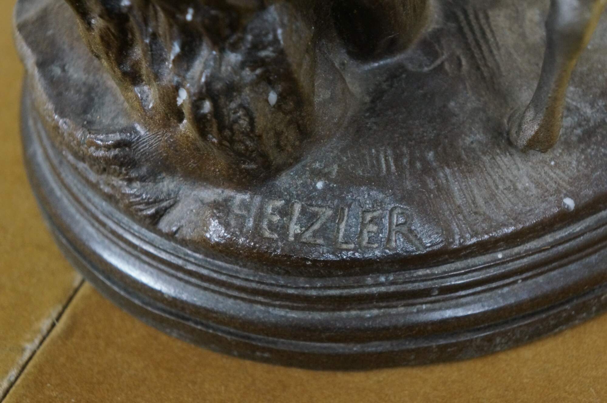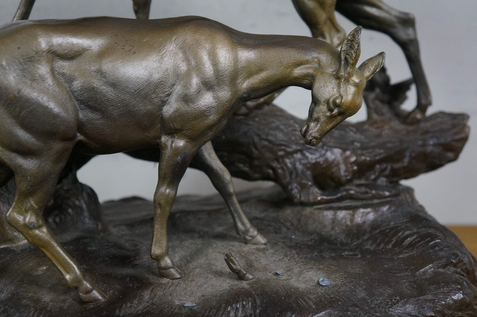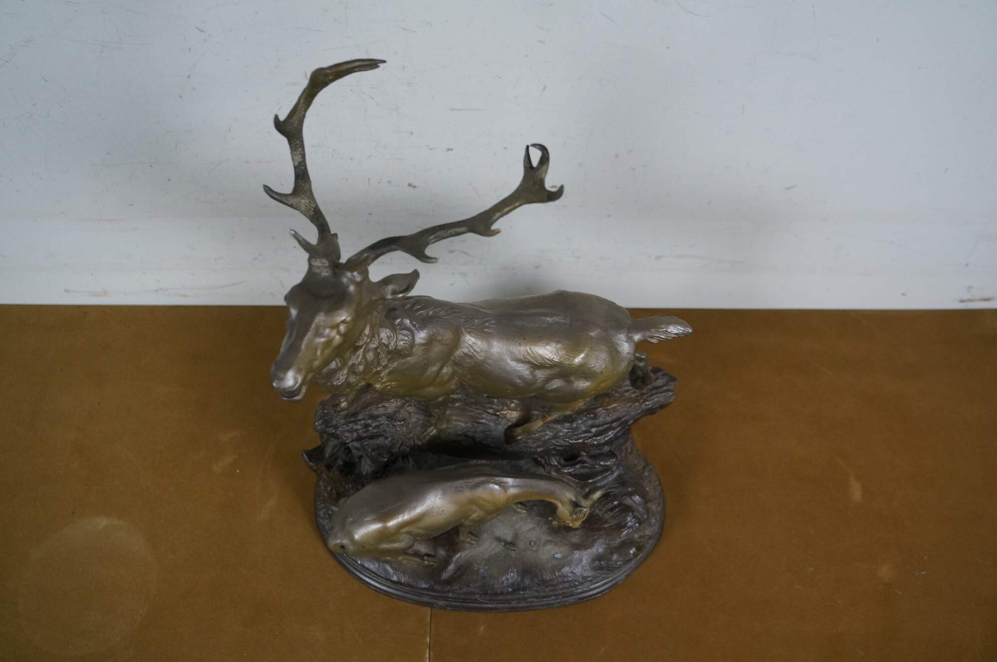 French cast metal sculpture depicting the Stag and his family / deer / elk after Hippolyte Heizler (1828-1871). Marked Heizler on side of base. Made in France.