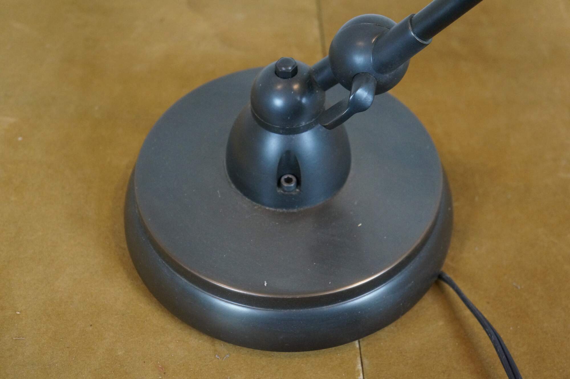 2 Available. 2008 Pottery Barn black metal pharmacy style desk / table lamp with round heavy base. BZ 08073118. Model: Z8402. Made in China.