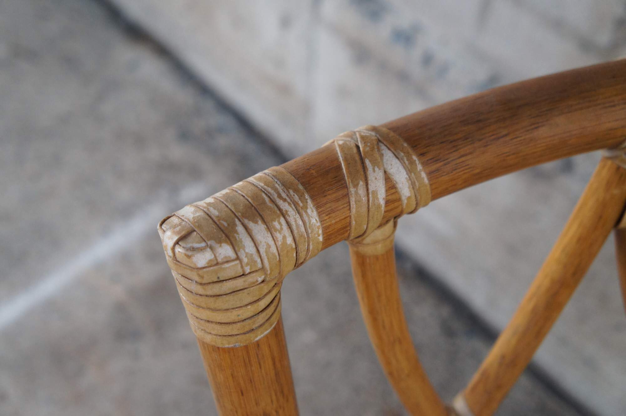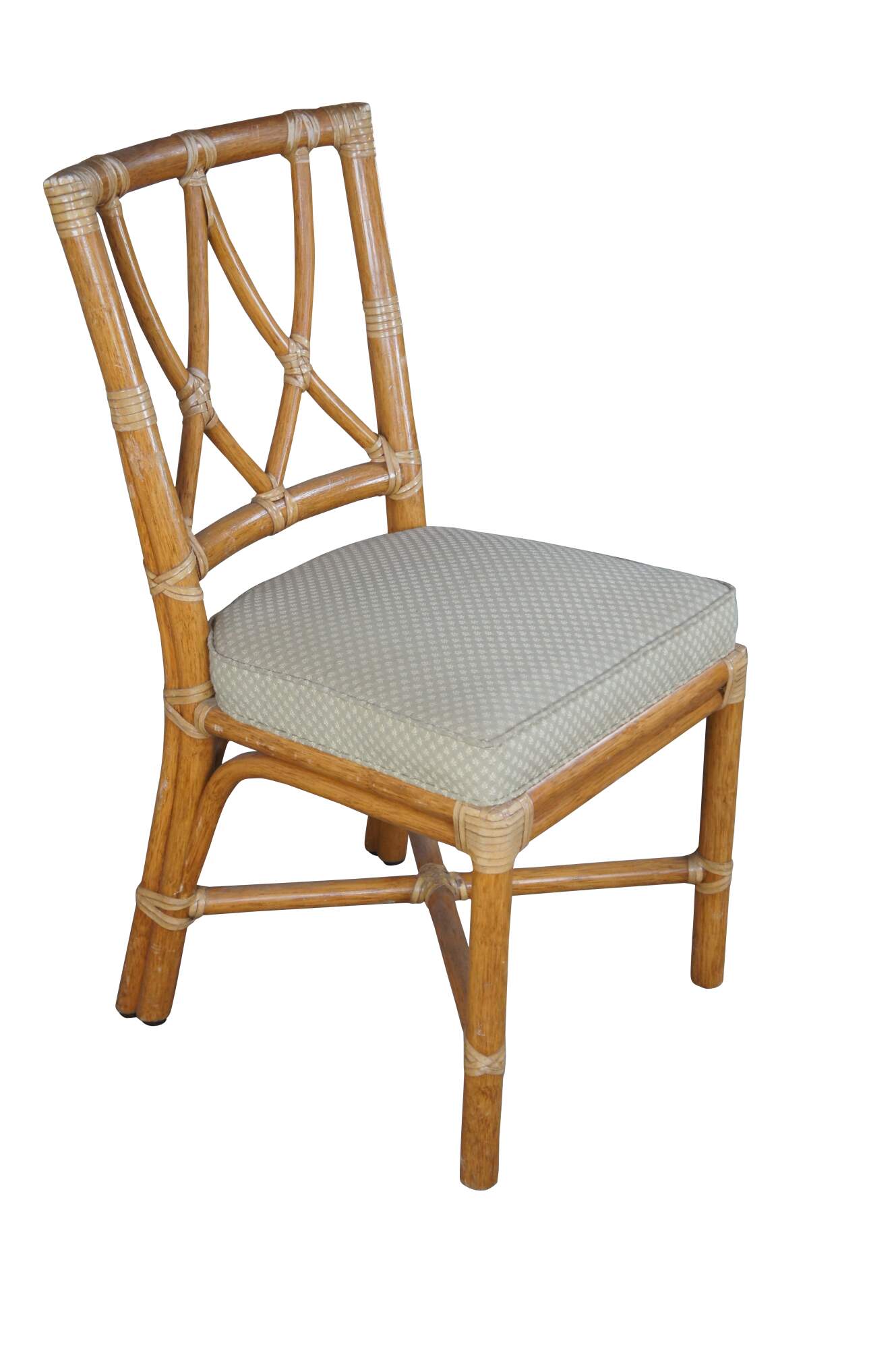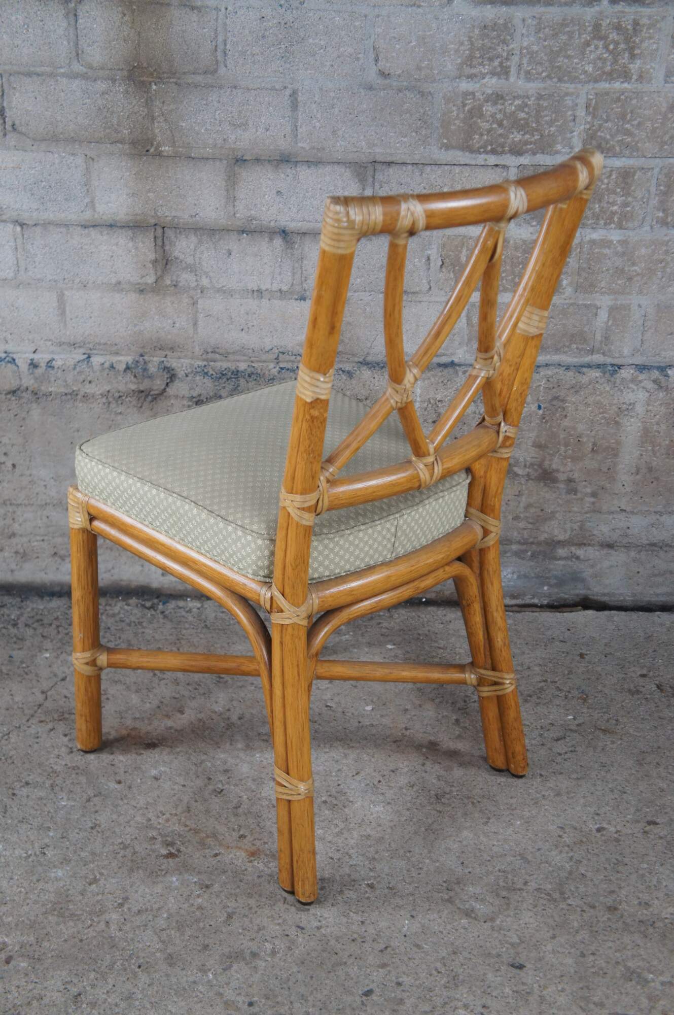 Vintage McGuire Furniture modern boho chic bamboo and rattan dining / vanity side chair feautring a double X back and X stretcher.