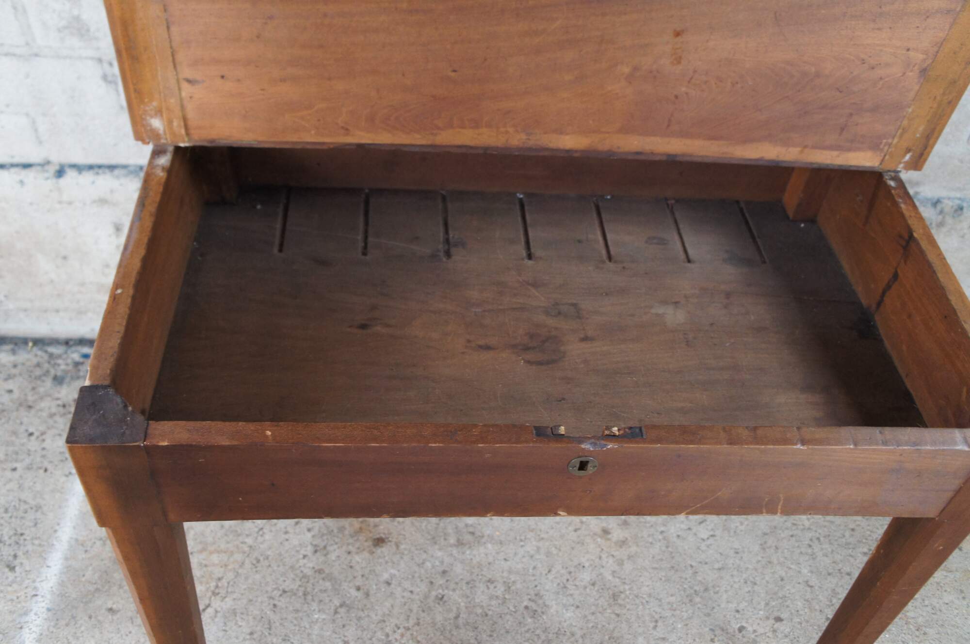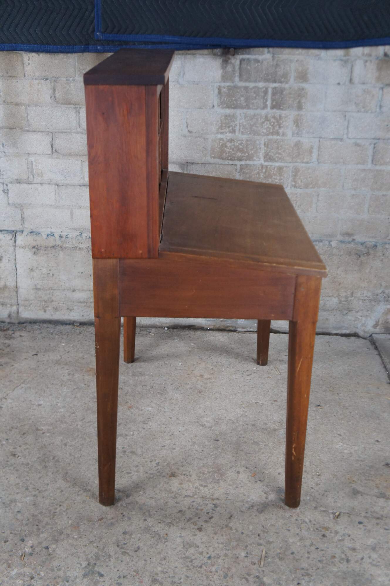 Vintage American Pine Clerks Desk, Circa 1930-40s. Features a hinged and sloped top over chamfered, tapered legs. The petite hutch along the back is divided into compartments and is perfect for storage of letters or small books.