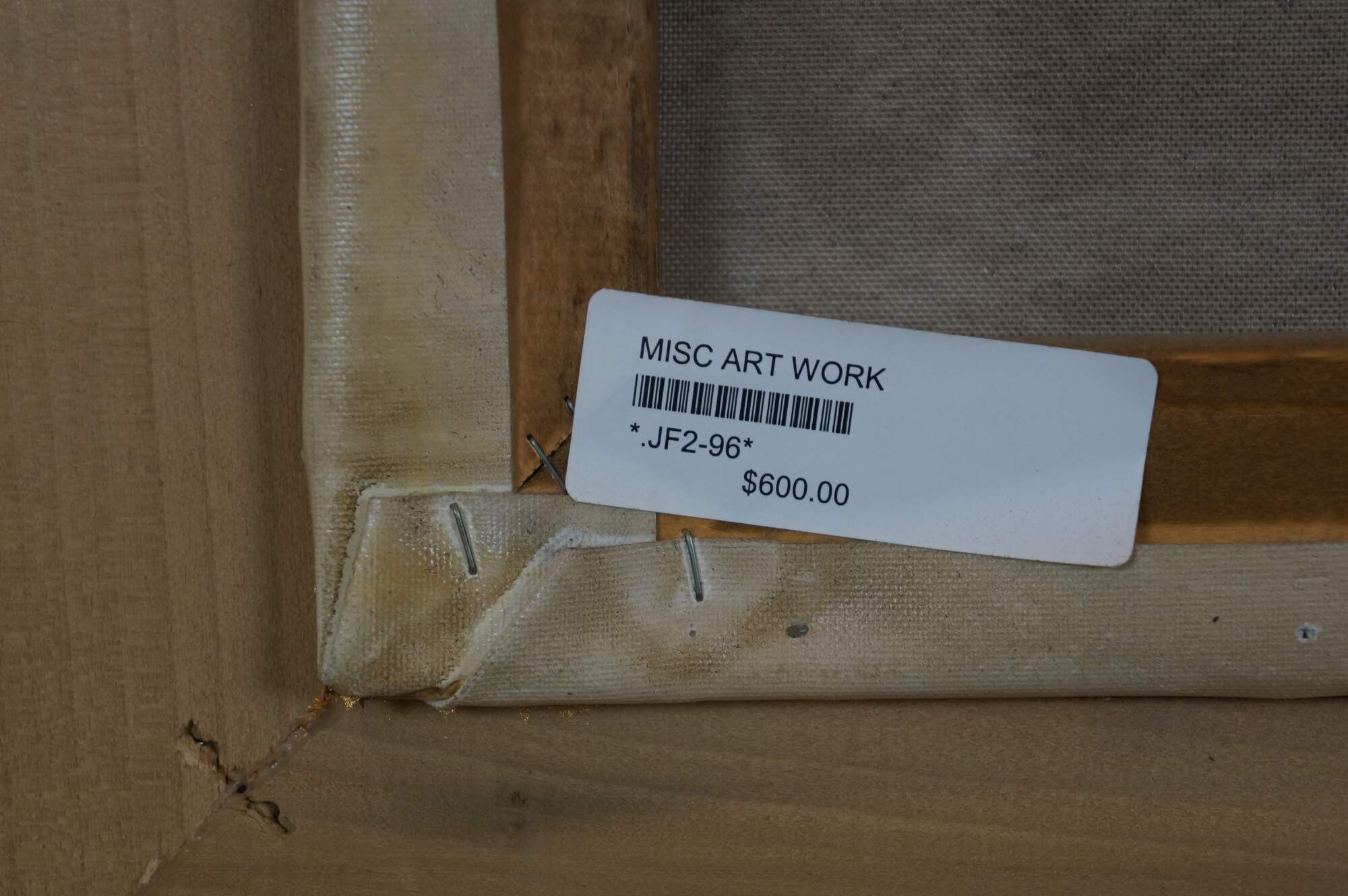 Late 20th century oil painting on canvas of the head / bust of a brown horse with black mane and muzzle, and a white blaze on the forehead. Signed in lower left corner (Utter J). Beveled gilt wood frame.