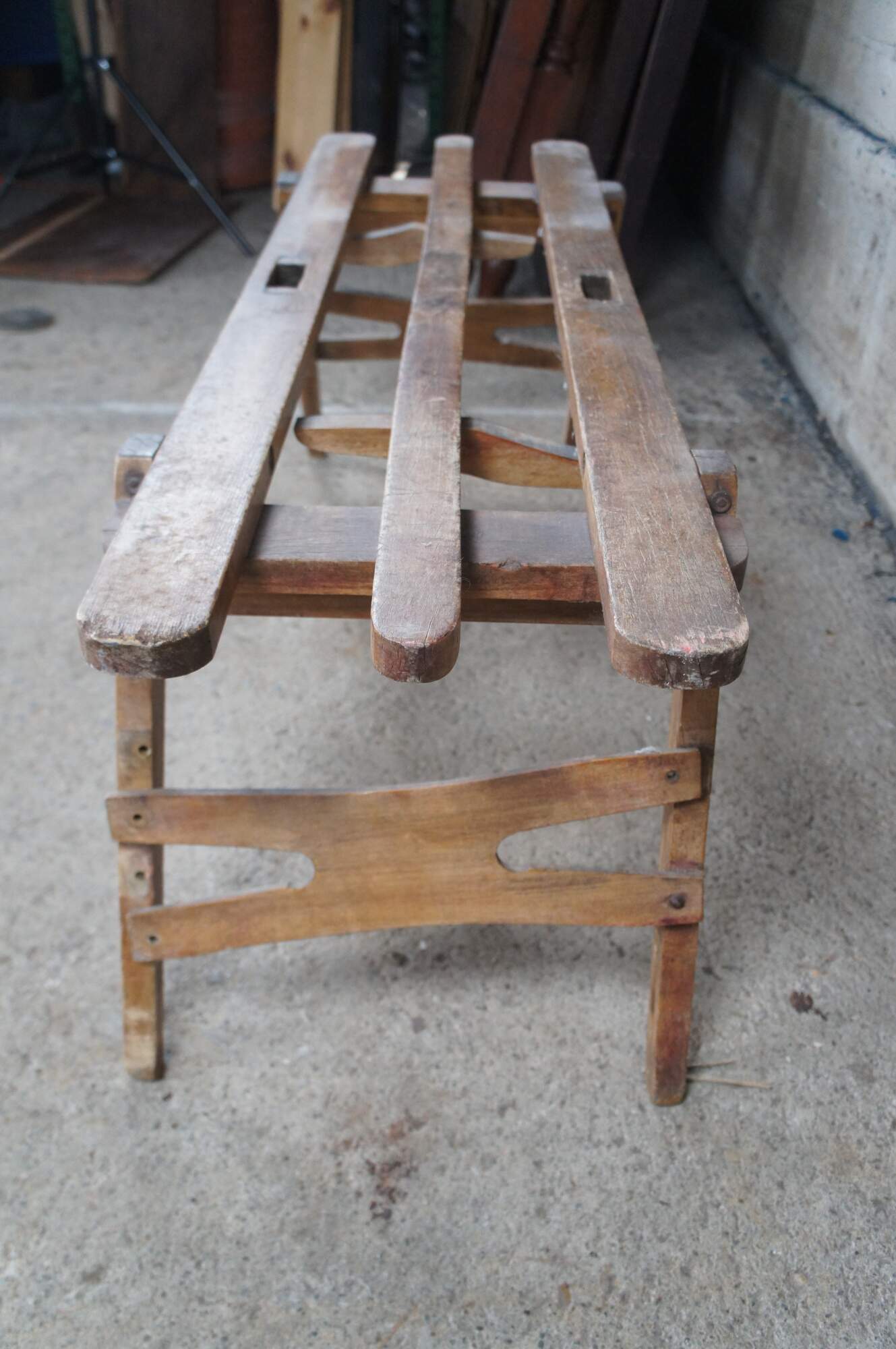 Antique Wooden Folding Double Wash Tub Stand