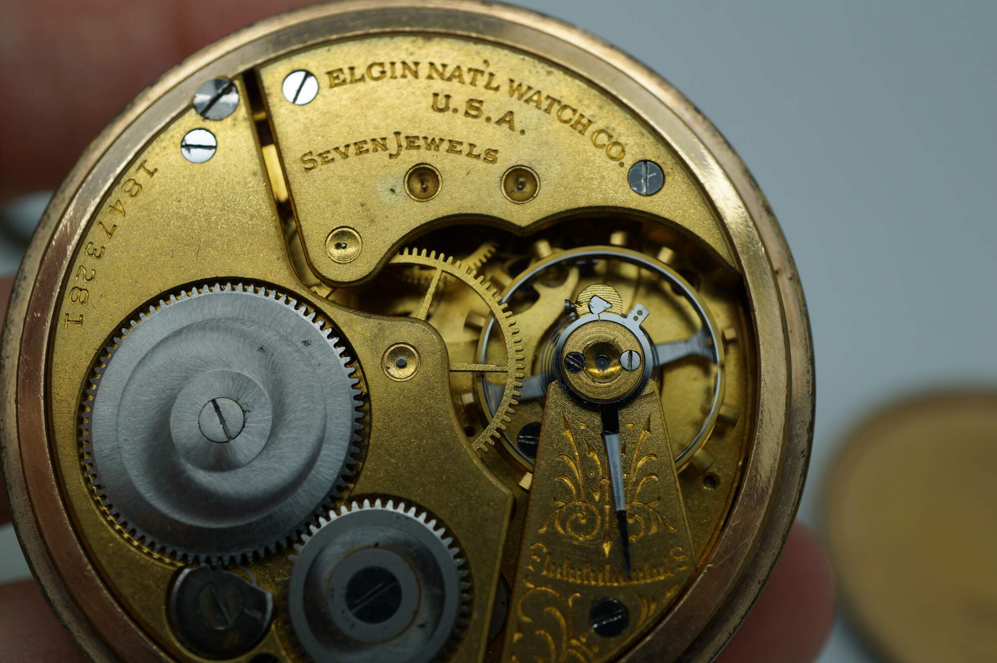 "Elgin National Watch Company - Years of Operation 1864-1968. August 27, 1864 - The National Watch Co. of Chicago Illinois is incorporated in Chicago by Philo Carpenter, Howard Z. Culver, Benjamin W. Raymond, George M. Wheeler, Thomas S. Dickerson, Edward H. Williams, and W. Robbins with a capital of $100,000. April 25, 1865 - The National Watch Co. of Chicago is reorganized with a capital of $500,000 in order to build a permanent factory in Elgin, Illinois. Construction of the watch factory in Elgin, Illinois is completed in 1866. April 1867 - The National Watch Co. sells its first movement for about $115.00, an 18s key wind and key set quick train B.W. Raymond, named after the president of the company, serial number 101. July 16, 1867 - The National Watch Co. produces a new 18-Size movement, named the H.Z. Culver, after one of the company directors. October 10, 1867 - Benjamin W. Raymond is replaced by T.M. Avery as president of the National Watch Co. October 14, 1867 - The first J.T. Ryerson watch is produced by the National Watch Co. November 20, 1867 - The first H.H. Taylor watch is produced by the National Watch Co. November 26, 1867 - The first G.M. Wheeler watch is produced by the National Watch Co. January 4, 1868 - The first Mat. Laflin watch is produced by the National Watch Co. January 28, 1869 - The capital of The National Watch Co. is increased to $2,000,000. May 20, 1869 - The first "Lady Elgin" watch is produced by the National Watch Co. This 10s key-wind watch is marketed toward ladies. August 24, 1870 - After the success and popularity of the "Lady Elgin," The National Watch Co. offers the "Francis Rubie," another ladies watch, adjusted to temperature. September 8, 1871 - The first Gail Borden watch is produced by the National Watch Co., created specifically for the ladies market. December 20, 1871 - The first Dexter Street watch is produced by the National Watch Co., created specifically for the ladies market. June 28, 1873 - The first stem-wound model is produced by the company. October 10, 1874 - The National Watch Co. is rebraded as Elgin National Watch Co. March 1875 - The Elgin Watch Co. begins to manufacture mainsprings to use in its movements. June 16, 1875 - The first watches to carry the Elign Watch Co. brand are manufactured. At this time, the company begins using numbered designations for movements. 1877 - The Elign Watch Co. offers its first nickel-plated movement. April 5, 1883 - Benjamin W. Raymond, the National Watch Co.'s first president, passes away. June 5, 1895 - The Elgin National Watch Company terminates production of 11-Jewel movements while announcing new 15-Jewel movements in 16-Size, 6-Size, and 0-Size. 1888 - The widely popular Elgin Watch Co. is producing about 7,500 movements per week and employ roughly 2,300 people. October 1895 - The Elgin National Watch Company introduces a thinner 16-Size product line that requires a "new model case." Other watch companies soon follow this trend and offer thinner movements to fit the "Elgin" case. 1910 - Elgin begins selling wristwatches. The Elgin National Watch Company Observatory is built in Elgin, Illinois to offer scientific precision for their watches. 1964 - The Elgin Watch Co. moves operations to Blaney, South Carolina, and the town is renamed "Elgin." 1966 - The original factory in Elgin, Illinois is demolished.1968 - All Elgin Watch Co. manufacturing is discontinued. 1970 - Elgin's remaining trade material departments are terminated." (Source: Pocket Watch Database)