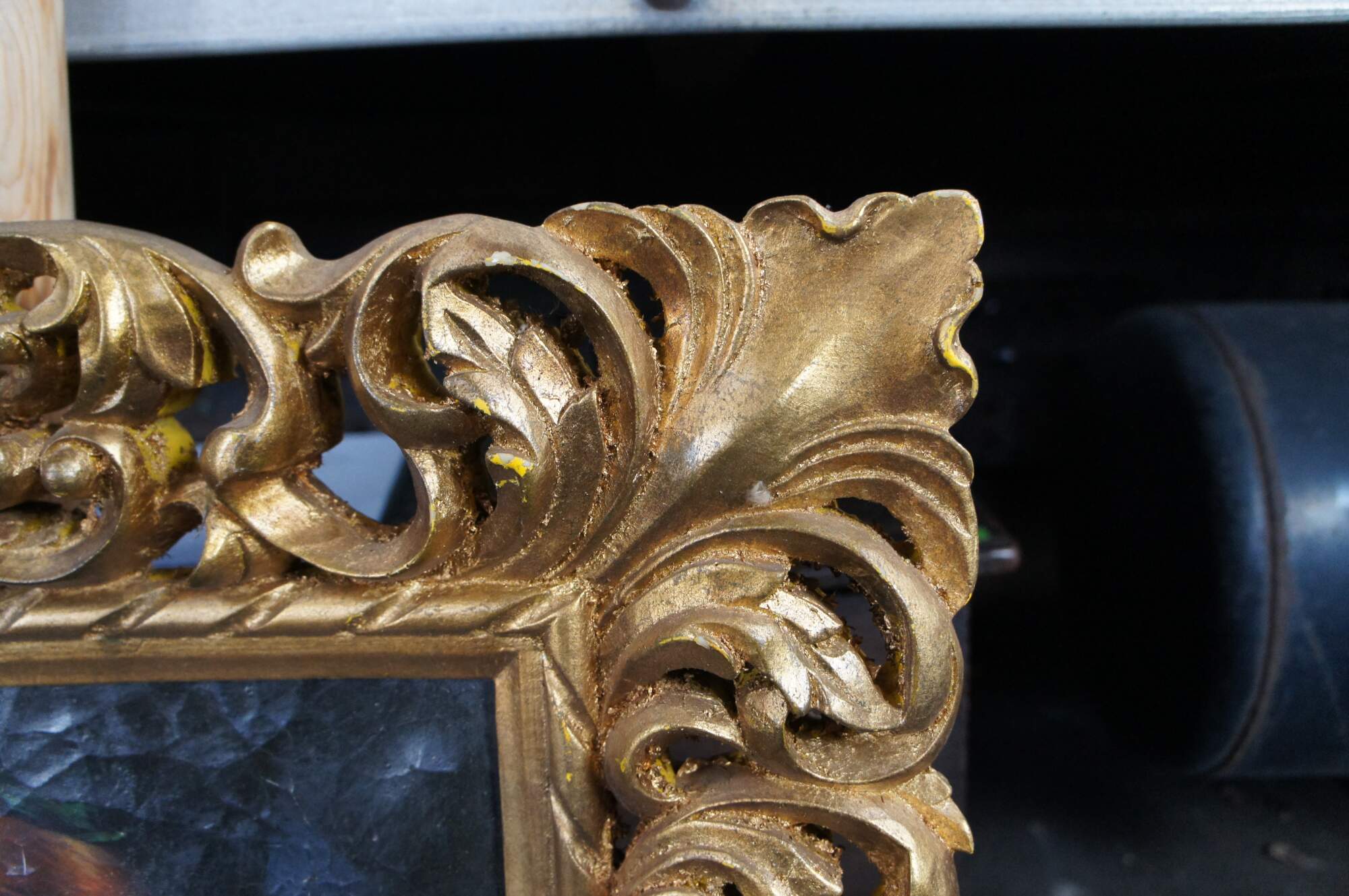 'The Girl Entreaty' by Kalina Oksana, circa late 20th century. Features a young girl posing in the form of an earnest or humble request. Features a heavy ornate Rococo-style frame.