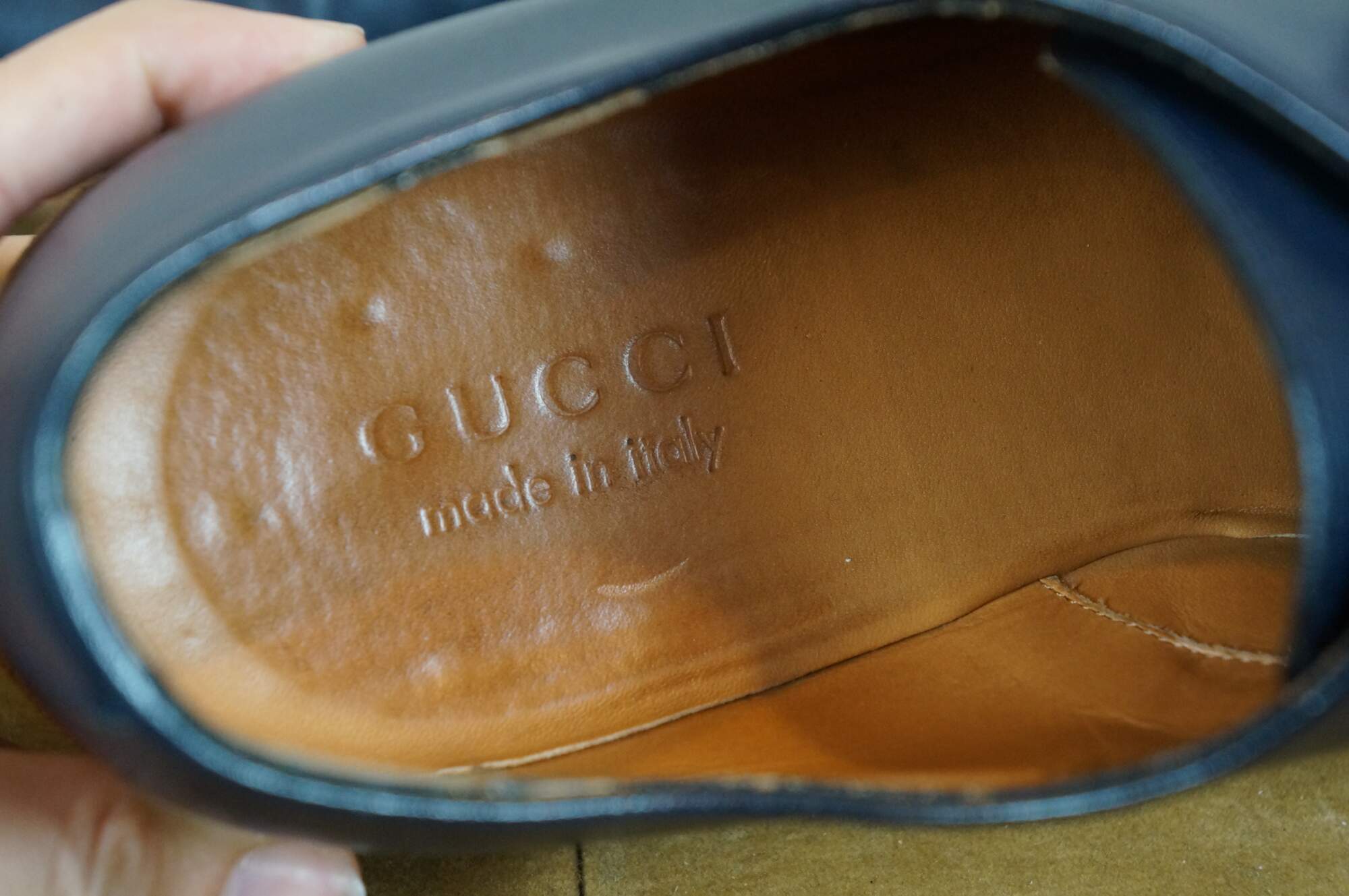 Vintage Gucci men's navy blue leather oxfords with brown sole. 281933 ARP00 4009 - Cirano Lux. Made in Italy. Includes box and dust bag.